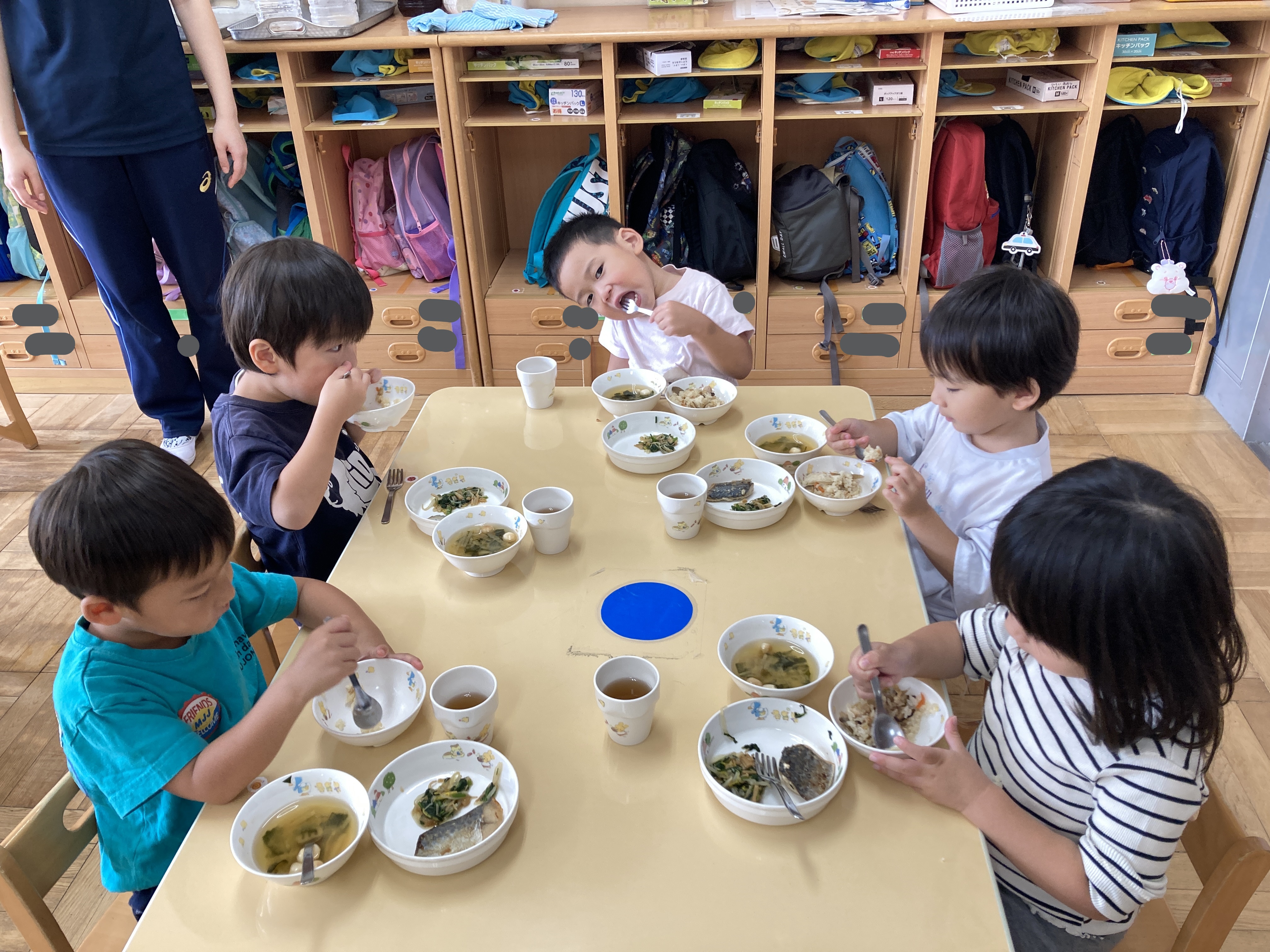 給食に入っていて、「昨日のごぼうだね!」と嬉しそうに話す様子が見られました。みんな美味しそうに食べていました。