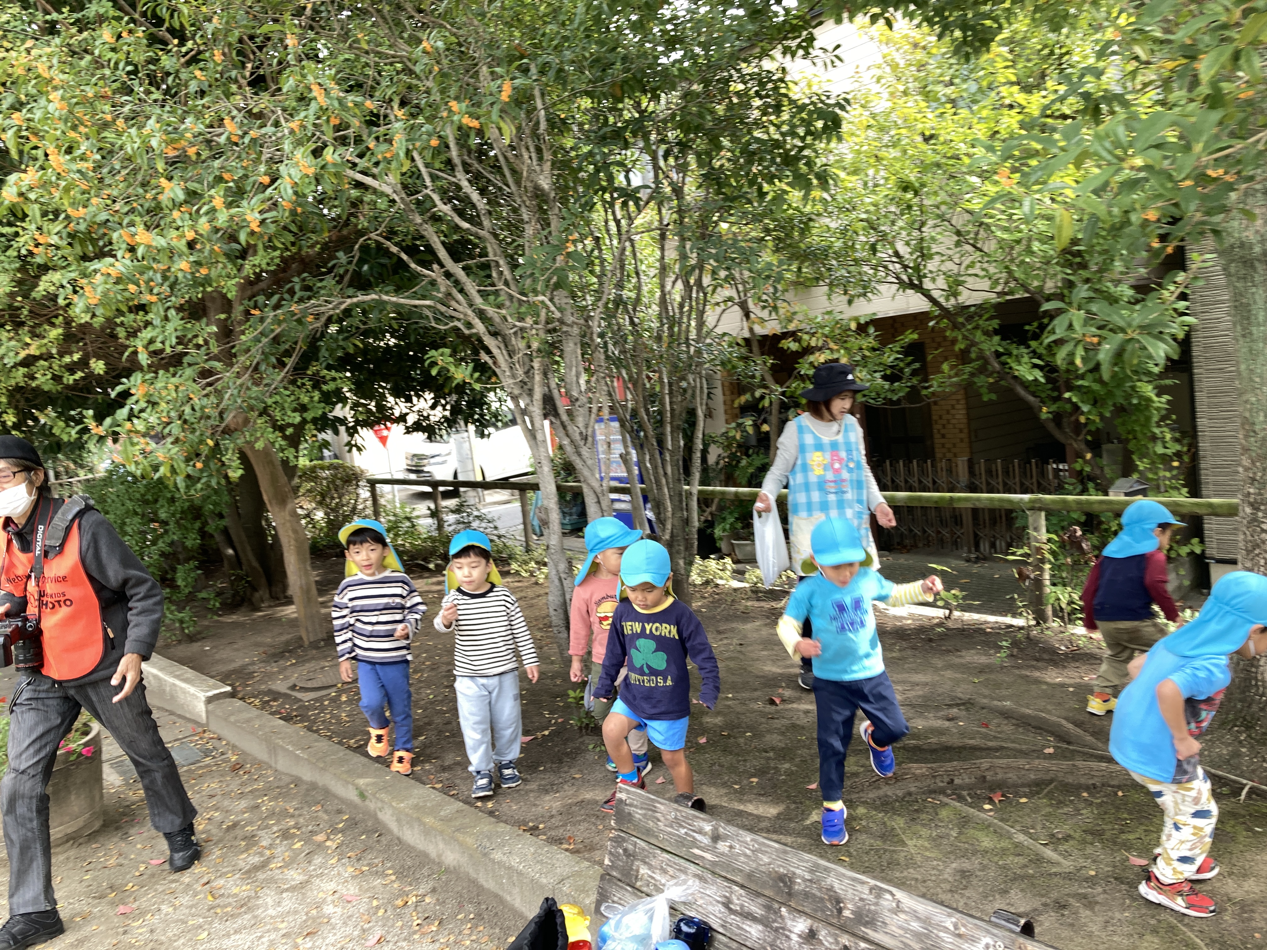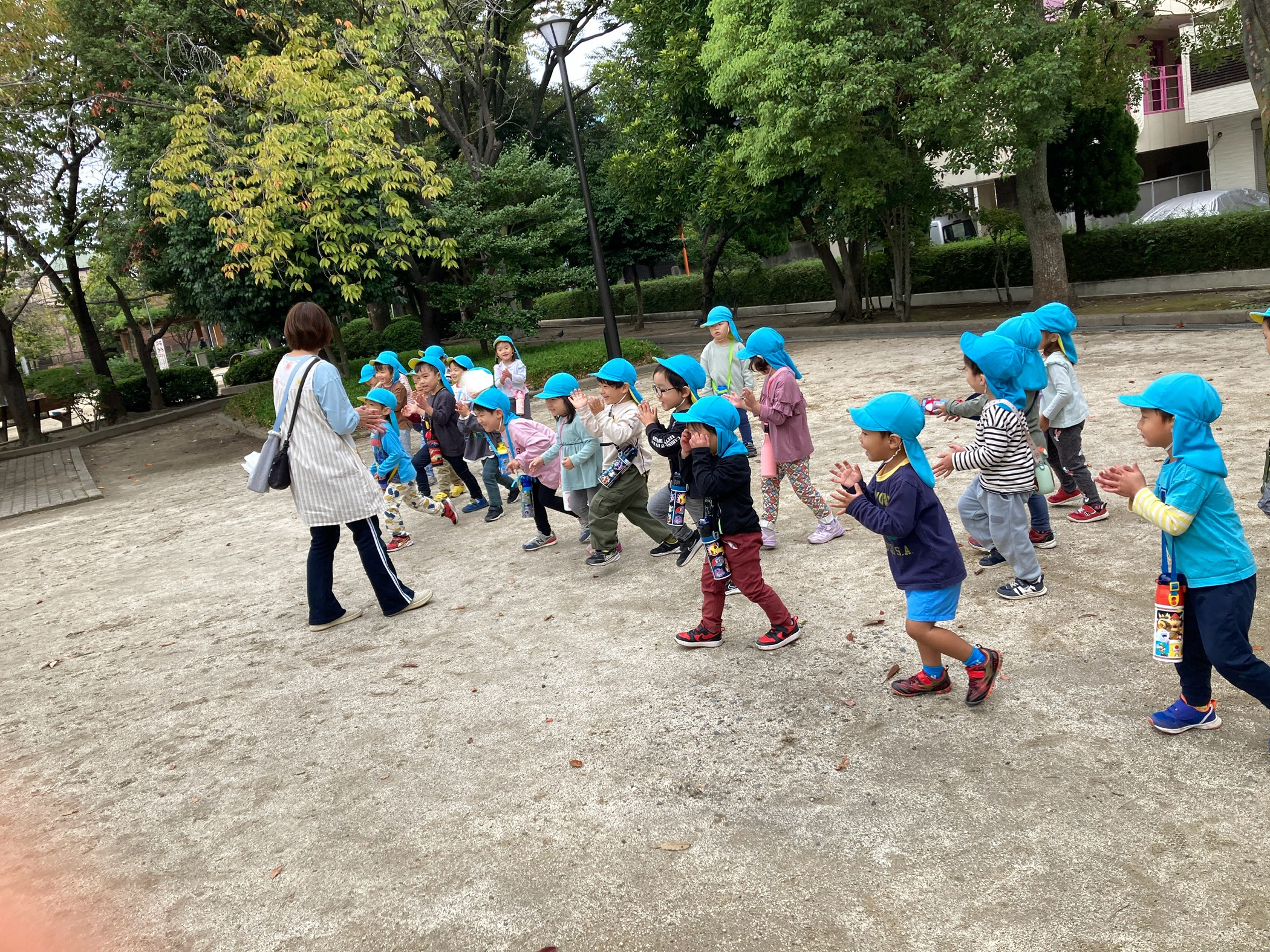 歩き遠足でニノ江さくら公園に行っていました。朝から遠足に行く事を楽しみにしていて、お弁当や水筒が入ったリュックサックを「重たいね~!」と言いながら嬉しそうに持っている姿が可愛らしかったです!