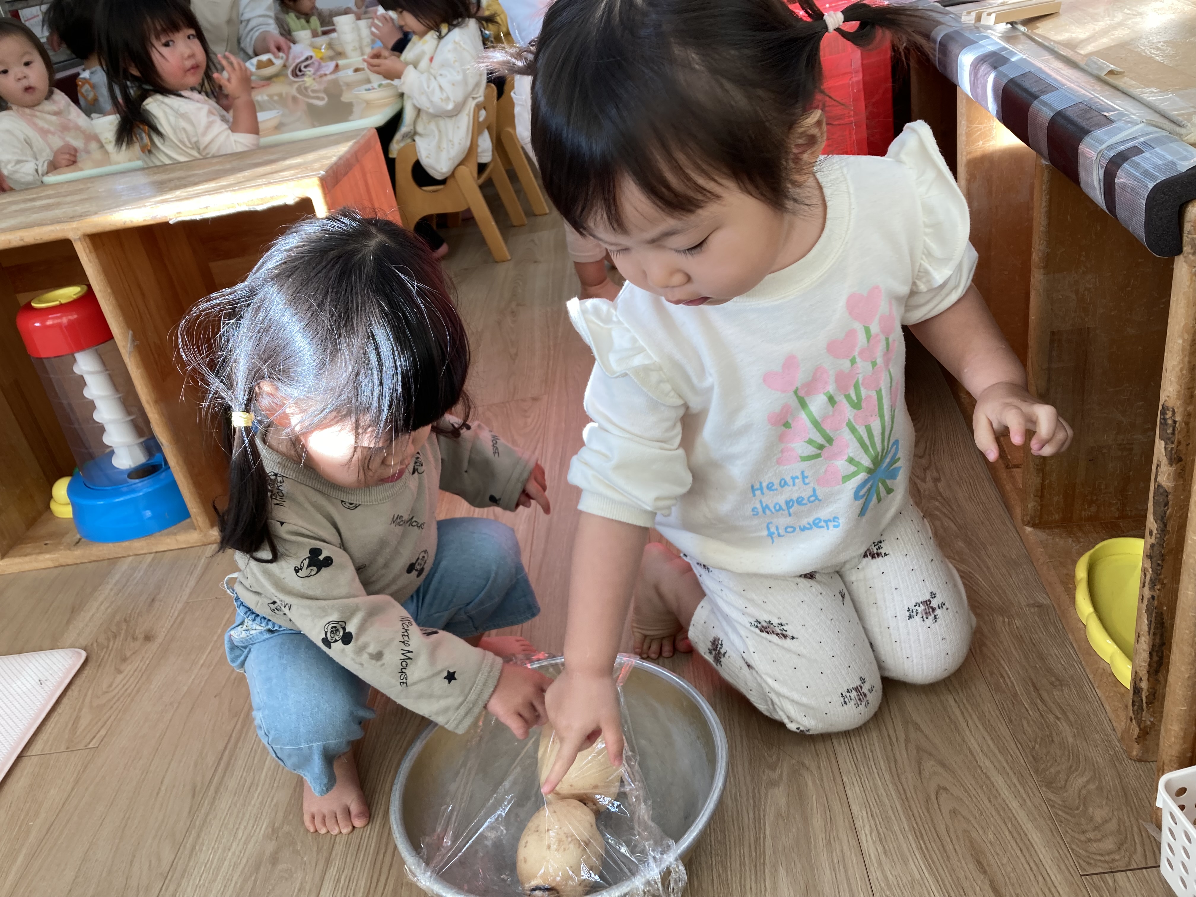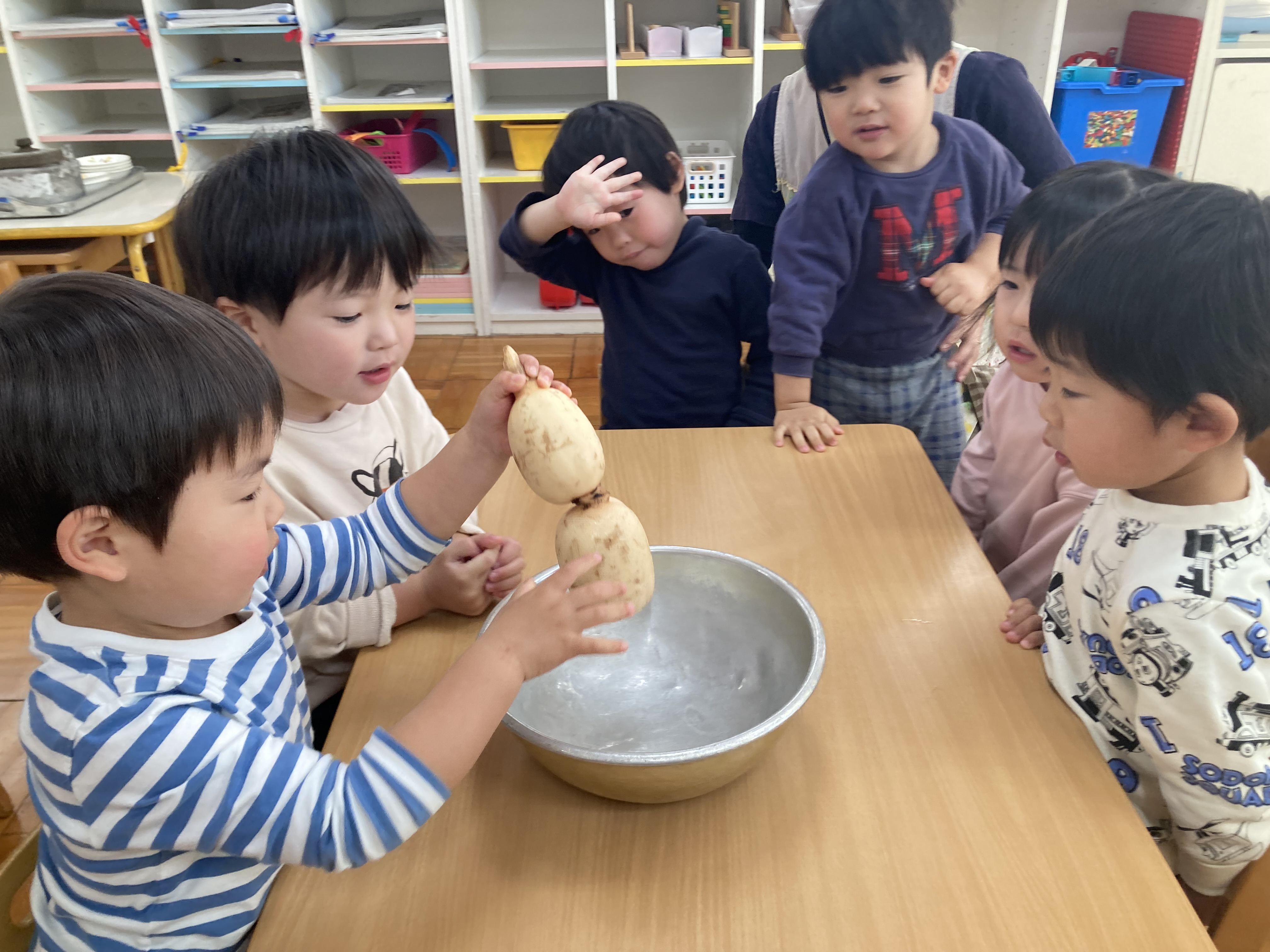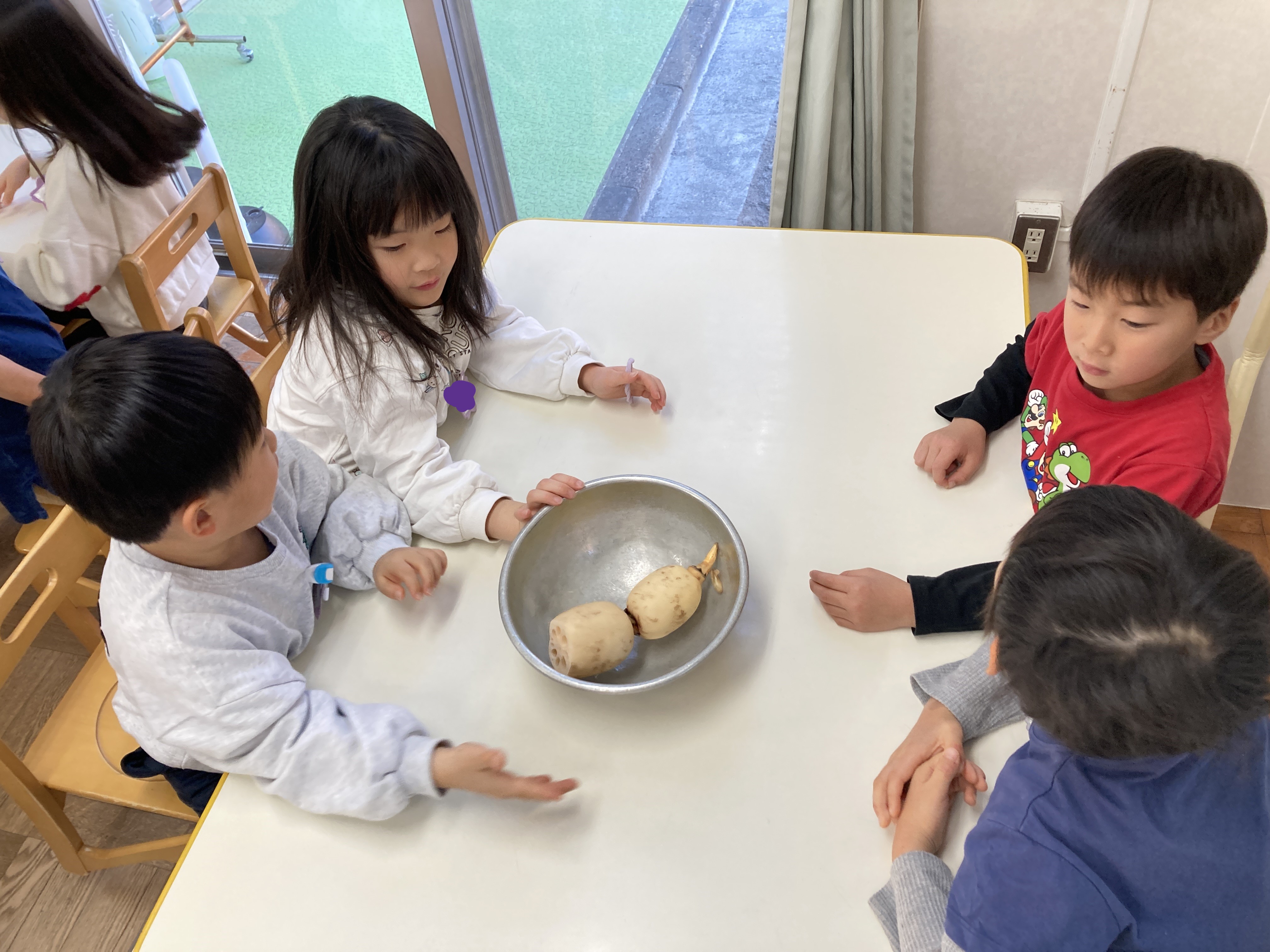 12月16日のおやつ後に、全クラスで順番にれんこんの観察を行いました!