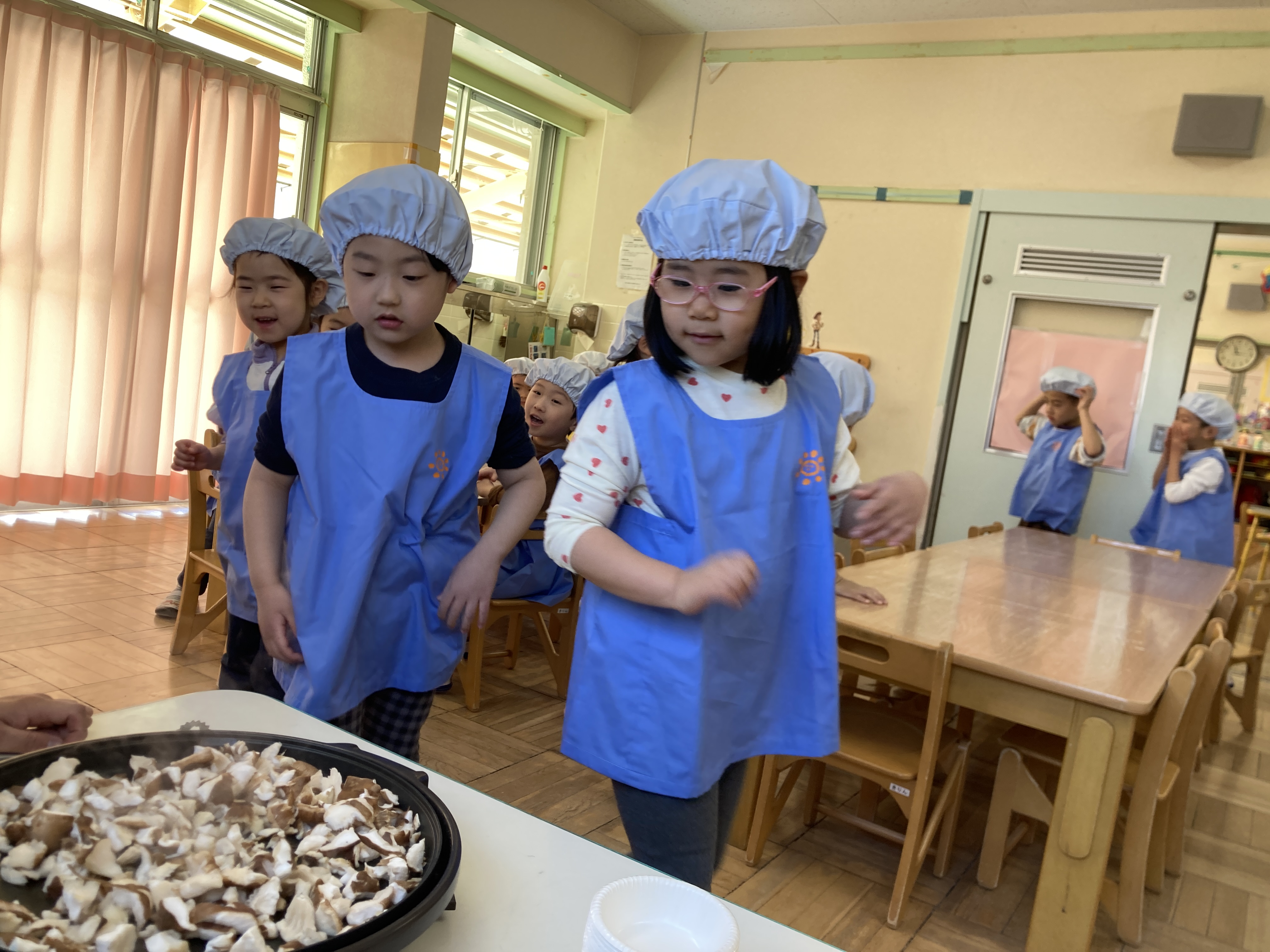 普段苦手で食べられないしいたけをお代わりする子も!