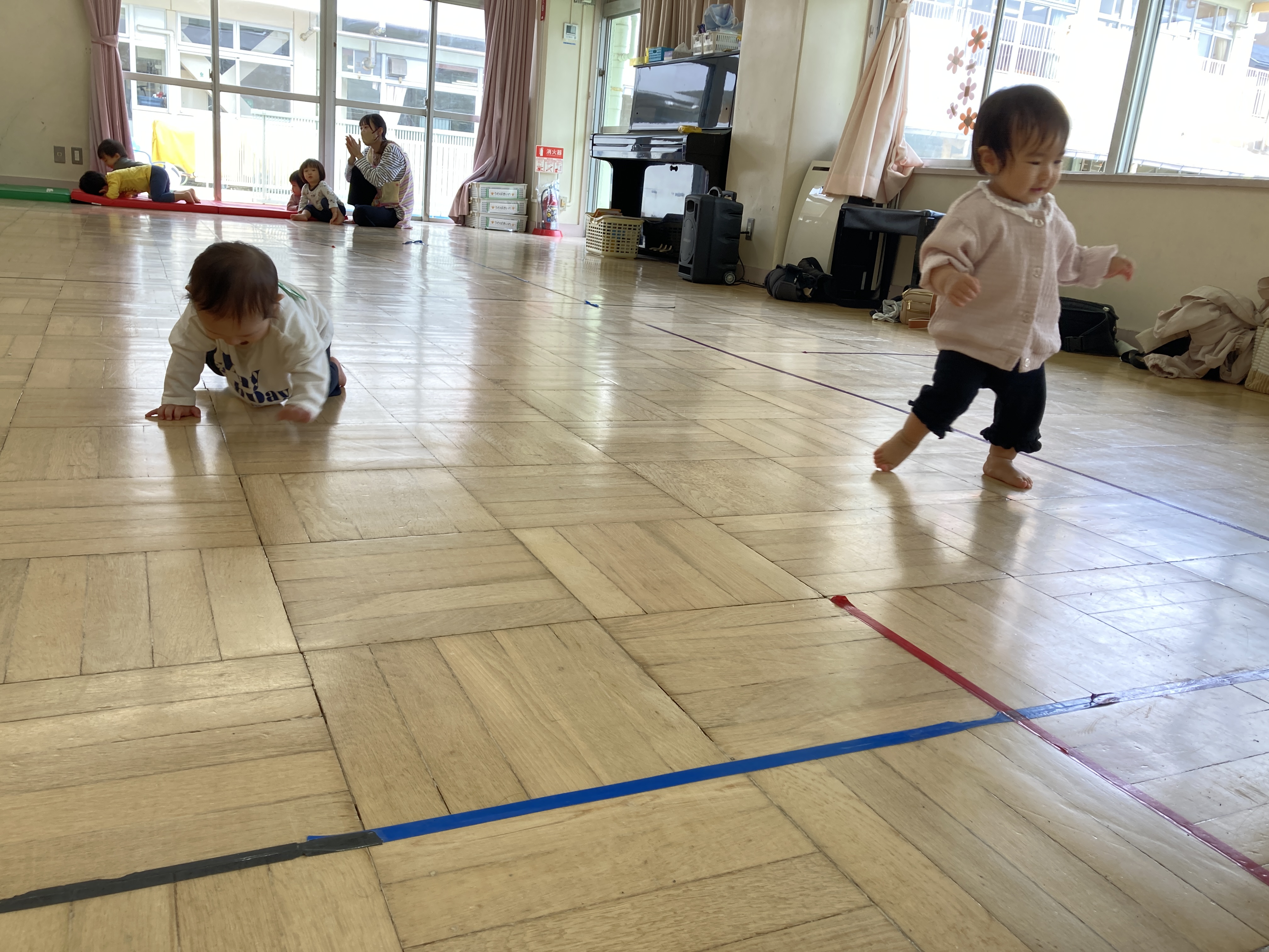 お家の方と一緒に走ったりハイハイをしてゴールを目指します!