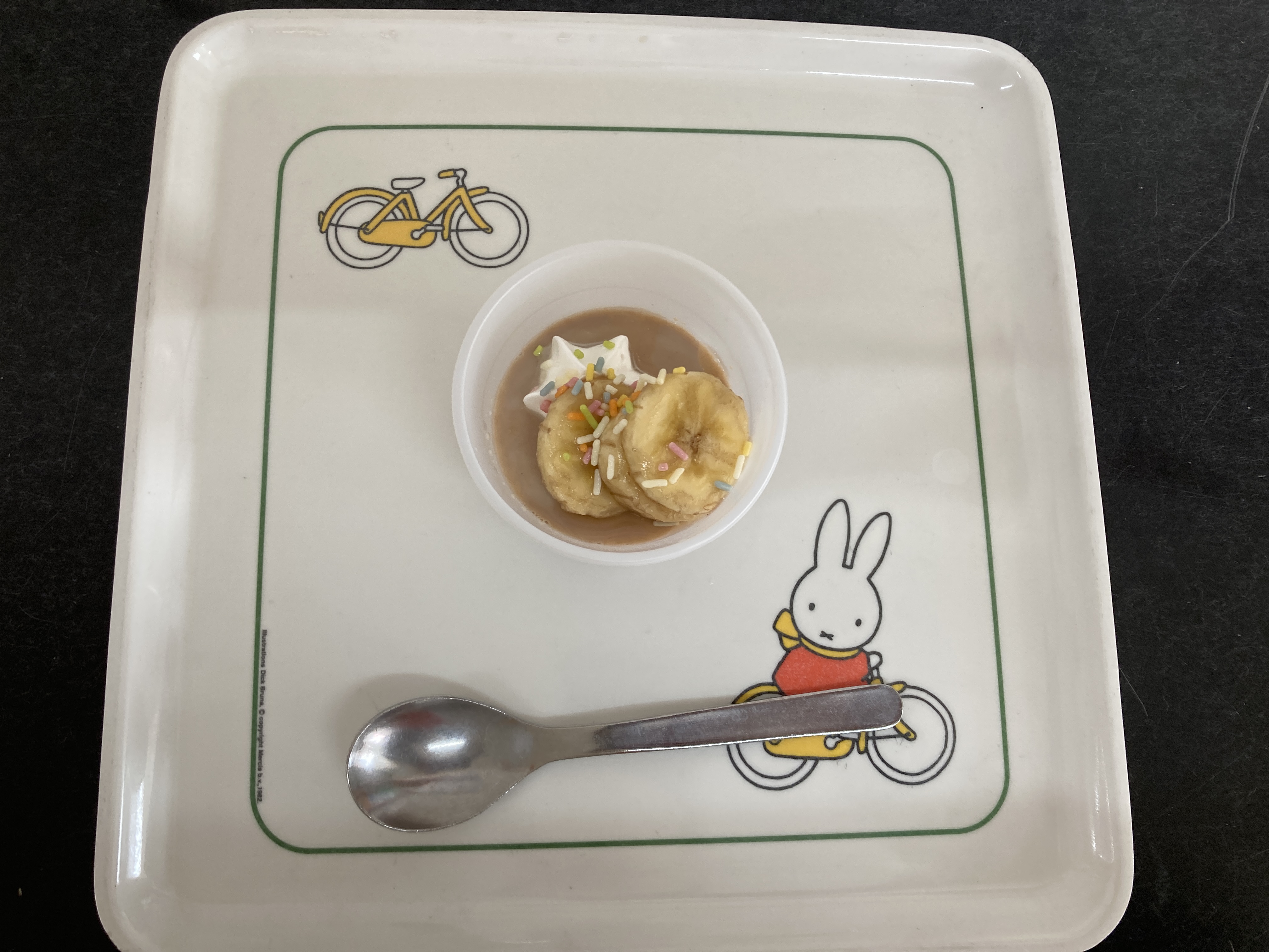 バナナとホイップとチョコスプレーがのったプリンもぺろりと完食していました!!