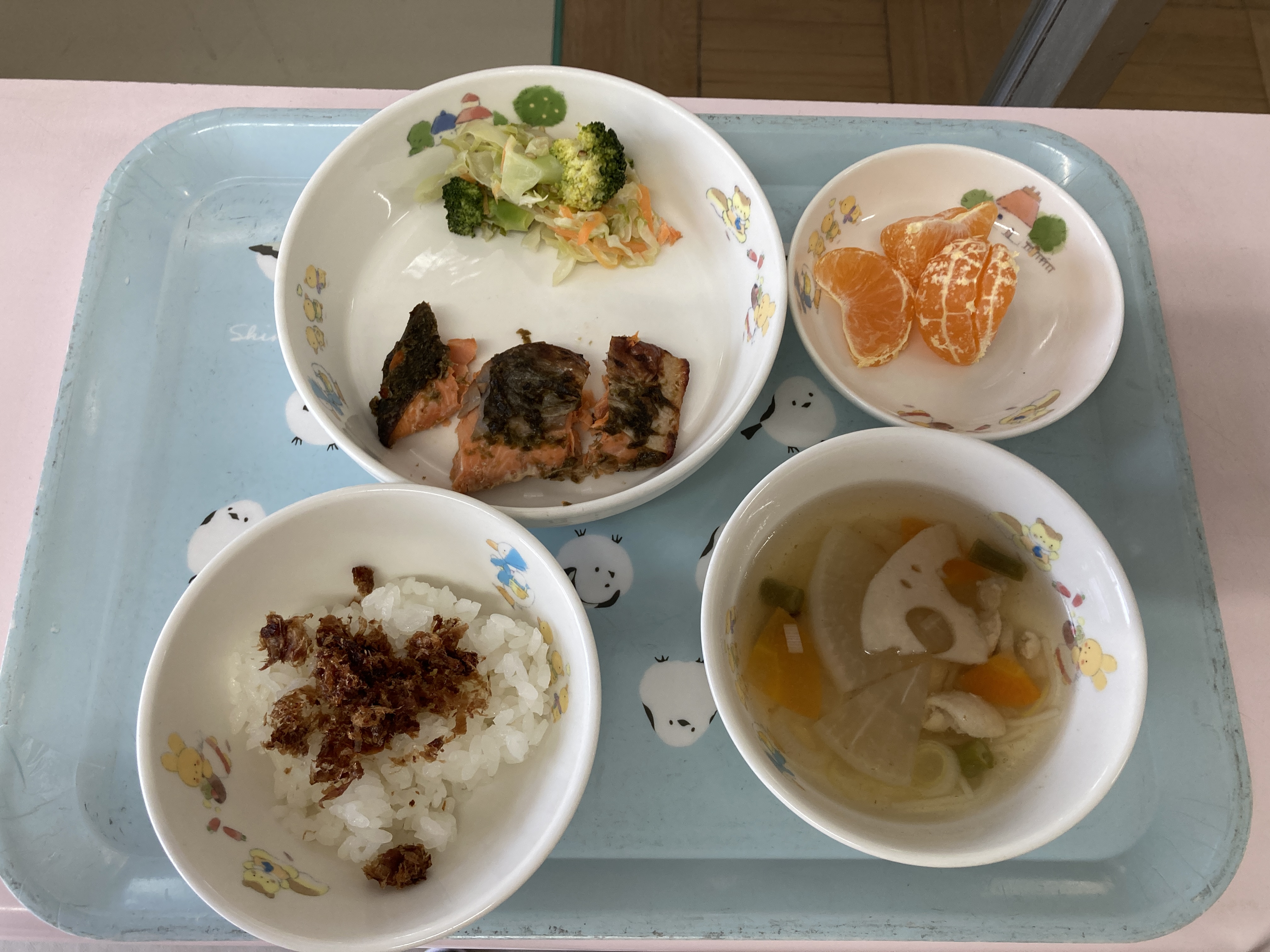 給食では七運汁がでました!にんじんやれんこん、だいこんが入っていて栄養満点!
