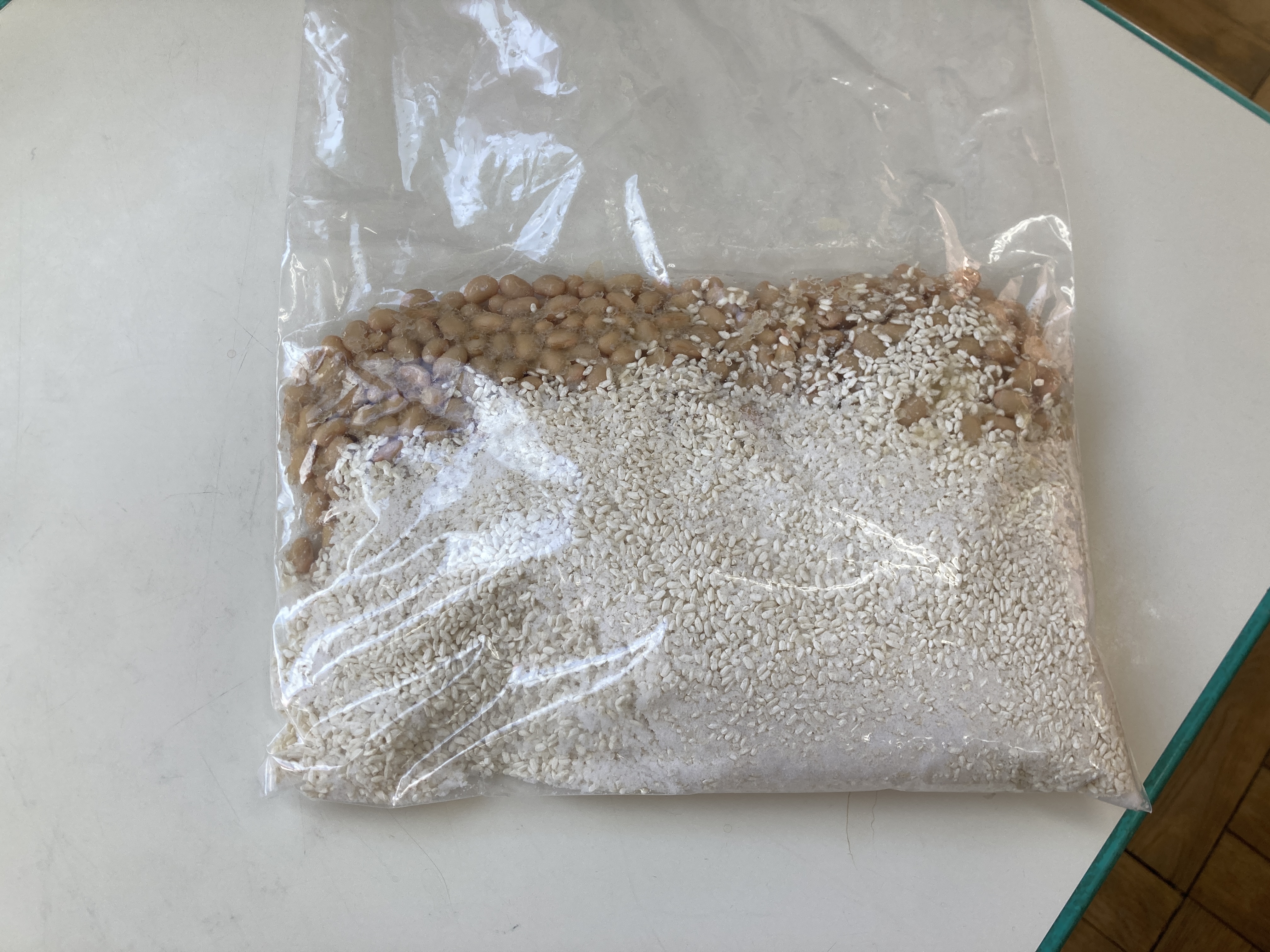 最初は、袋に”塩”と”米麴”を入れて混ぜます。