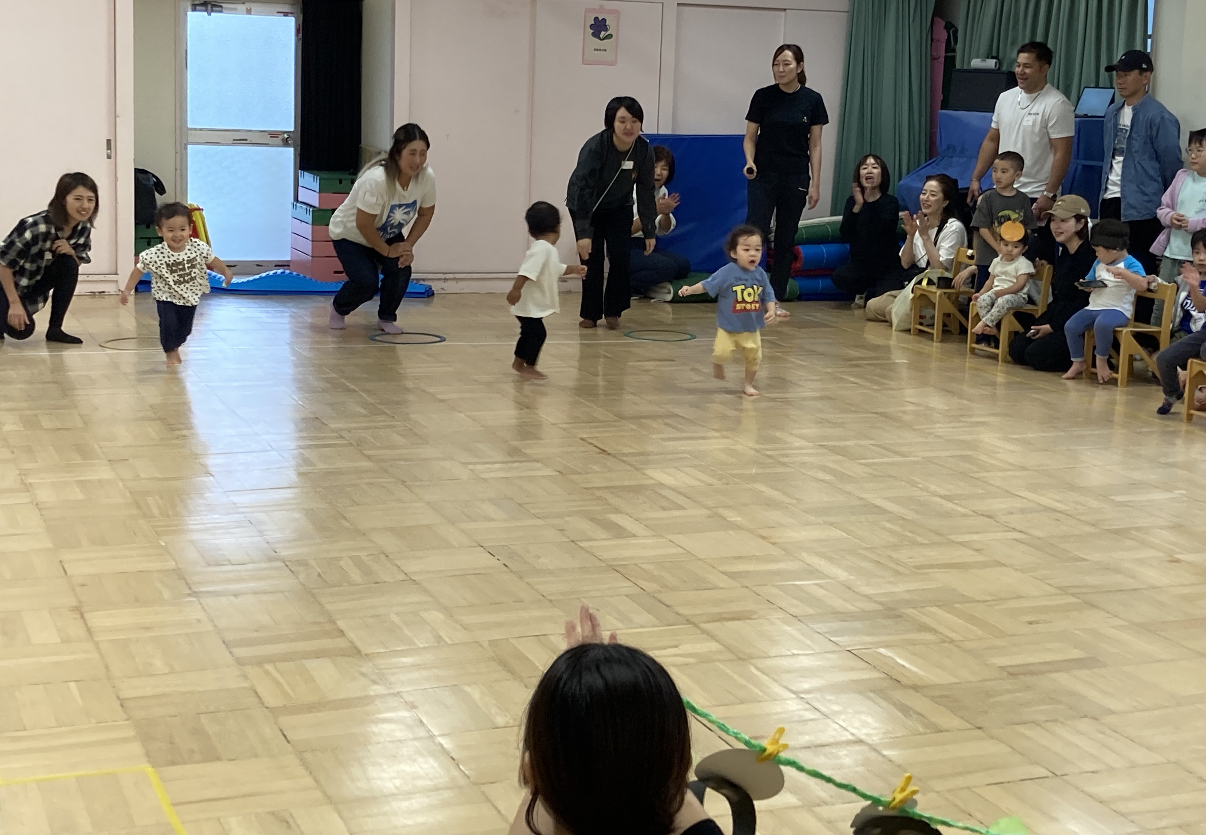 ドキドキ、わくわくの表情で登園したお友達。いつもと違う雰囲気に戸惑うお友達もいましたが、かけっこ、サーキット、ダンスとみんな楽しく頑張りました。