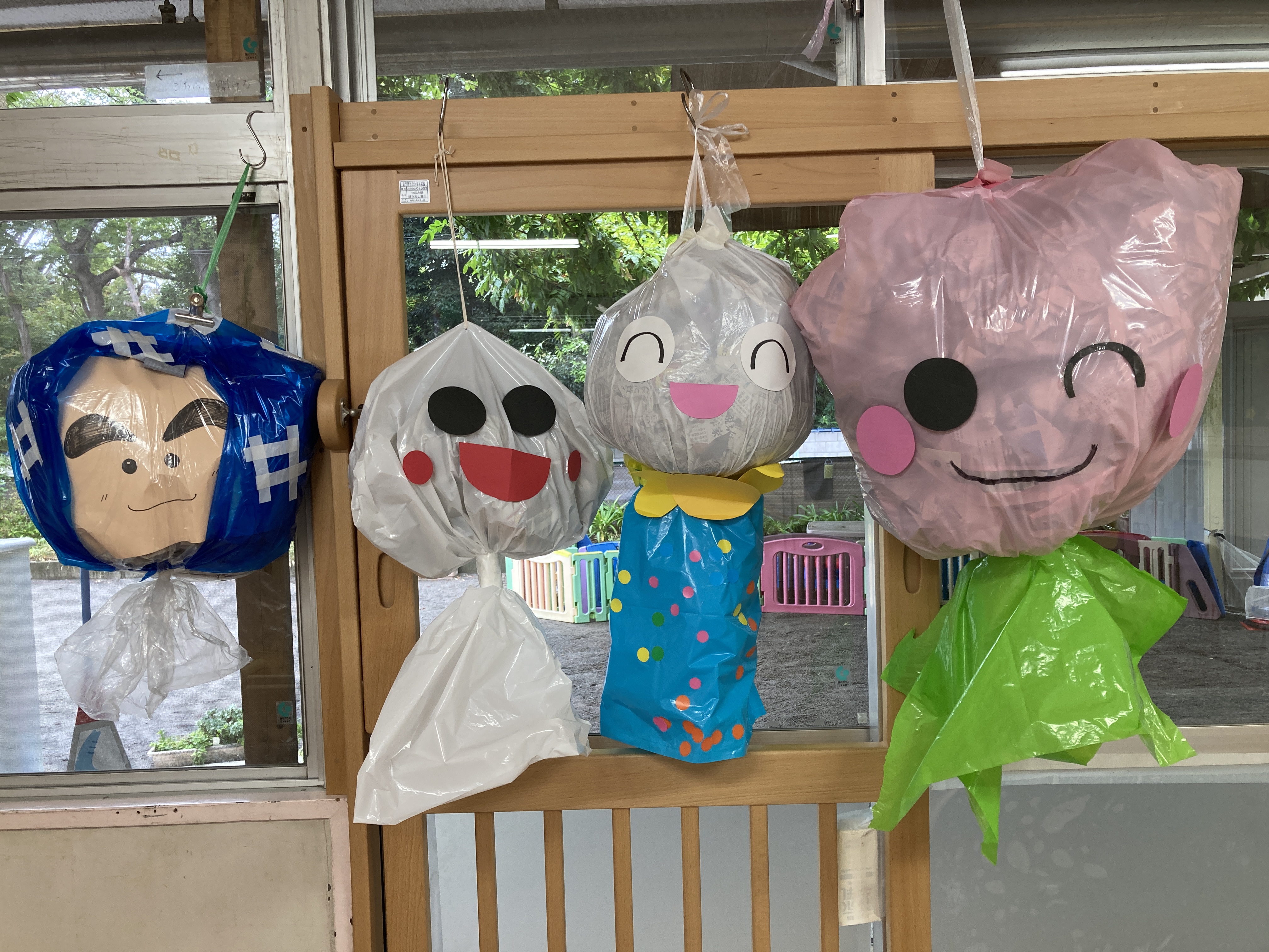 昨日みんなで作ったてるてる坊主に、来週よろしくねと願いを込めて気持ちを高めていきます。2~5歳児のお友達、頑張りましょう!