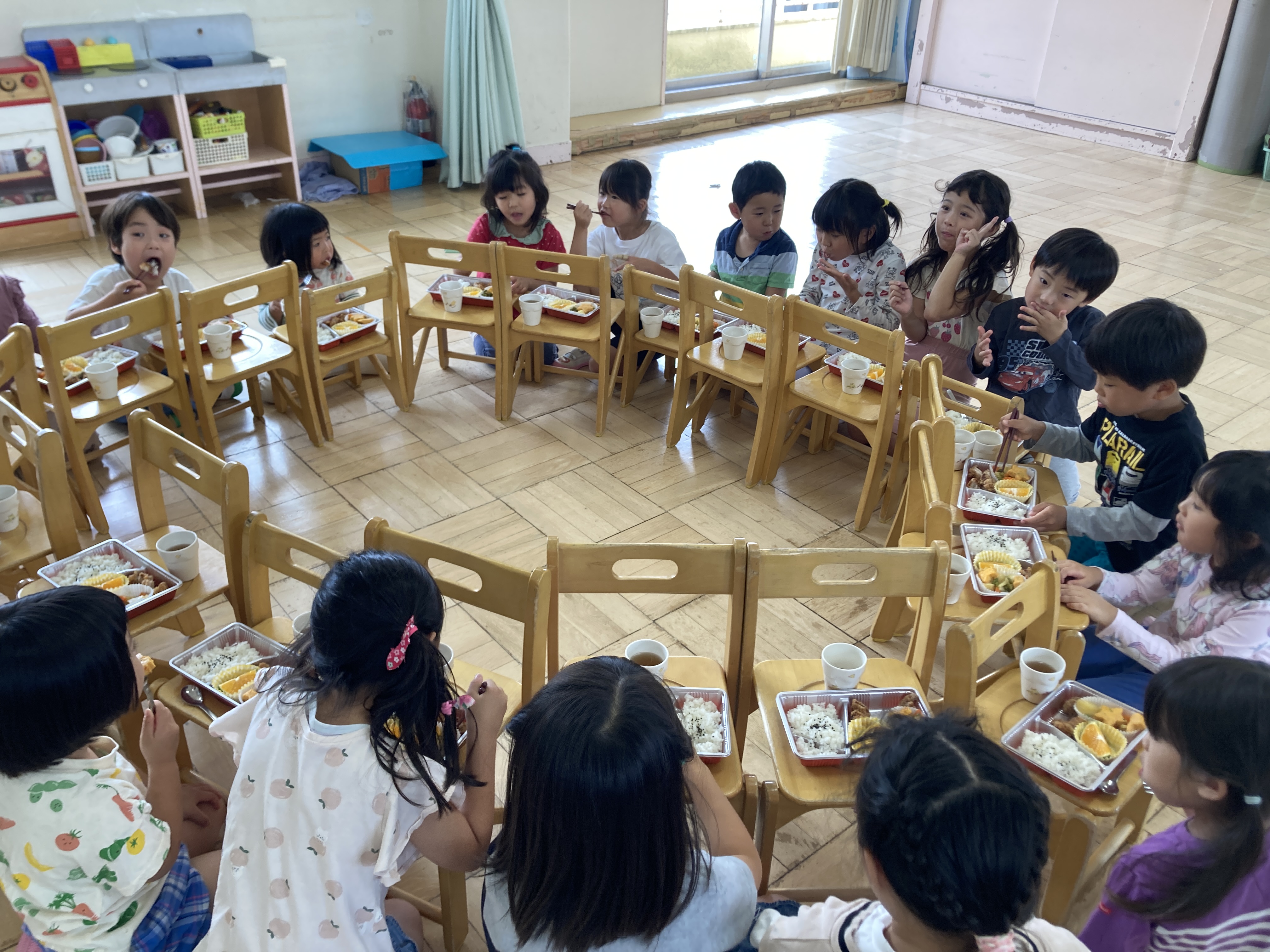 しかし、お天気が・・・お外では食べられませんでしたが、幼児さんはお弁当チケットを持ってお弁当を購入し、みんなで輪になって楽しく食べてました。