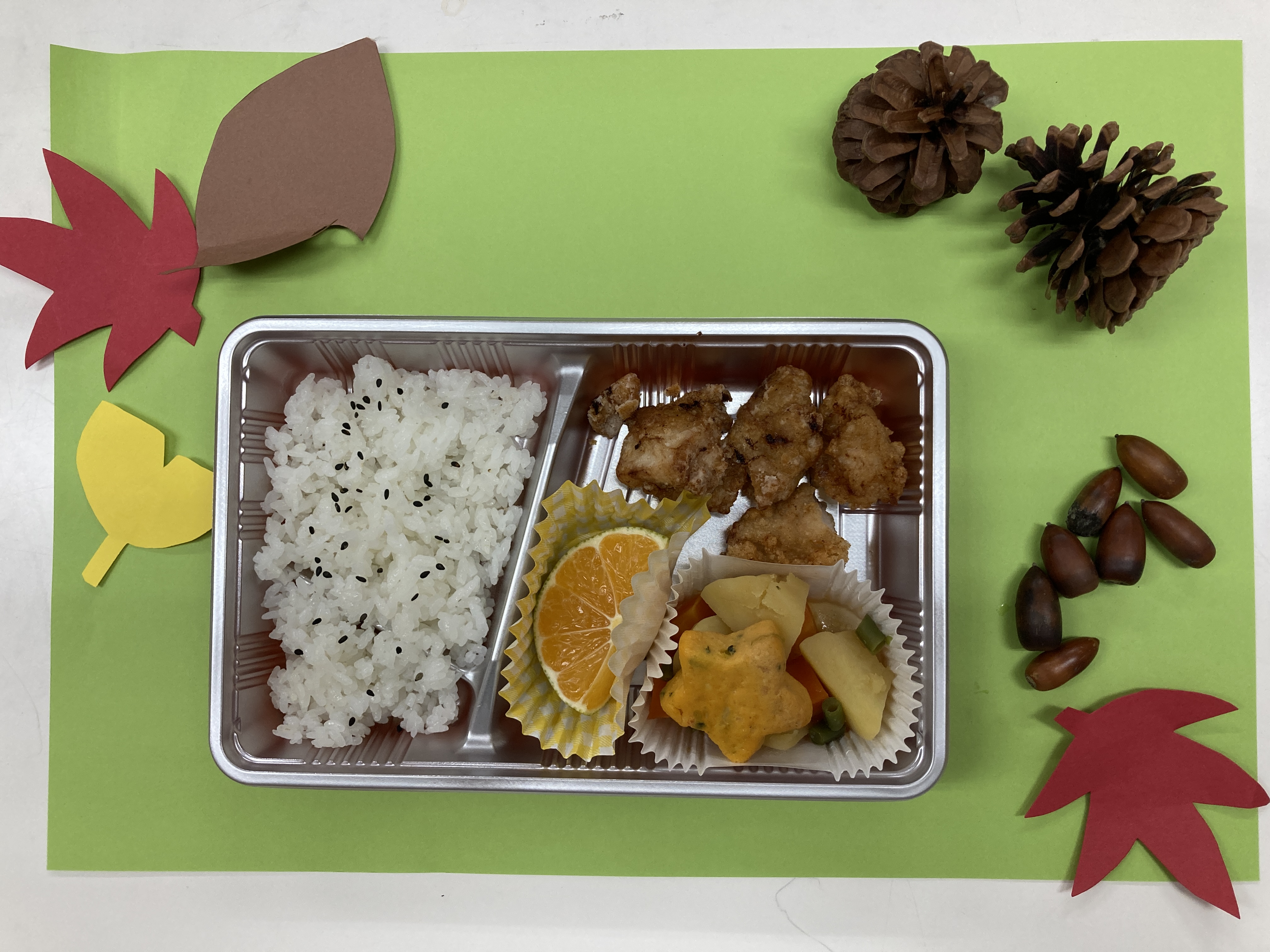 今日の給食はお弁当での提供でした。前もってお弁当という事が分かっていたので、青空給食にしよう!と計画。
