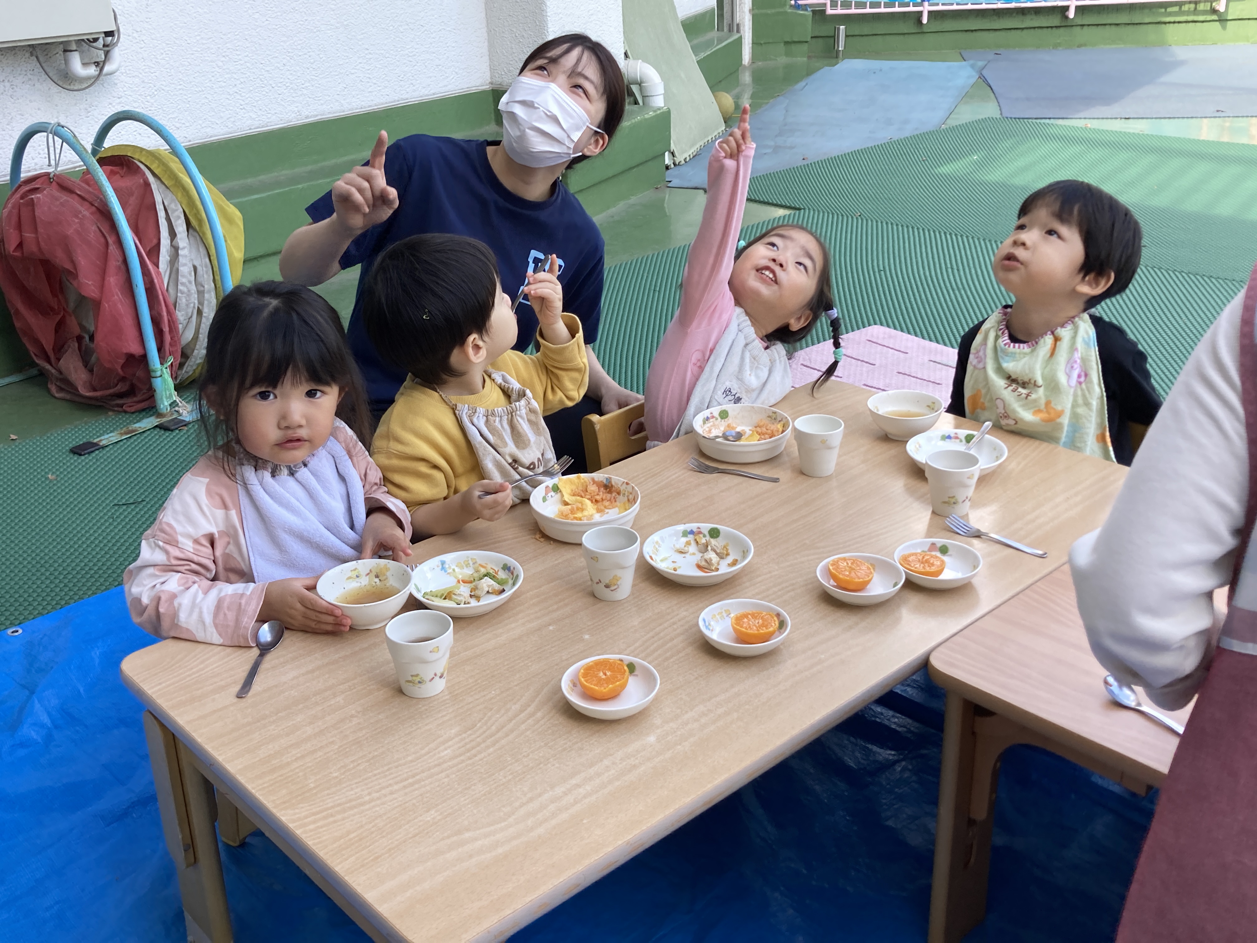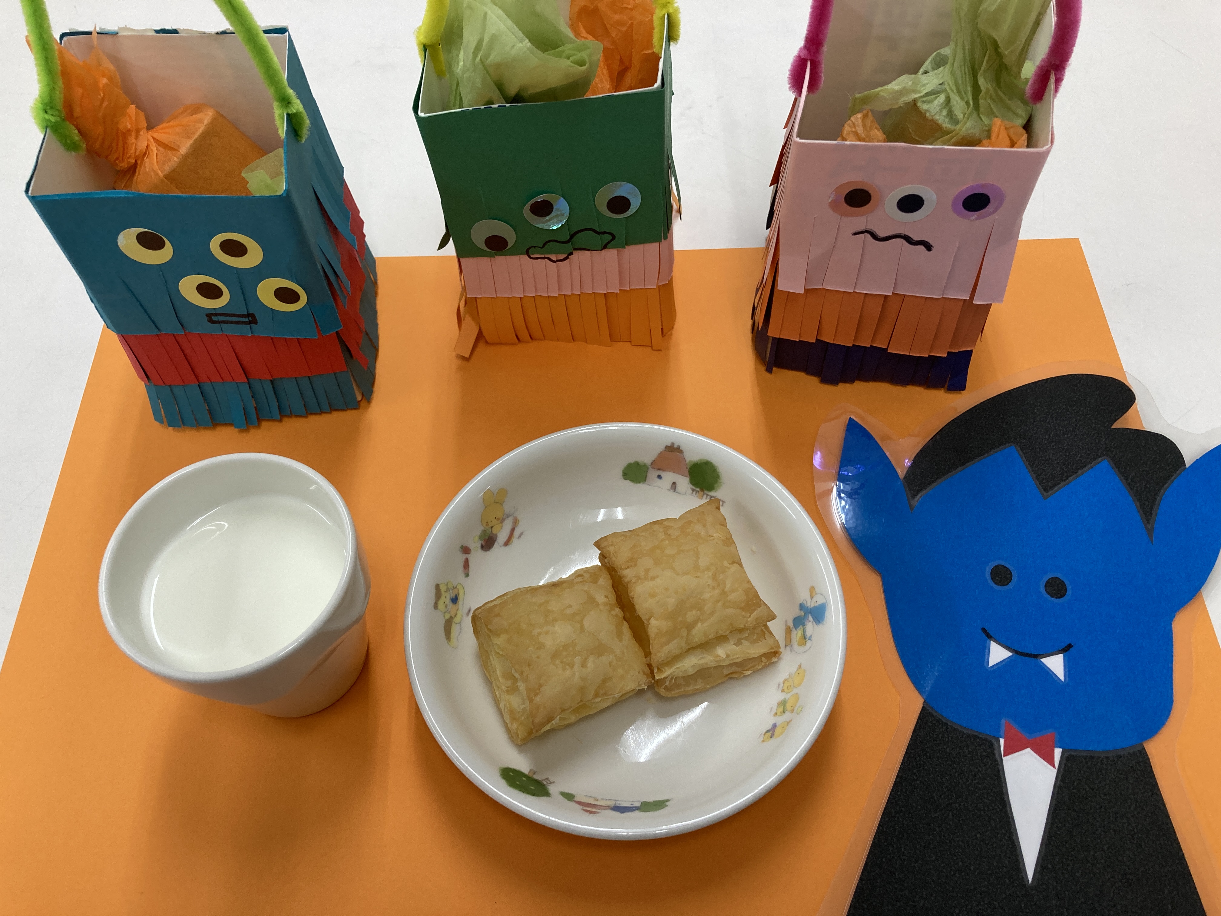 「かぼちゃあるよー」と美味しい給食の話を返していました。