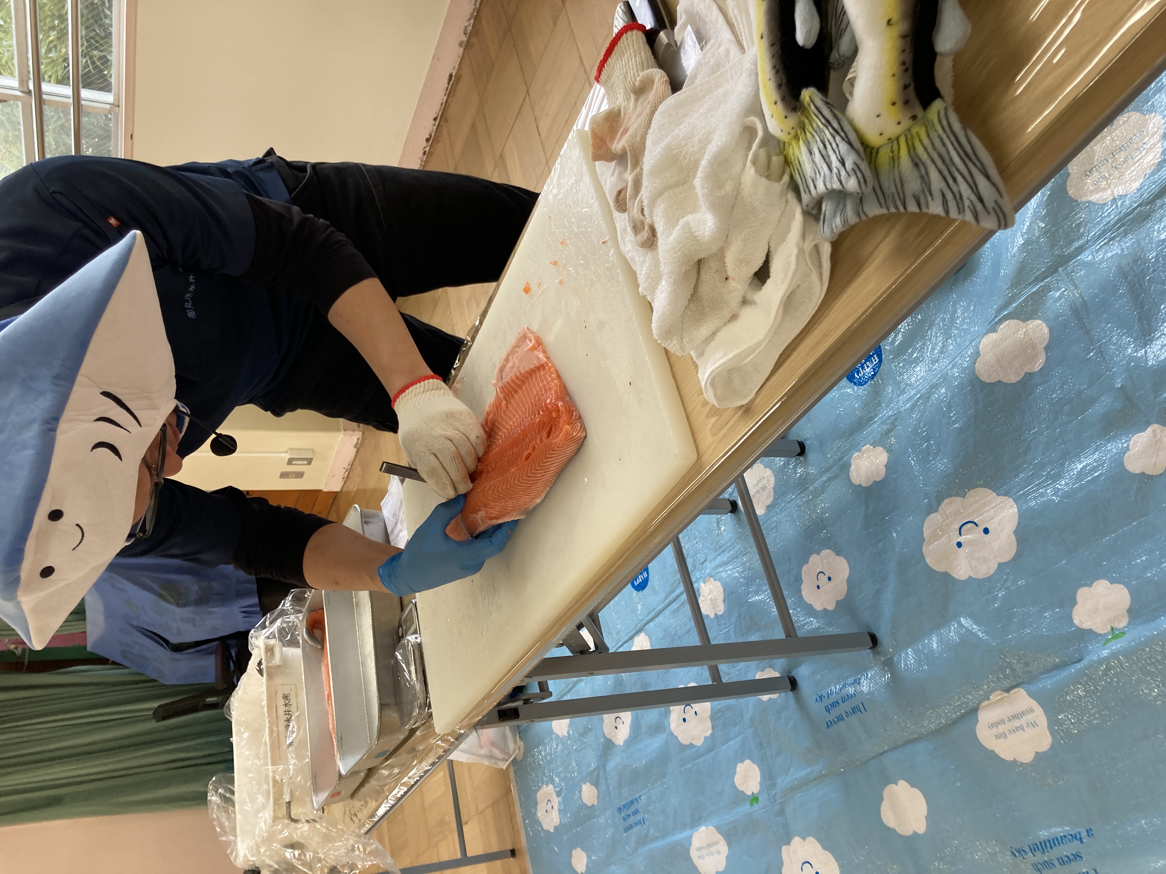 今日は、食育の一環として魚の解体を見ました。