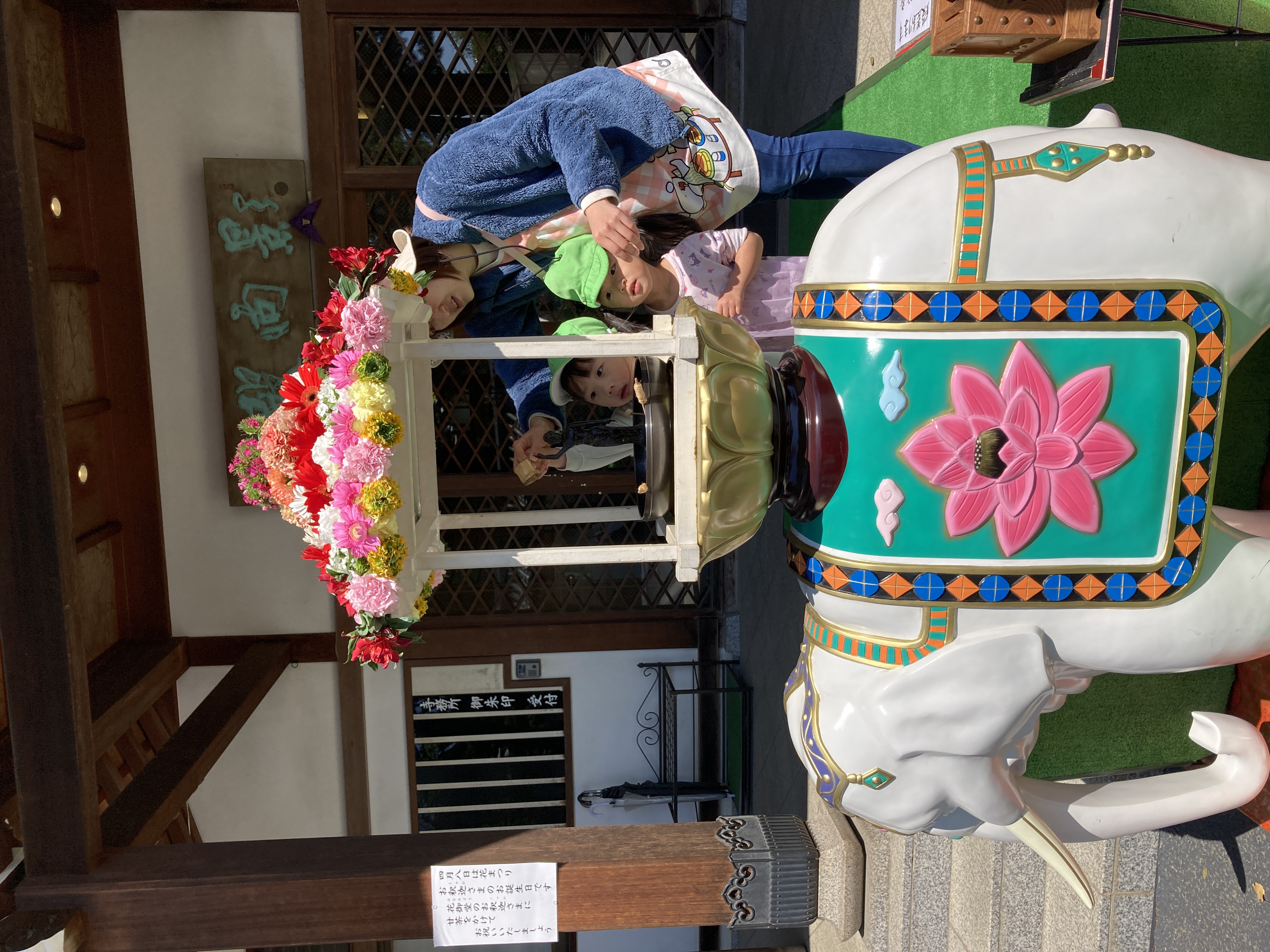 お散歩に行った4月8日はお釈迦様のお誕生日にちなんで、花祭りを開催していました。
