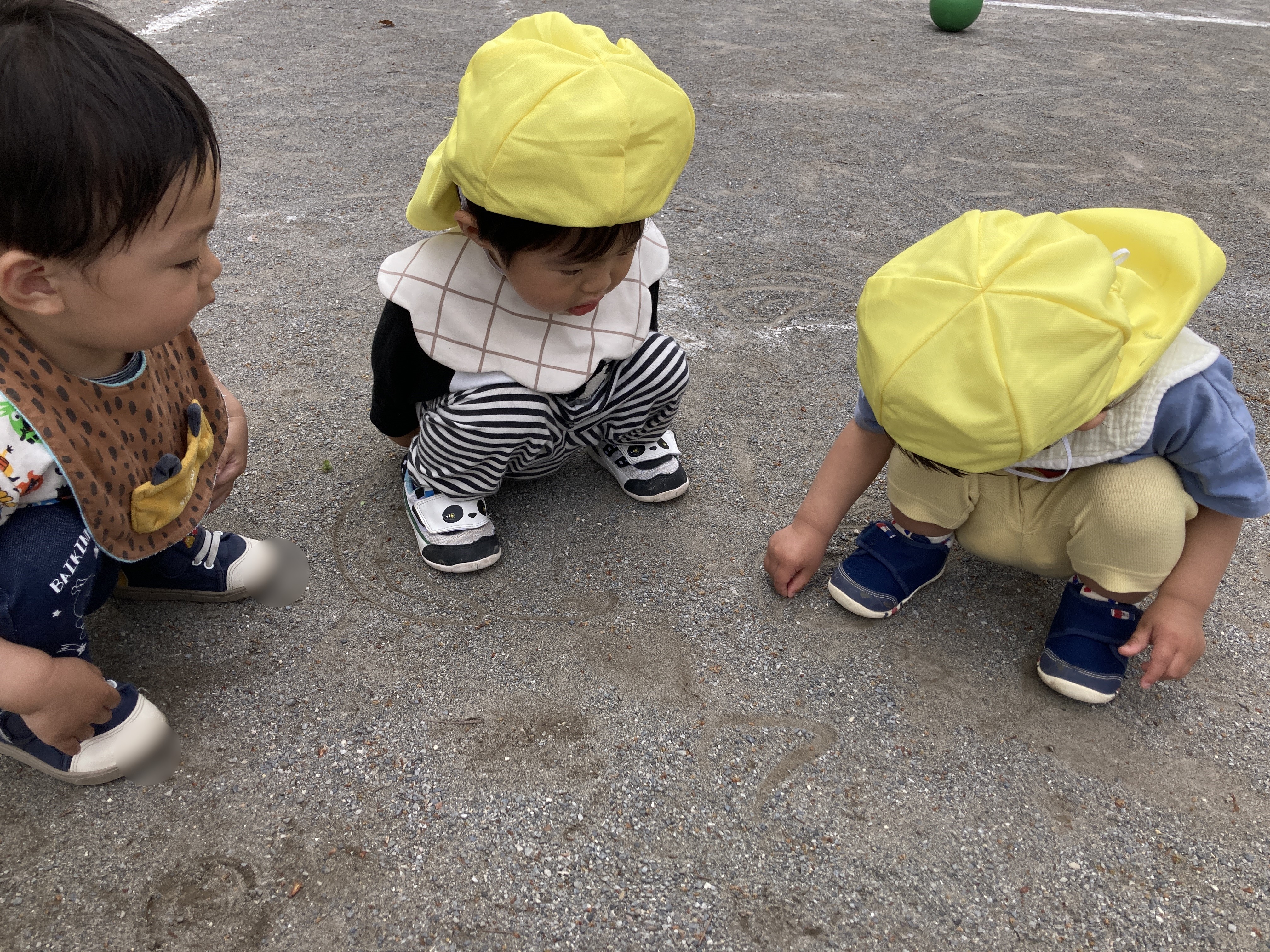緑の多い園庭では、花壇を見るとダンゴムシやテントウムシが見られるようになりました。虫やお花にも興味津々です。