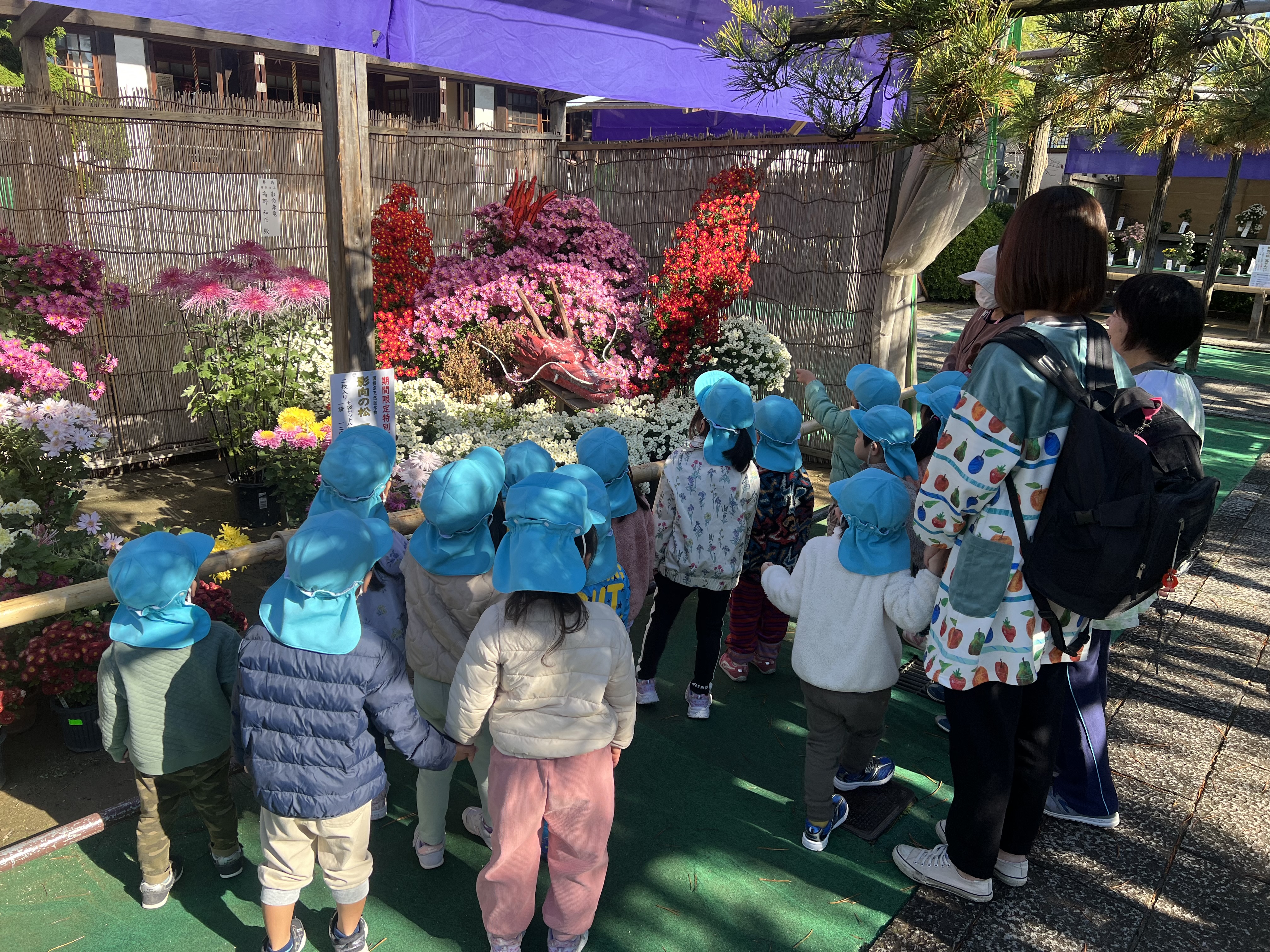 こちらの写真は善養寺さんの菊祭りの様子。子ども達は初日から菊を愛でる常連さんです。善養寺さんは小さいお友達も大好きな場所です。