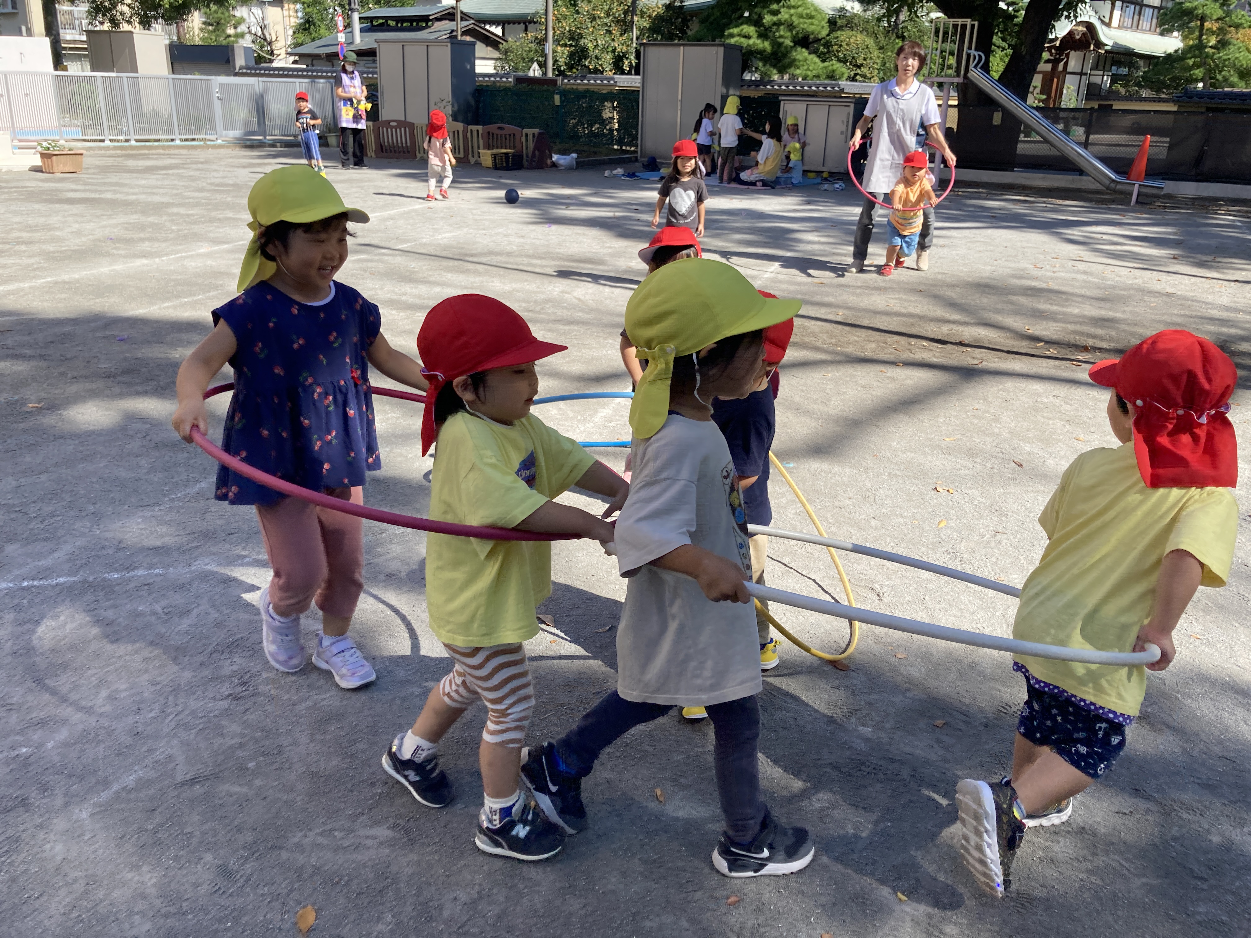 大きなケヤキの木、子ども達が遊びやすい日陰を作ってくれて子ども達を優しく見守ってくれています。これからの季節は紅葉した落ち葉で何して遊ぼうかな?