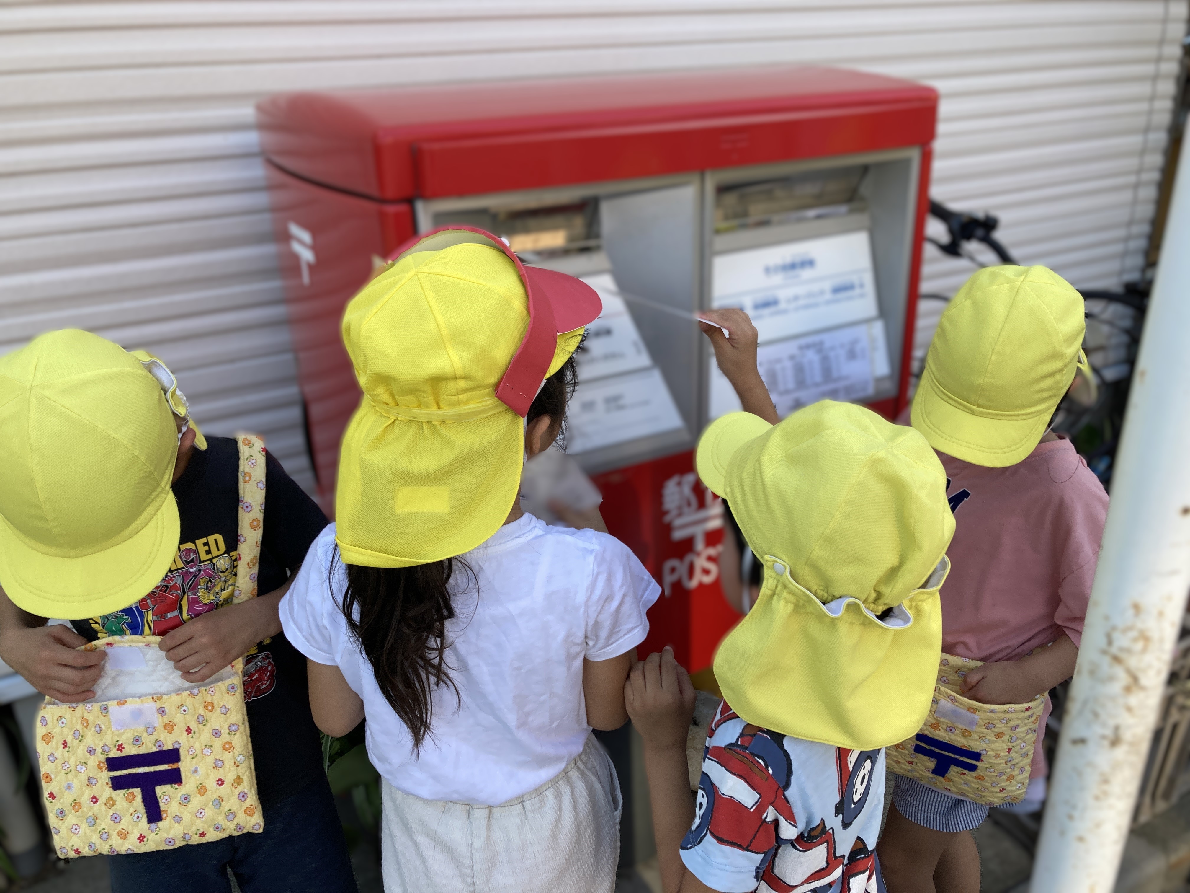 9月中旬、保育園のみんなが一生懸命作った敬老の日のハガキを園長先生と一緒に投函しに行きました。