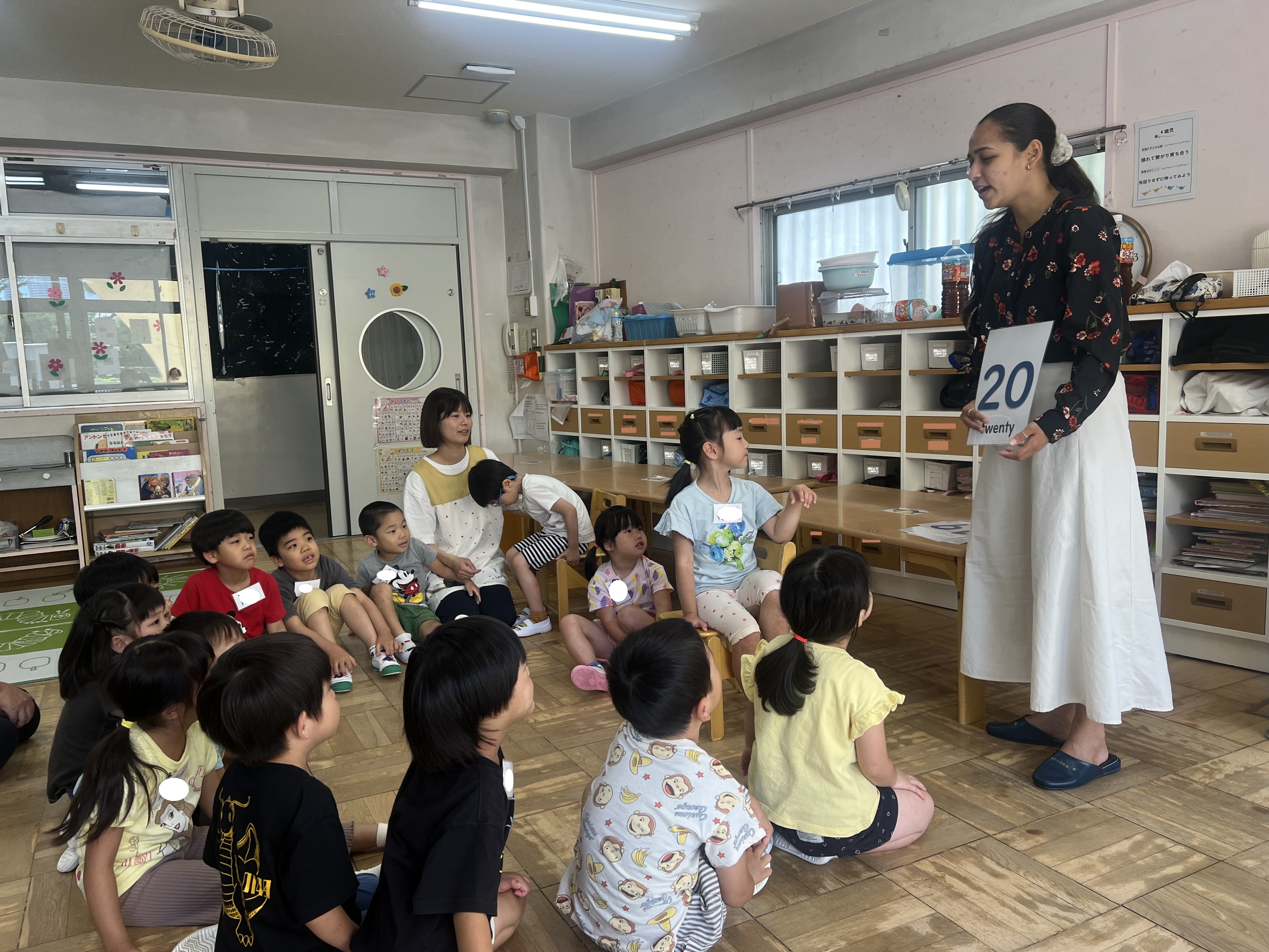 月に1度の英語教師による英語あそびです。英語だけで過ごす30分、子ども達はわくわくしています。