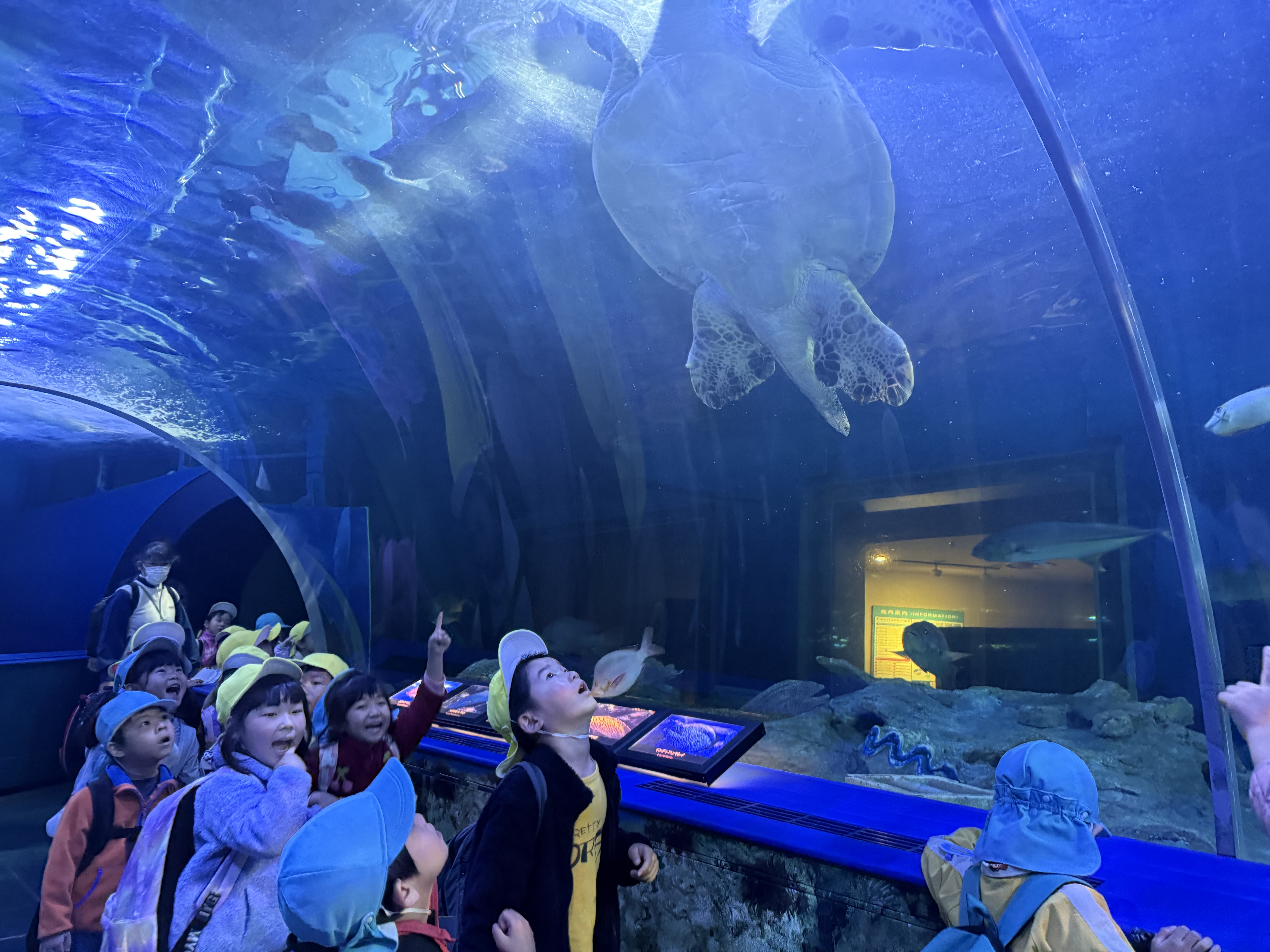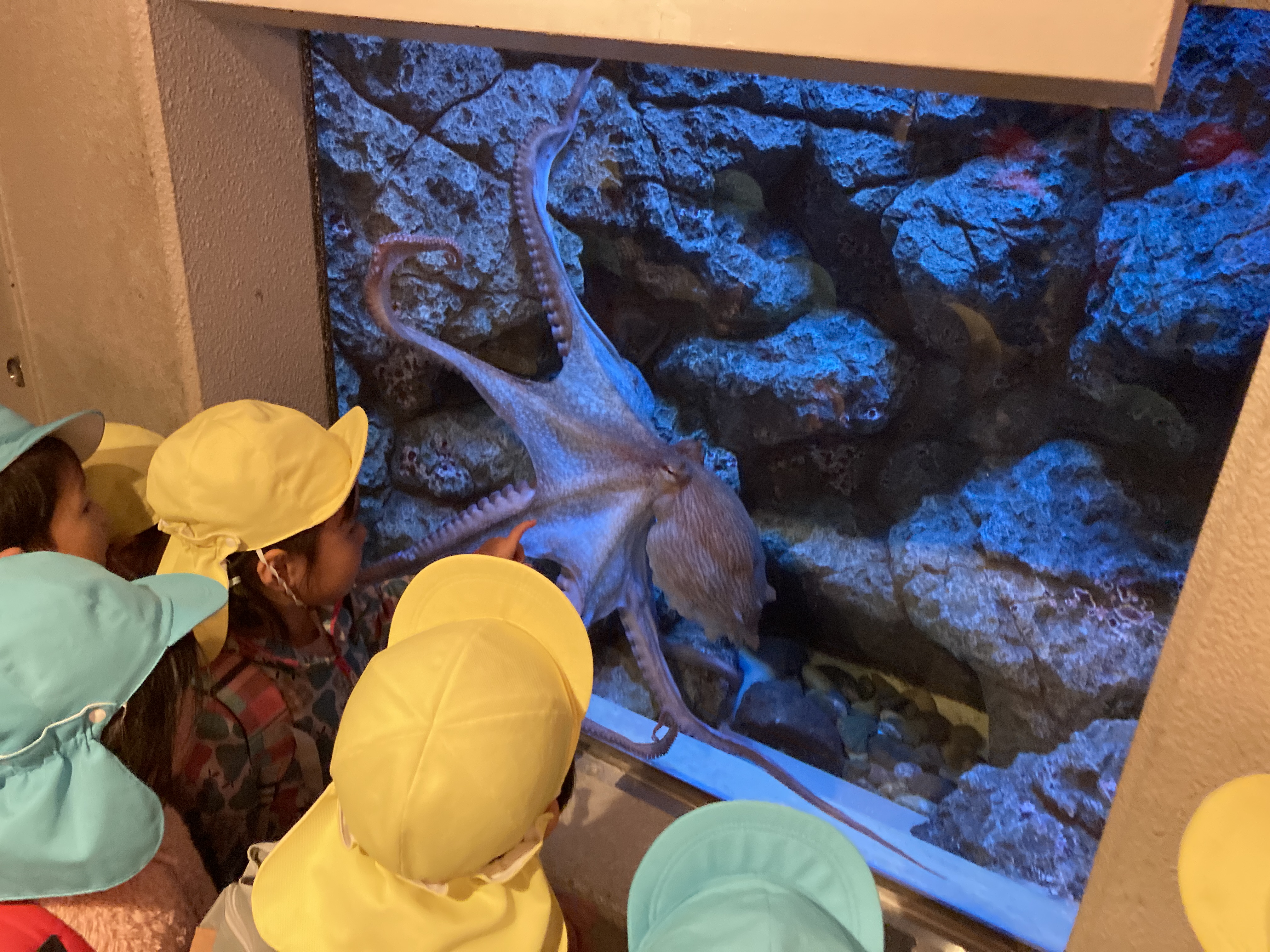 館内では、タカアシガニやエイ、サメやカワウソなど馴染みのある生き物がたくさんいて、次々に目移りしてしまうほど楽しんでいました。