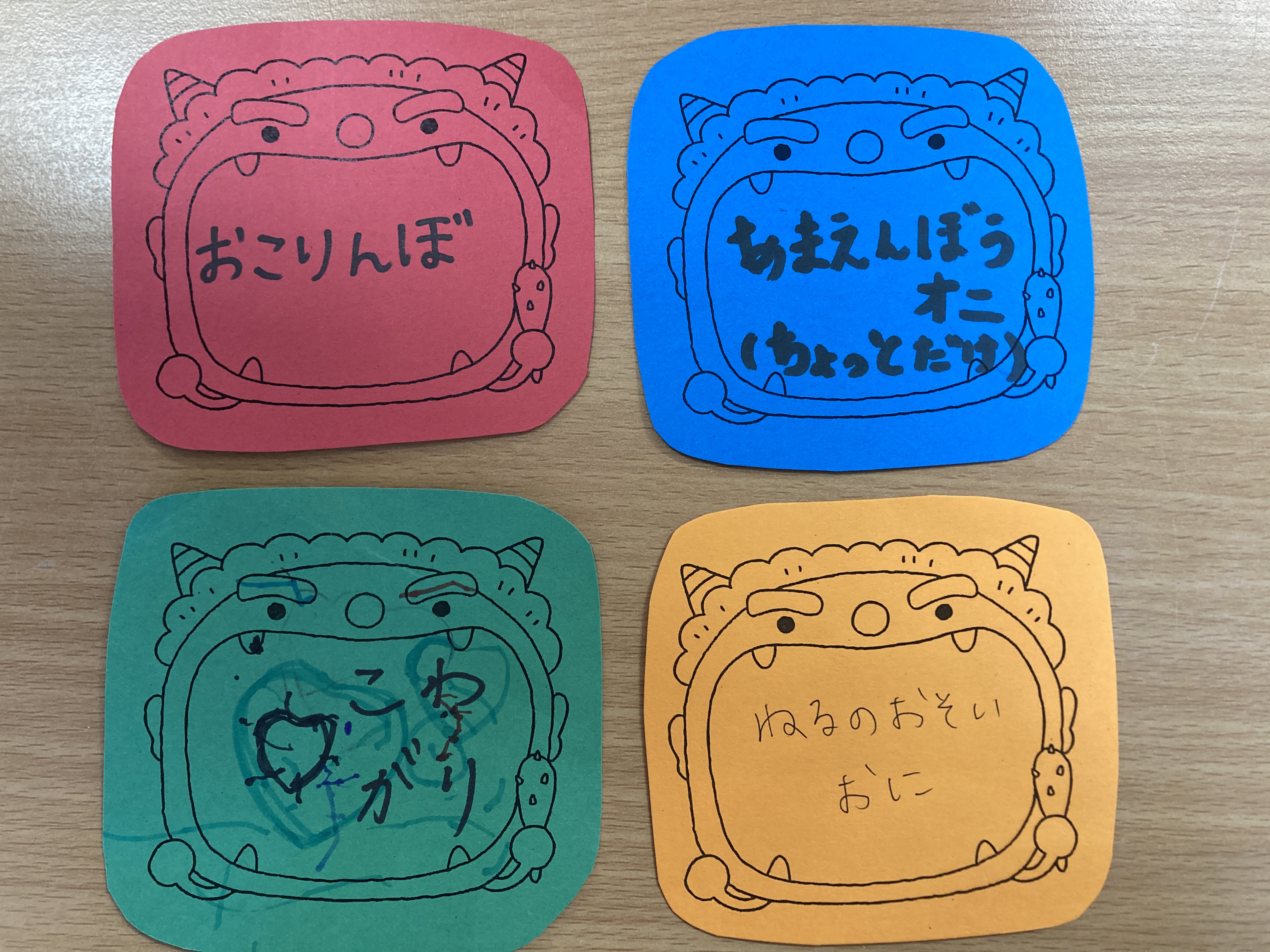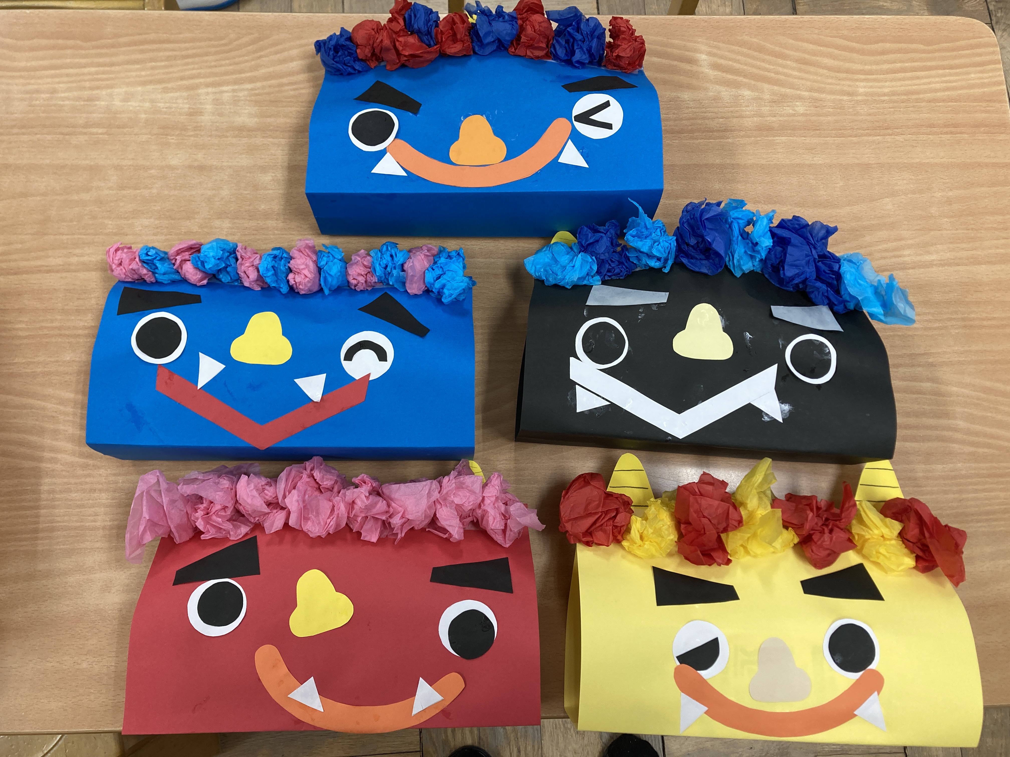 鬼の色、顔の一つひとつのパーツの形全て子ども達が好きな物を選んだ為、オリジナルの鬼が出来上がりました。