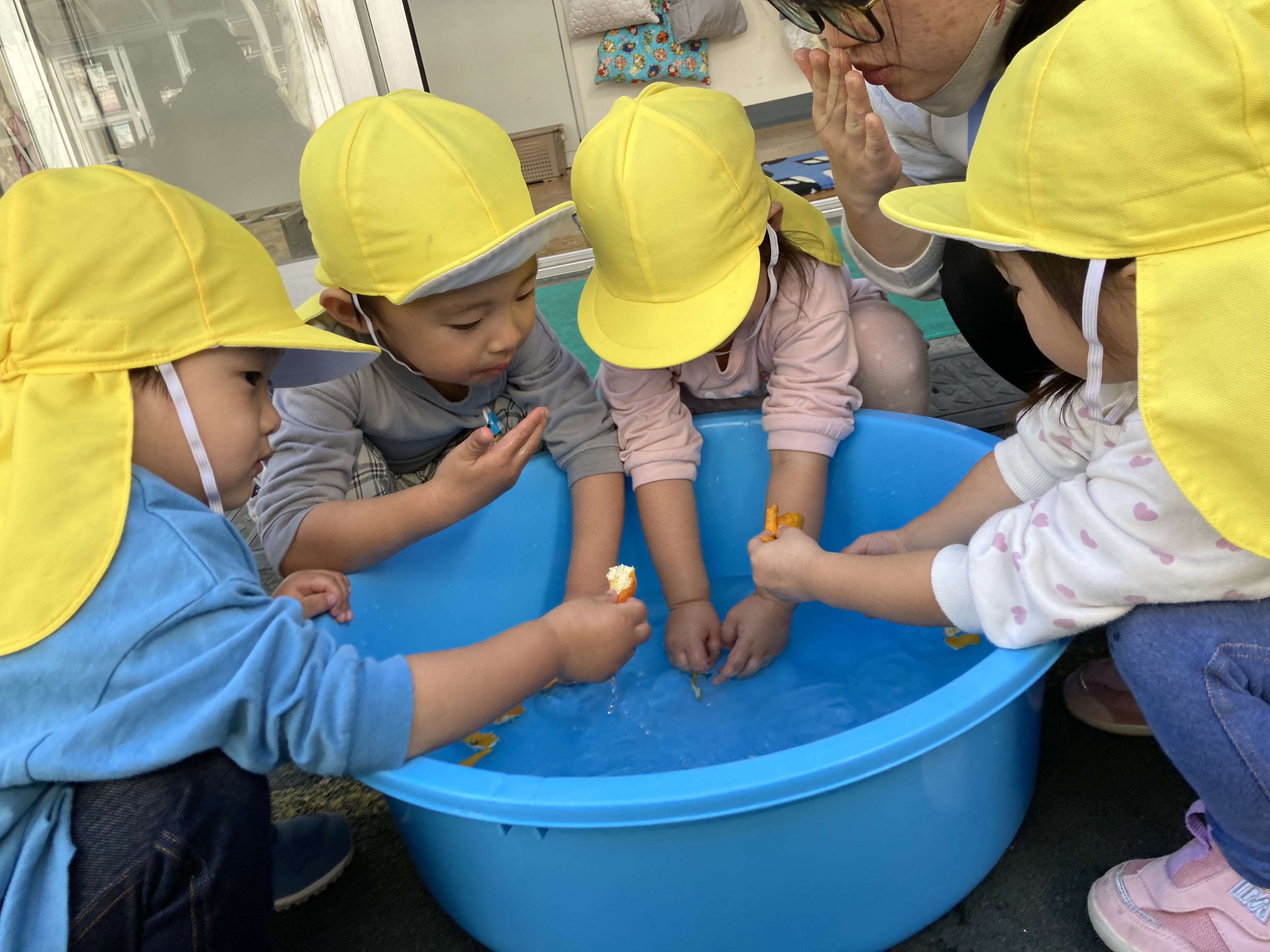 保育目標の「ありがとうのこころ」「かんじるこころ」「やってみようのこころ」の3つを大切に、