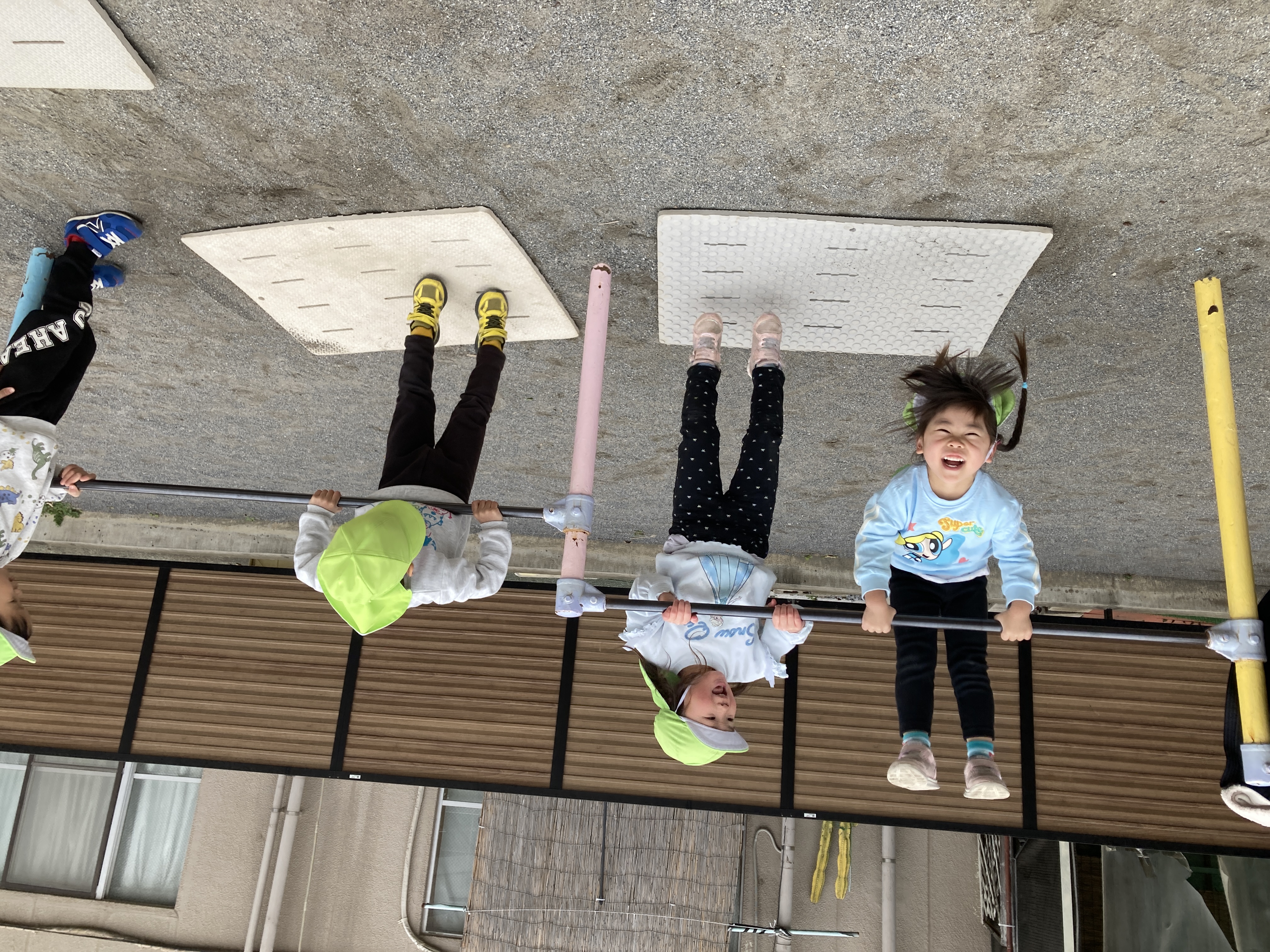 最近は鉄棒で前回りをしたり、逆上がりをしたり、、。「やってみたい!」の気持ちから自分で何度も挑戦してできるようになりました!「先生見ててね!」と自信満々に取り組んでいます。
