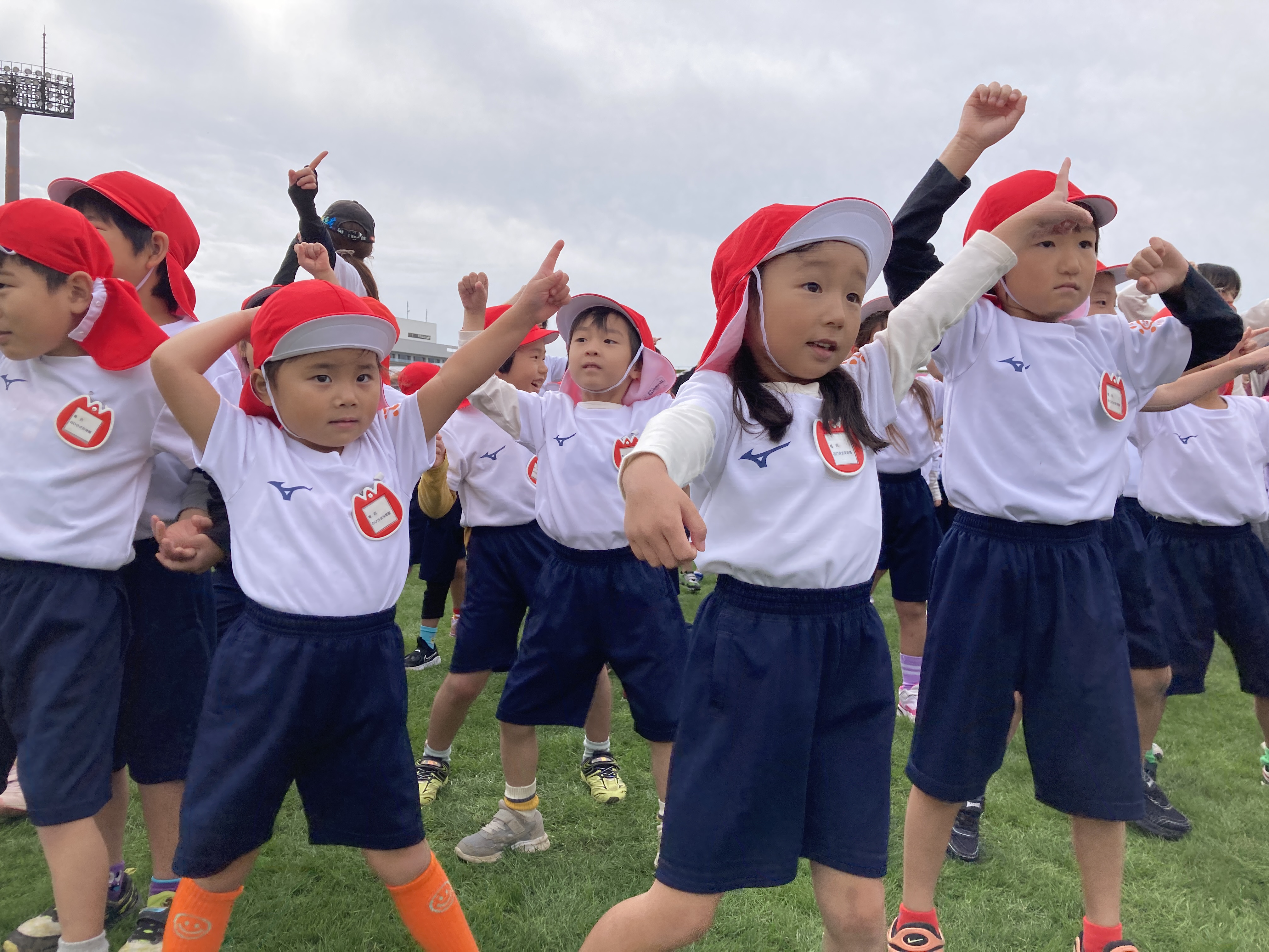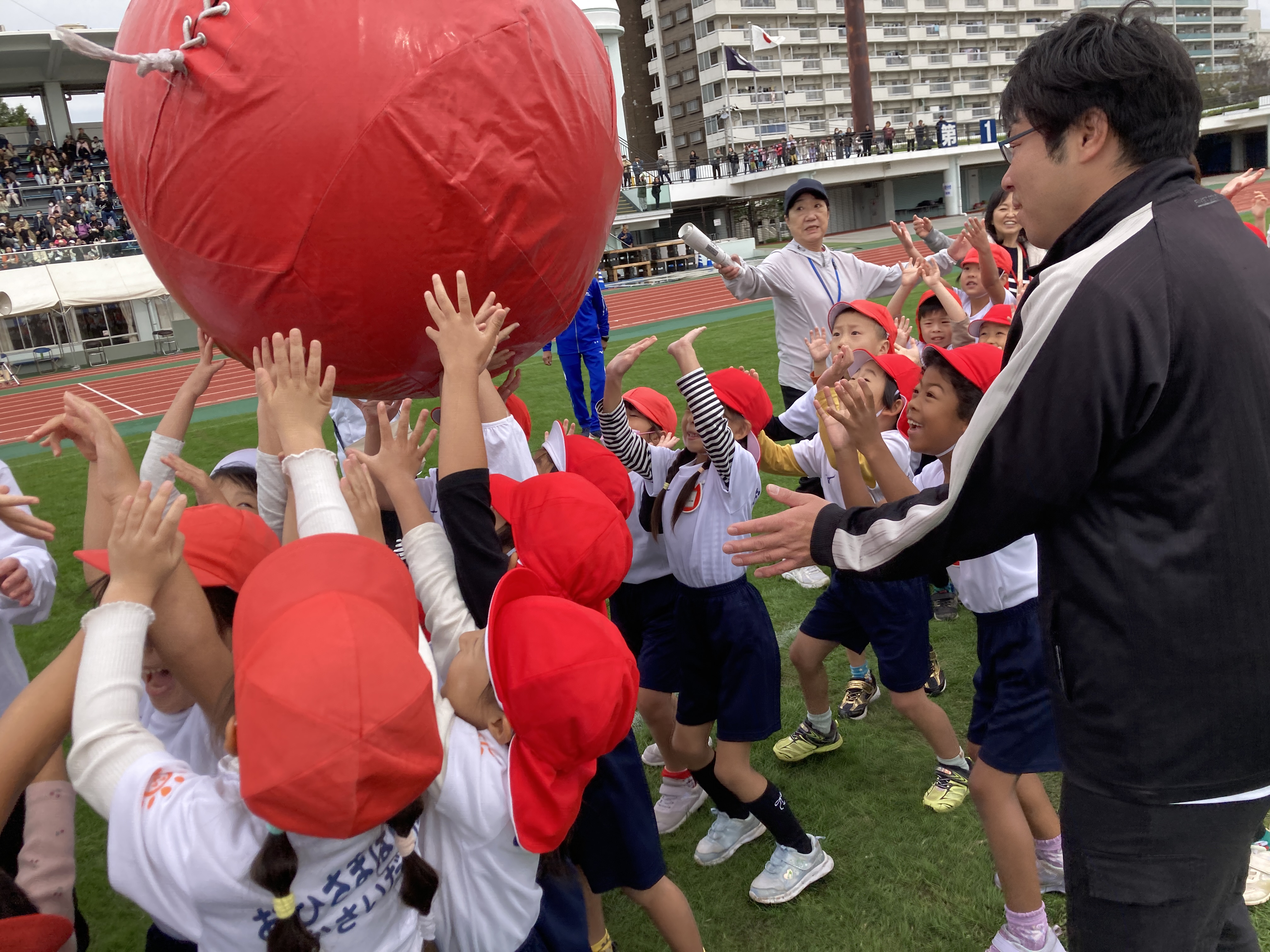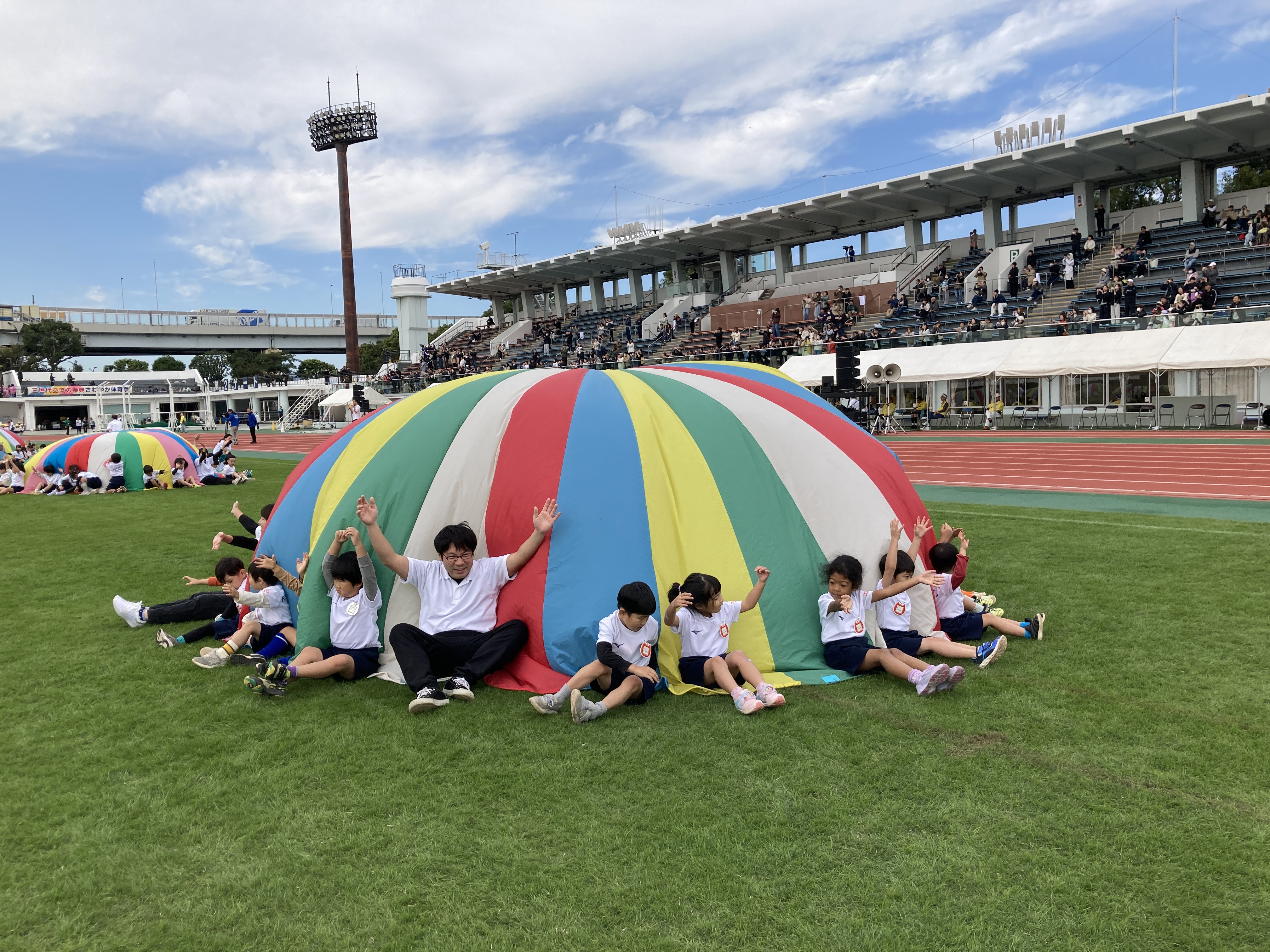みんなが一番楽しみにしていたのはパラバルーン。保育園でも練習していたパラバルーンをおひさま保育園の年長児クラスみんなで発表しましたよ。少し肌寒い日でしたが、そんな天気も吹き飛ばすくらい元気いっぱい披露することができました☆