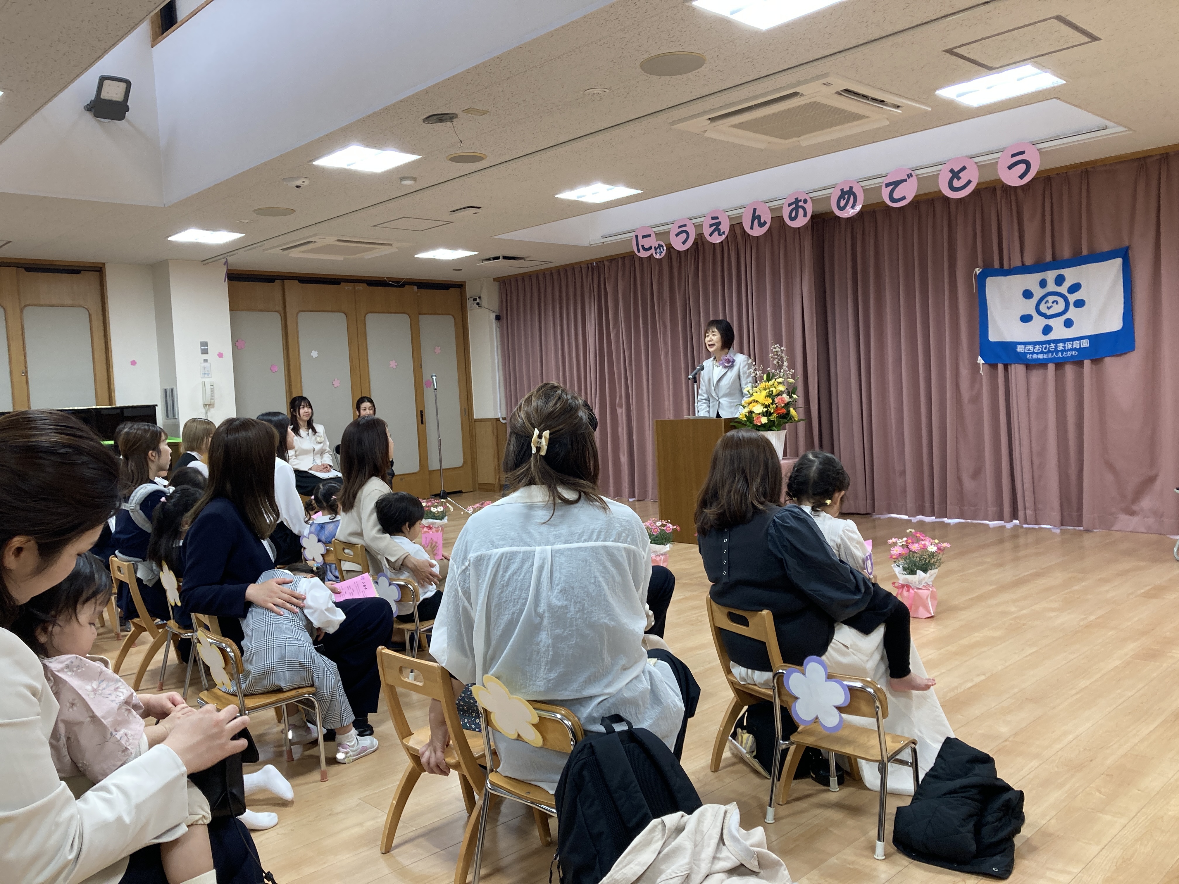 入園式が始まると保護者の方の膝の上に座ってきちんとお話を聞いていました。