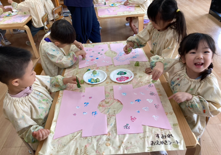 (上記は4歳児ゆり組と2歳児たんぽぽ組の様子です)