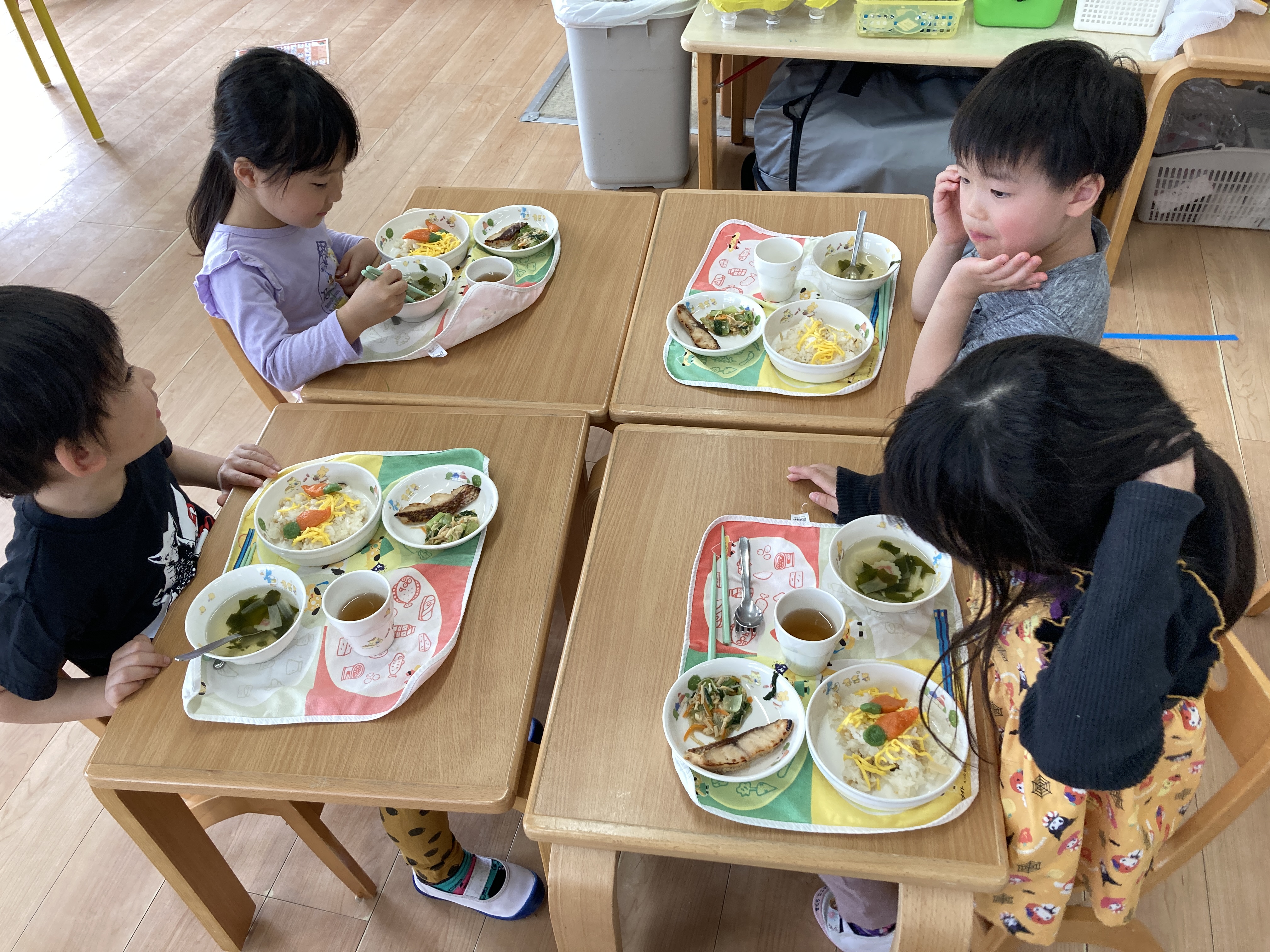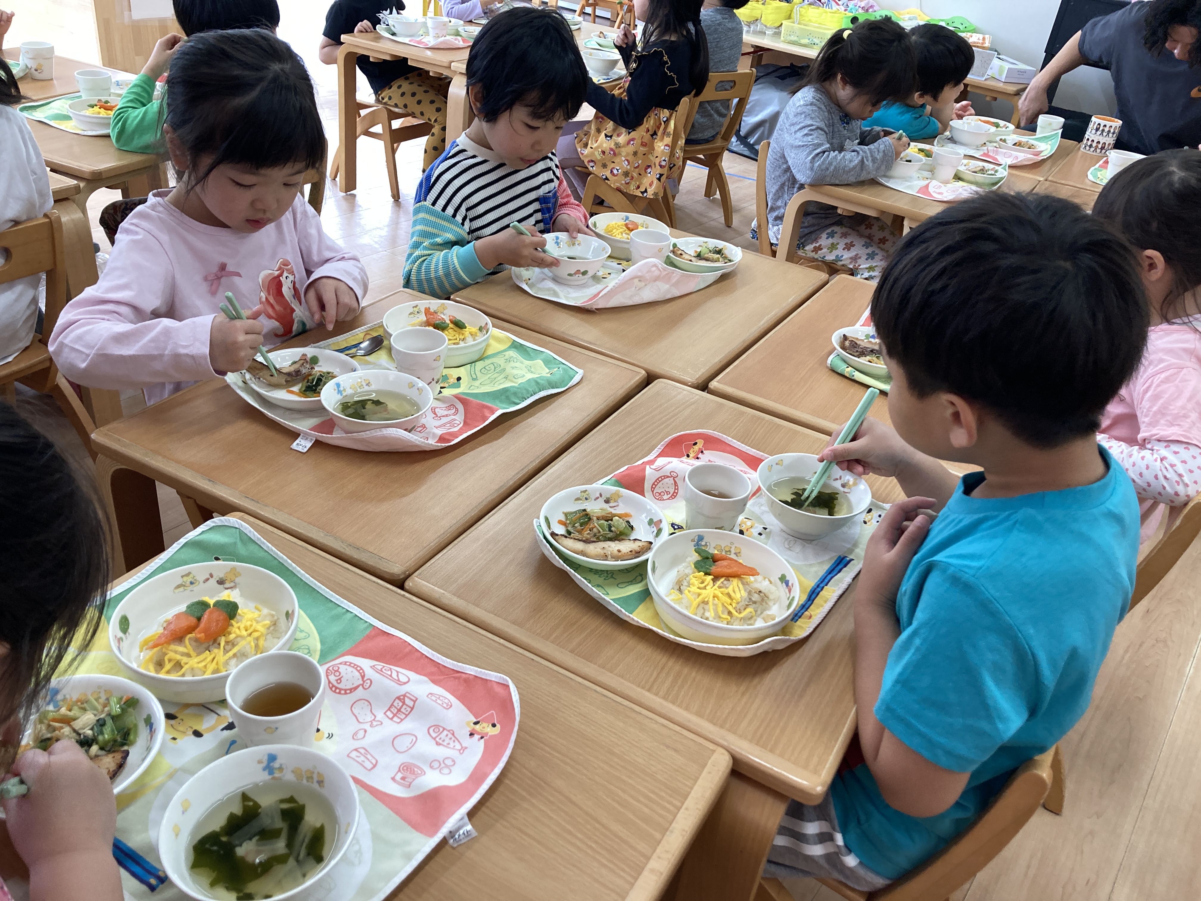 苦手な食べ物がある子も、今日はお友だちと見せ合いっこしながら、どの子もよく食べていたのが印象的でした。