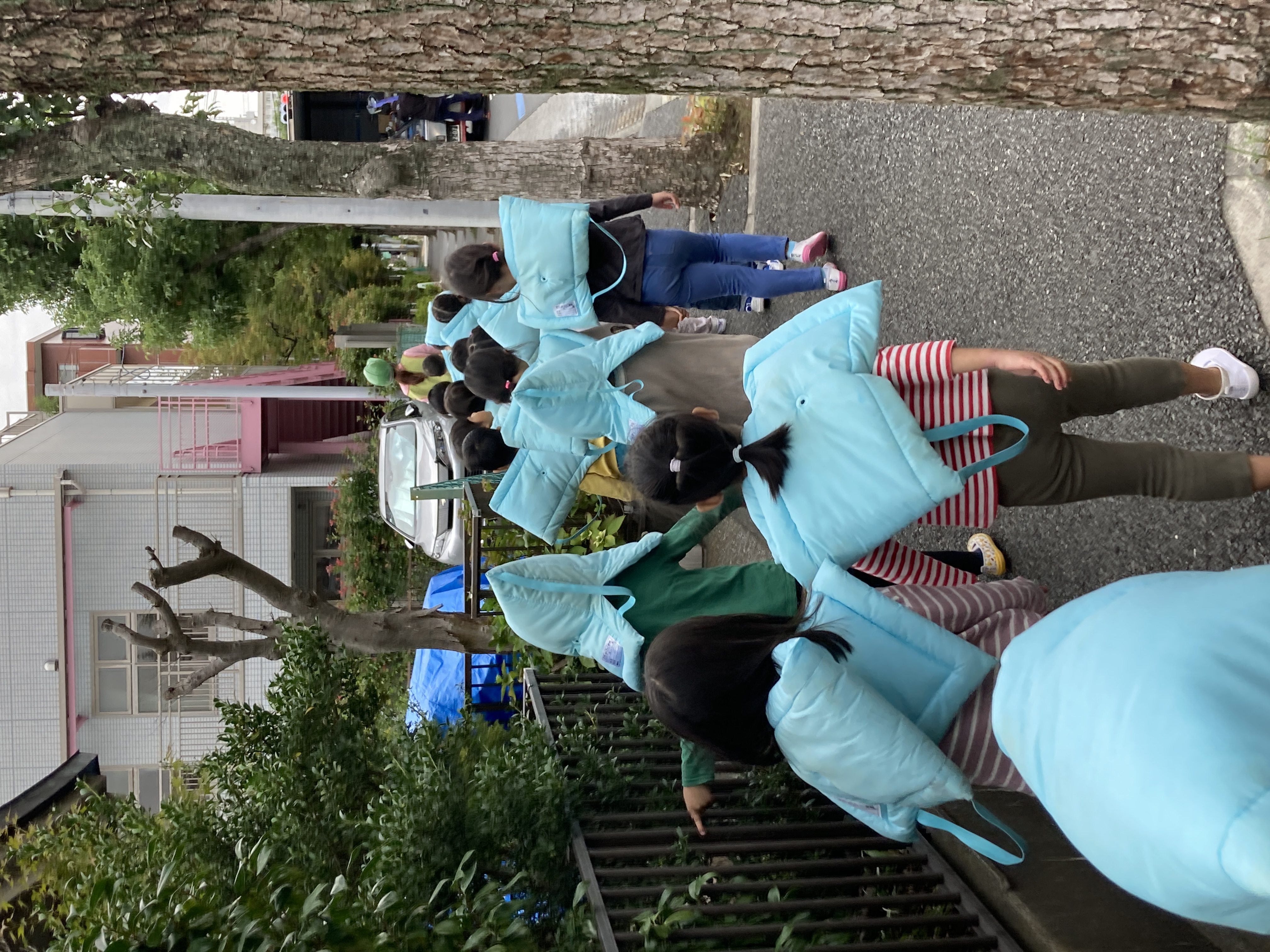 園庭に集まった後は、二次避難として中央公園まで避難しました。