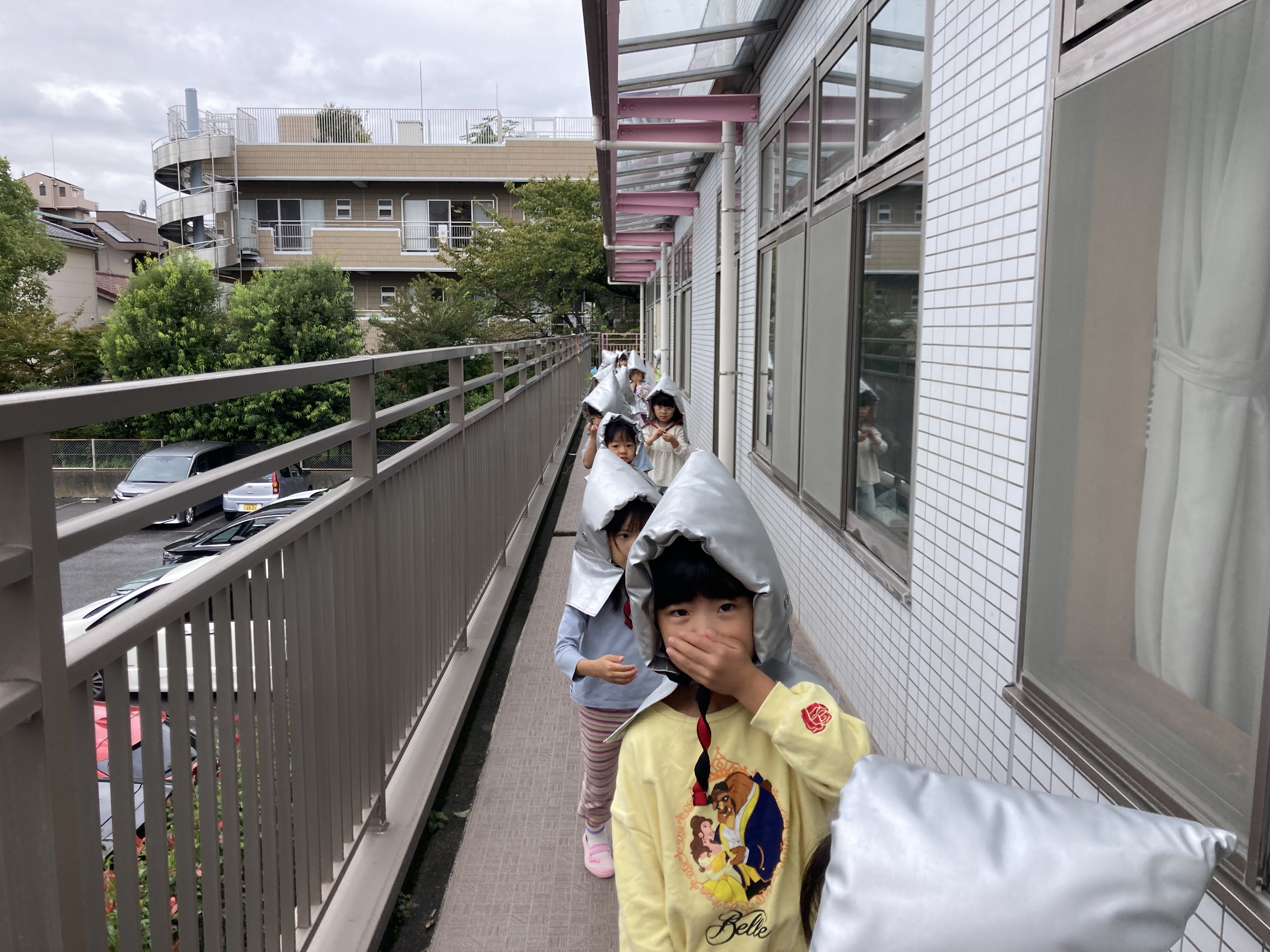 今回の避難訓練は、”地震からの火災を想定して二次避難を行う”というねらいのもと行いました。