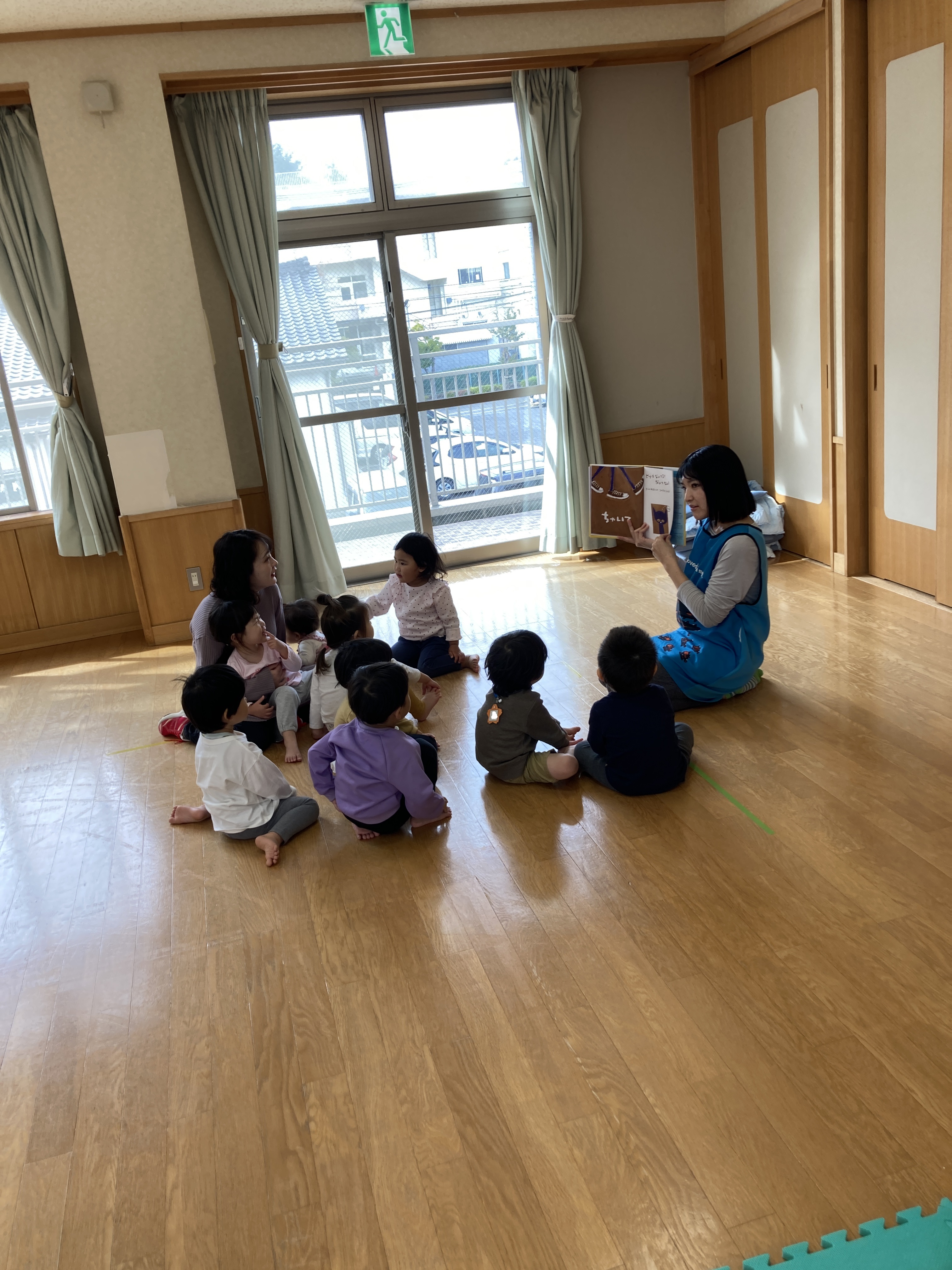 遊びに来てくれた在園児は、うさぎ組めろんグループの子ども達。普段の遊んでいる様子を見せに来てくれました。