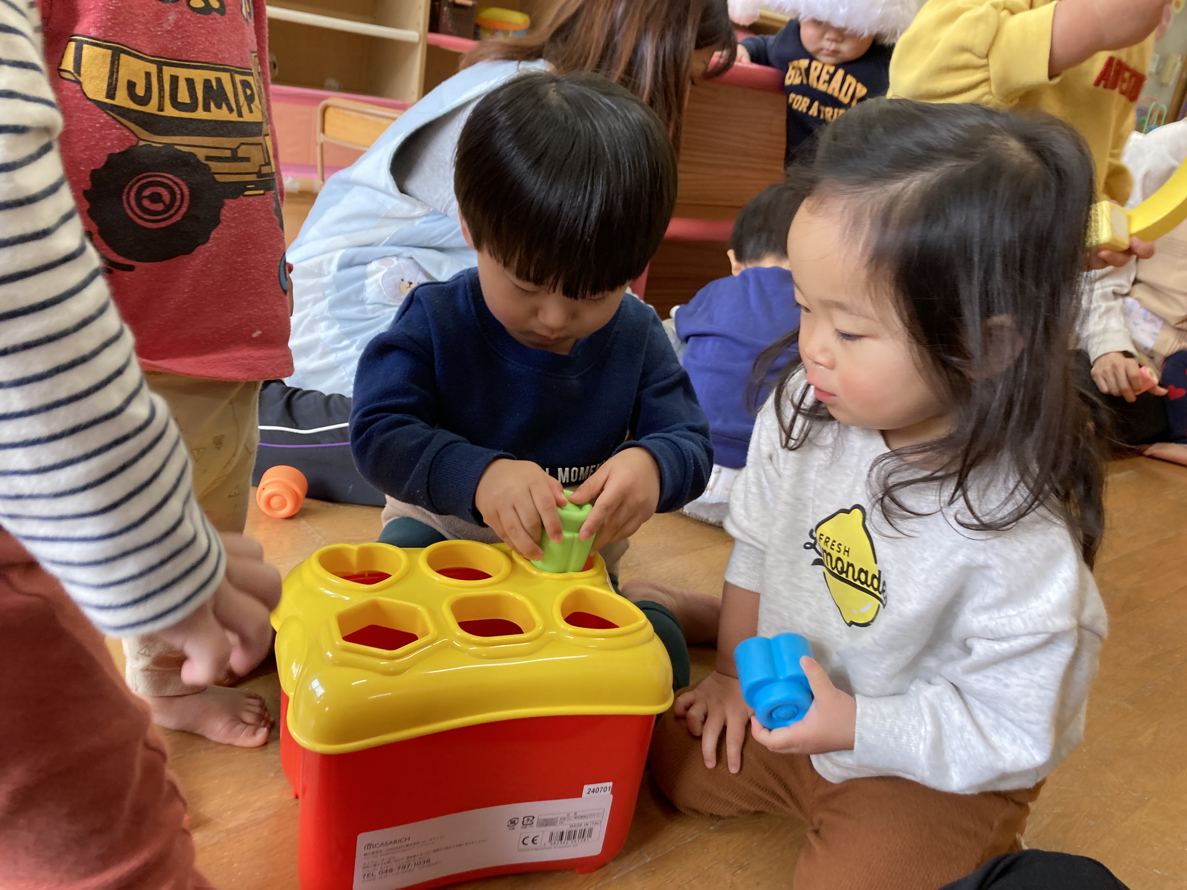 お部屋に戻ると、サンタさんからのプレゼントが置いてあり、大喜びの子どもたち。早速貰ったプレゼントで遊びました。