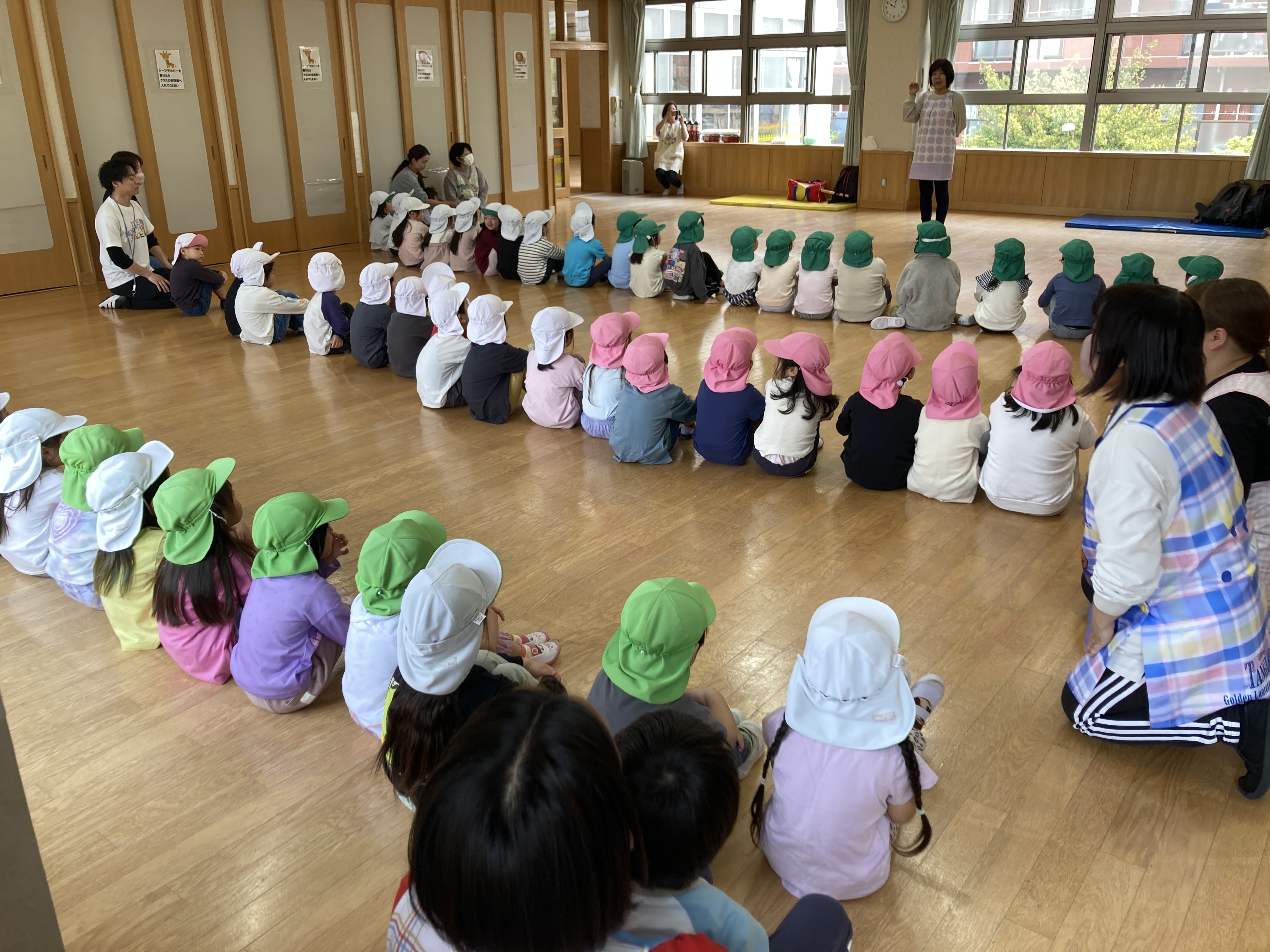 3園の紹介があり、クラスの名前が呼ばれると「はーい」と元気な声がホールに響きました。