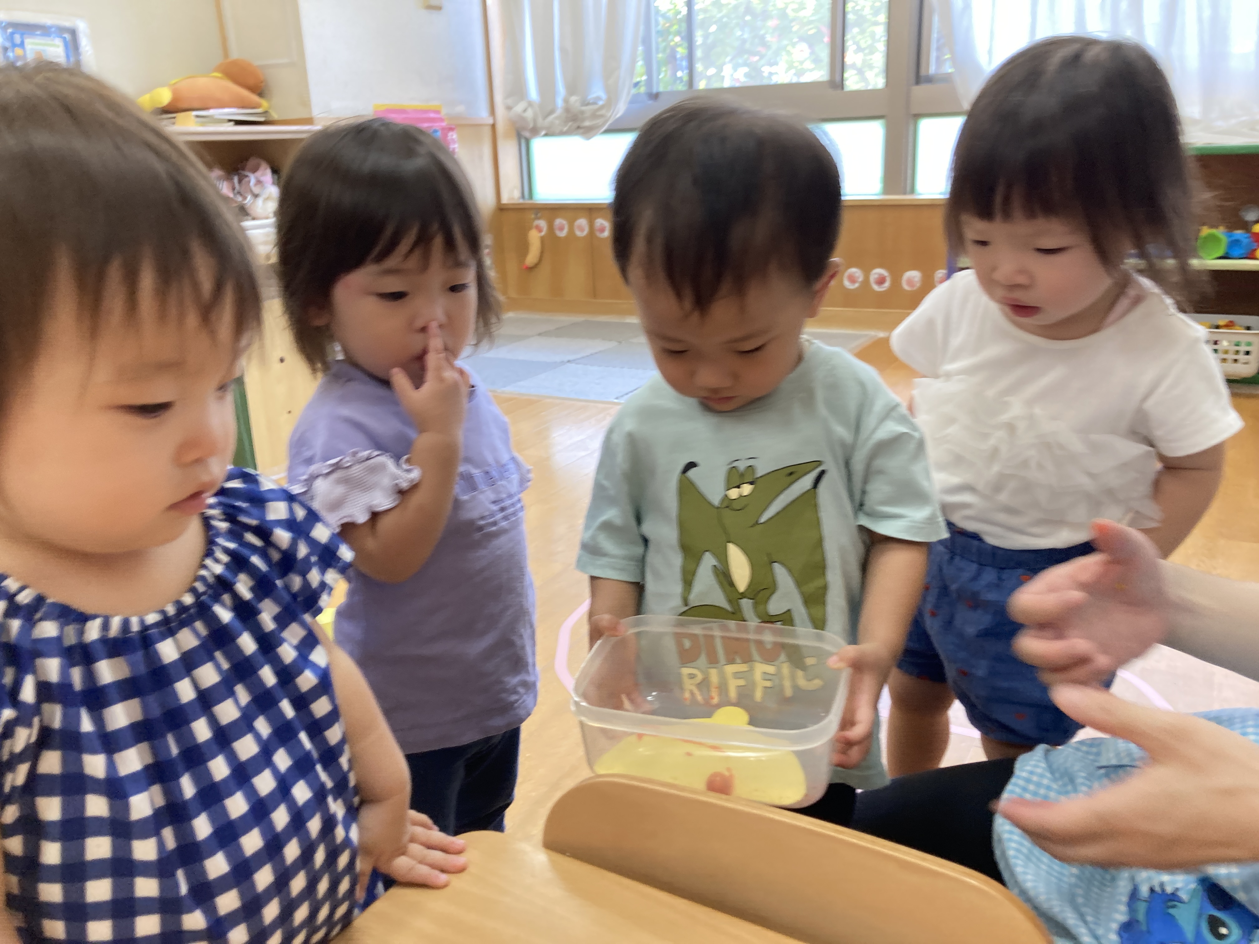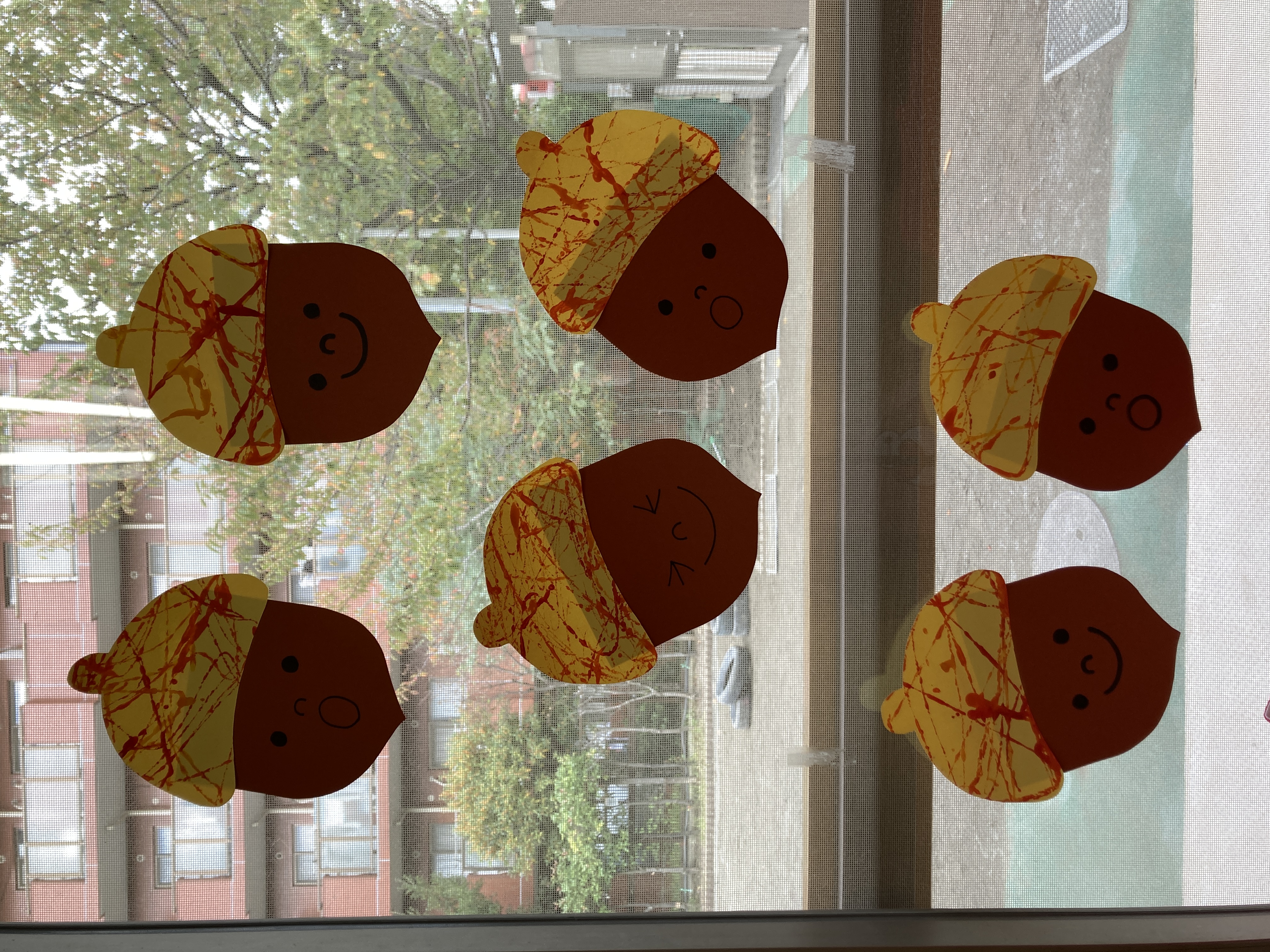 ひよこ組のお部屋では、子どもたちが季節を感じられるよう「どんぐりころころ」の歌を歌っています。