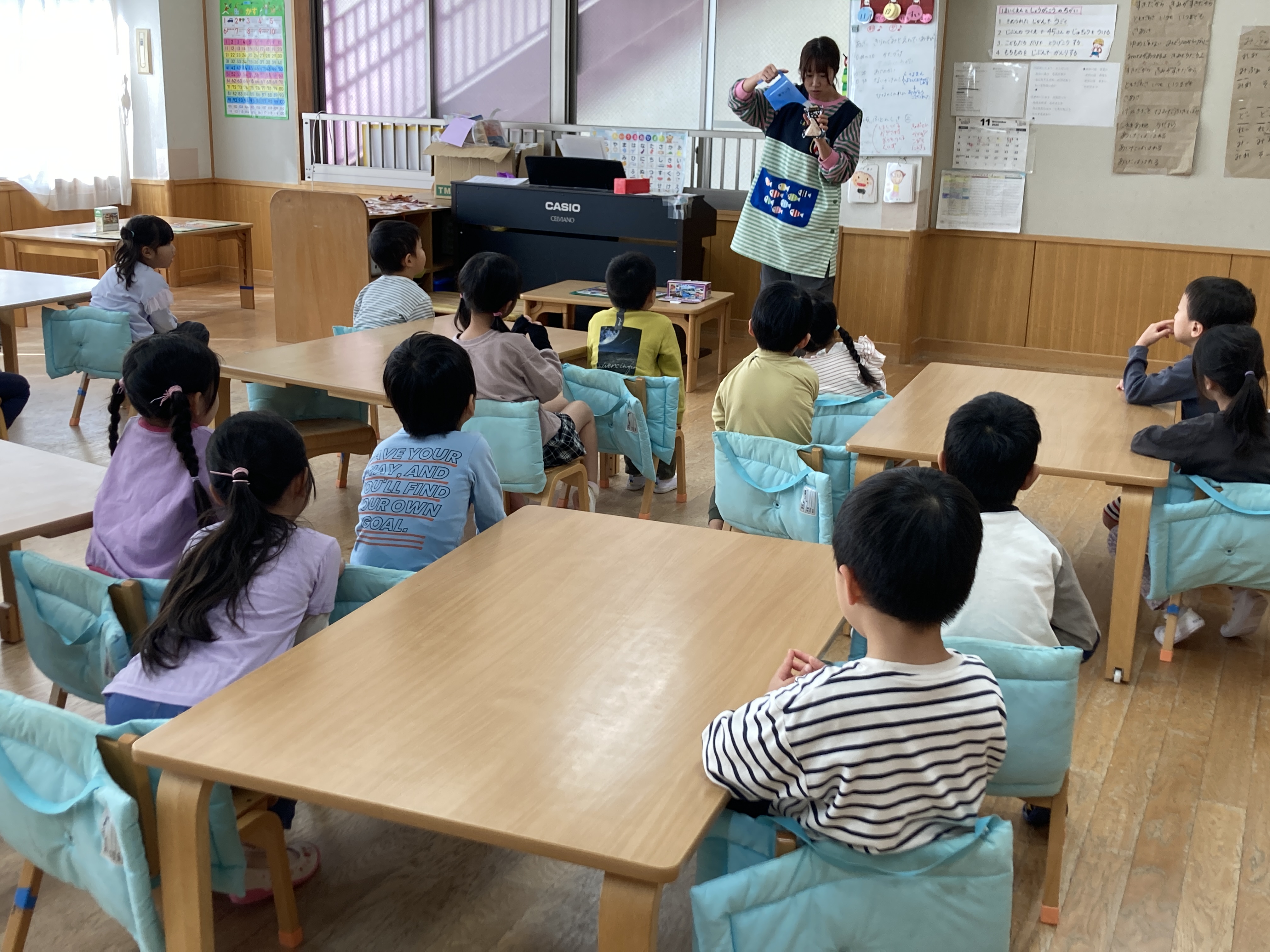幼児クラスでは、実際にお湯を入れて作るところから体験しました。