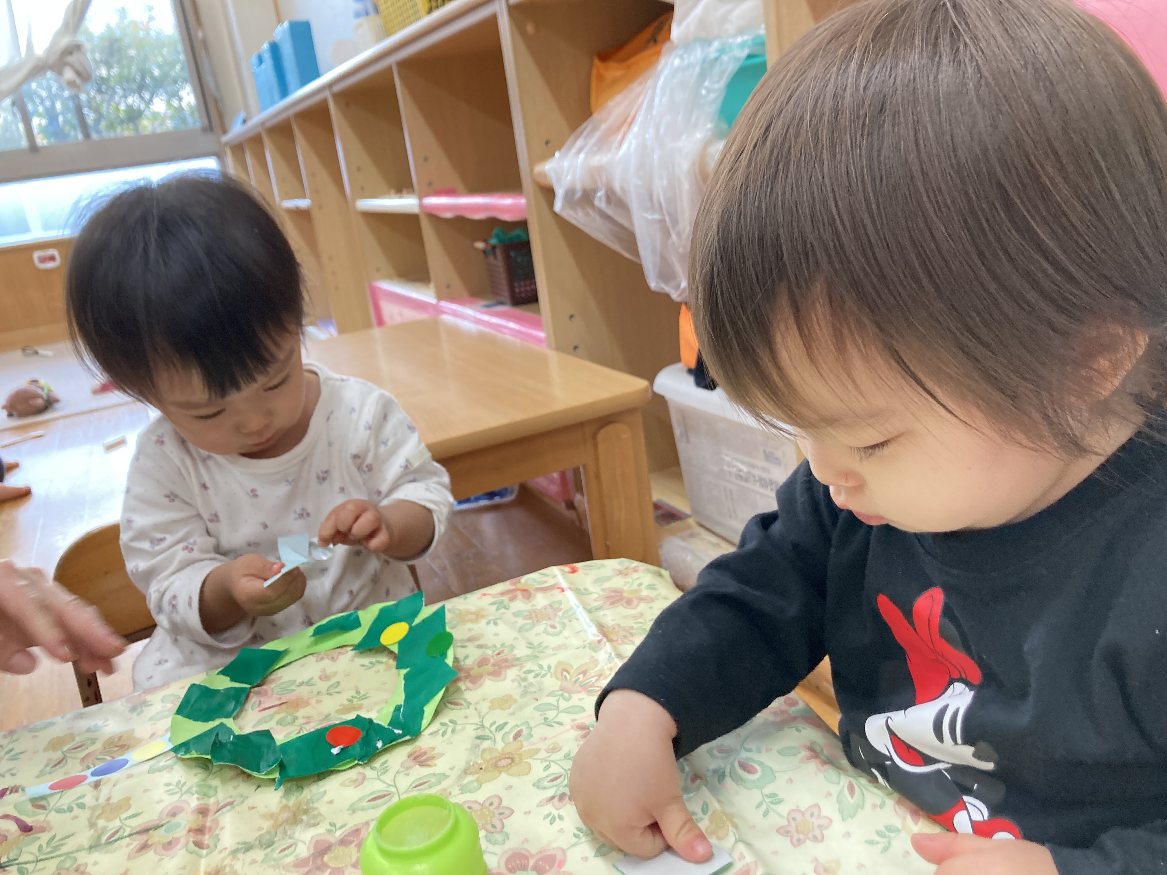 シールを台紙から剥がすのもみんな上手に出来ていましたよ!