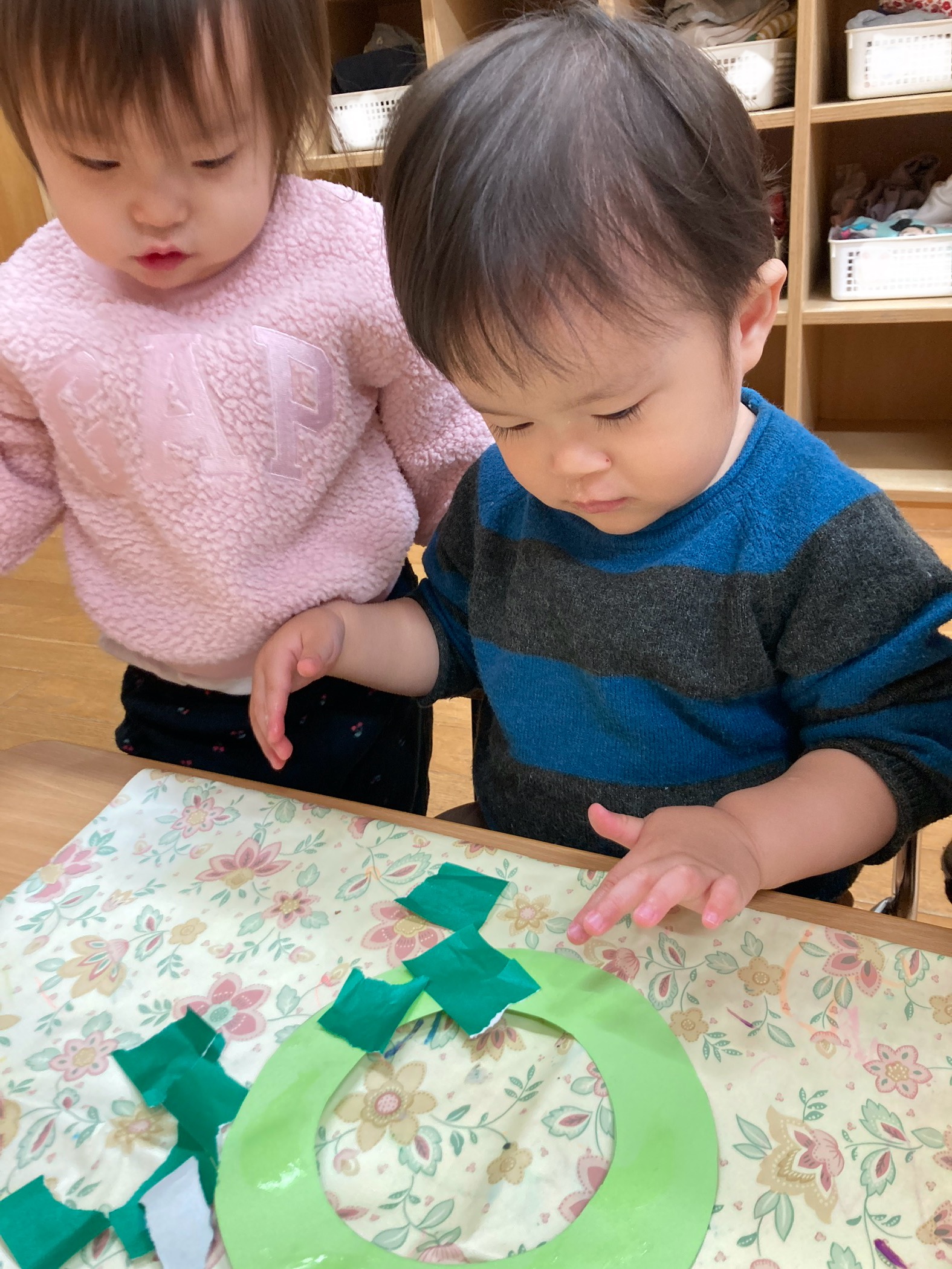 小さくちぎるのはちょっと難しかったようですが、指先に力を入れて上手にちぎっていました!