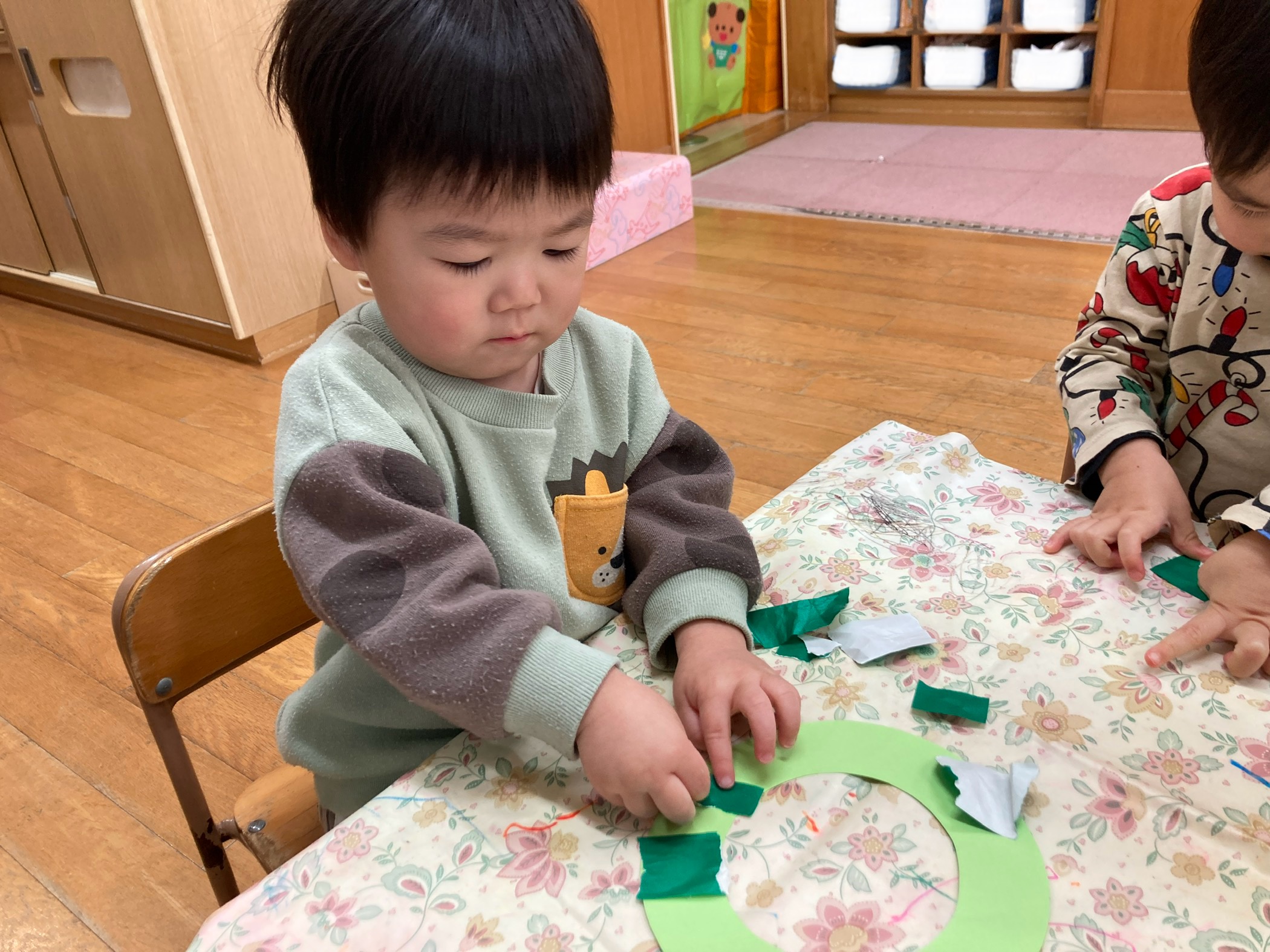 初めのうちは糊の感触が苦手な子もいましたが、だんだん慣れてきて上手にぬれるようになりました!