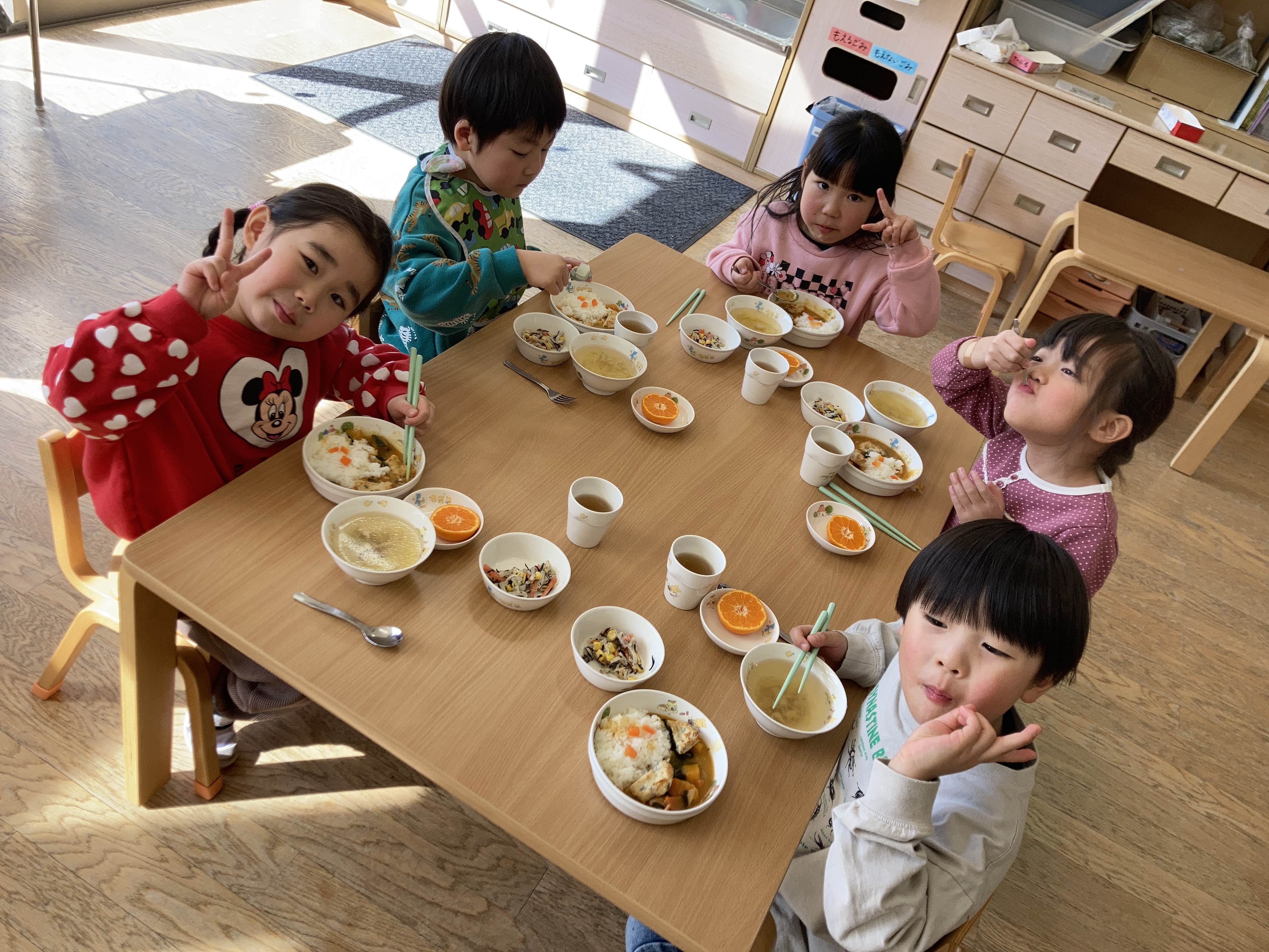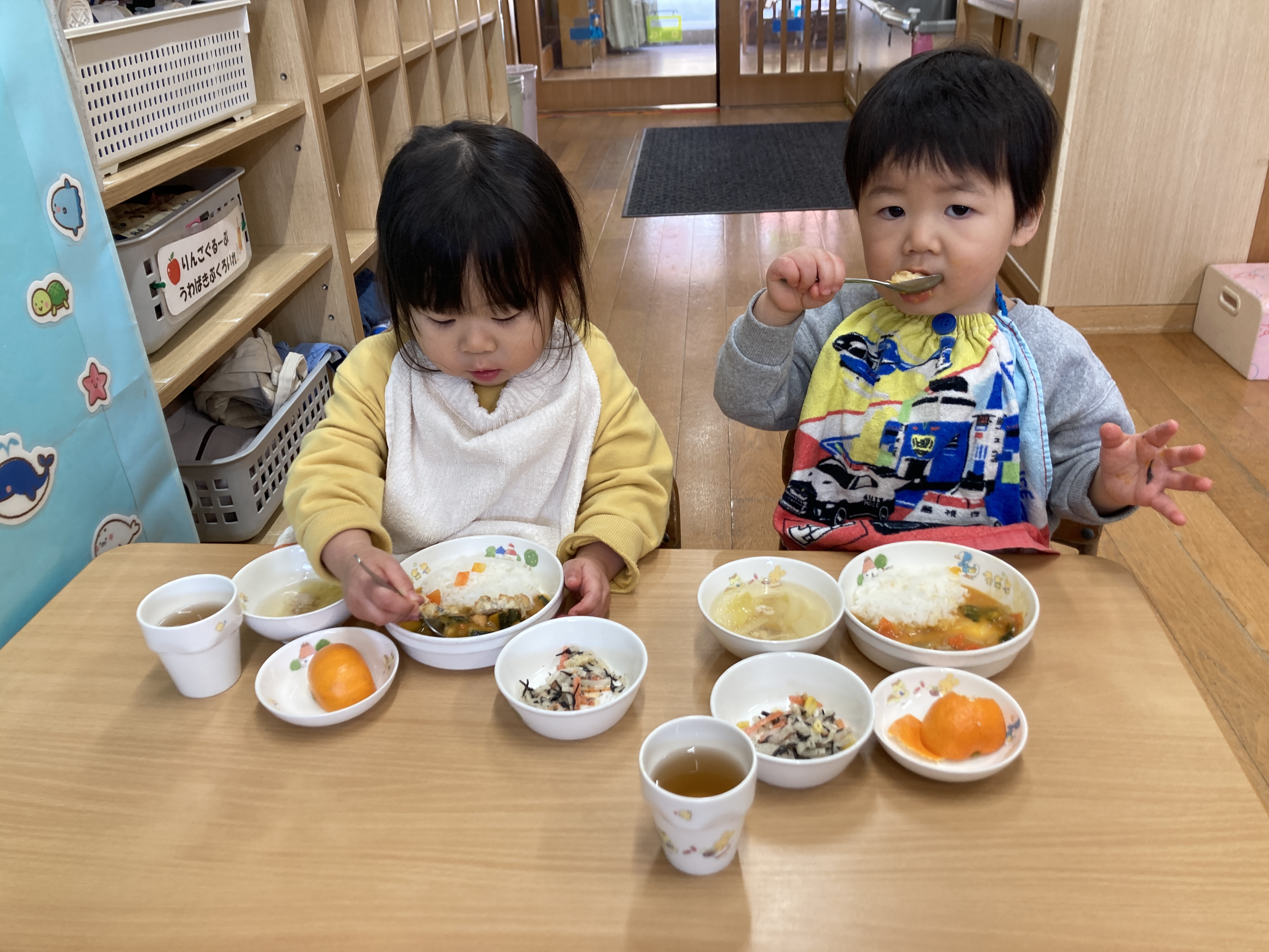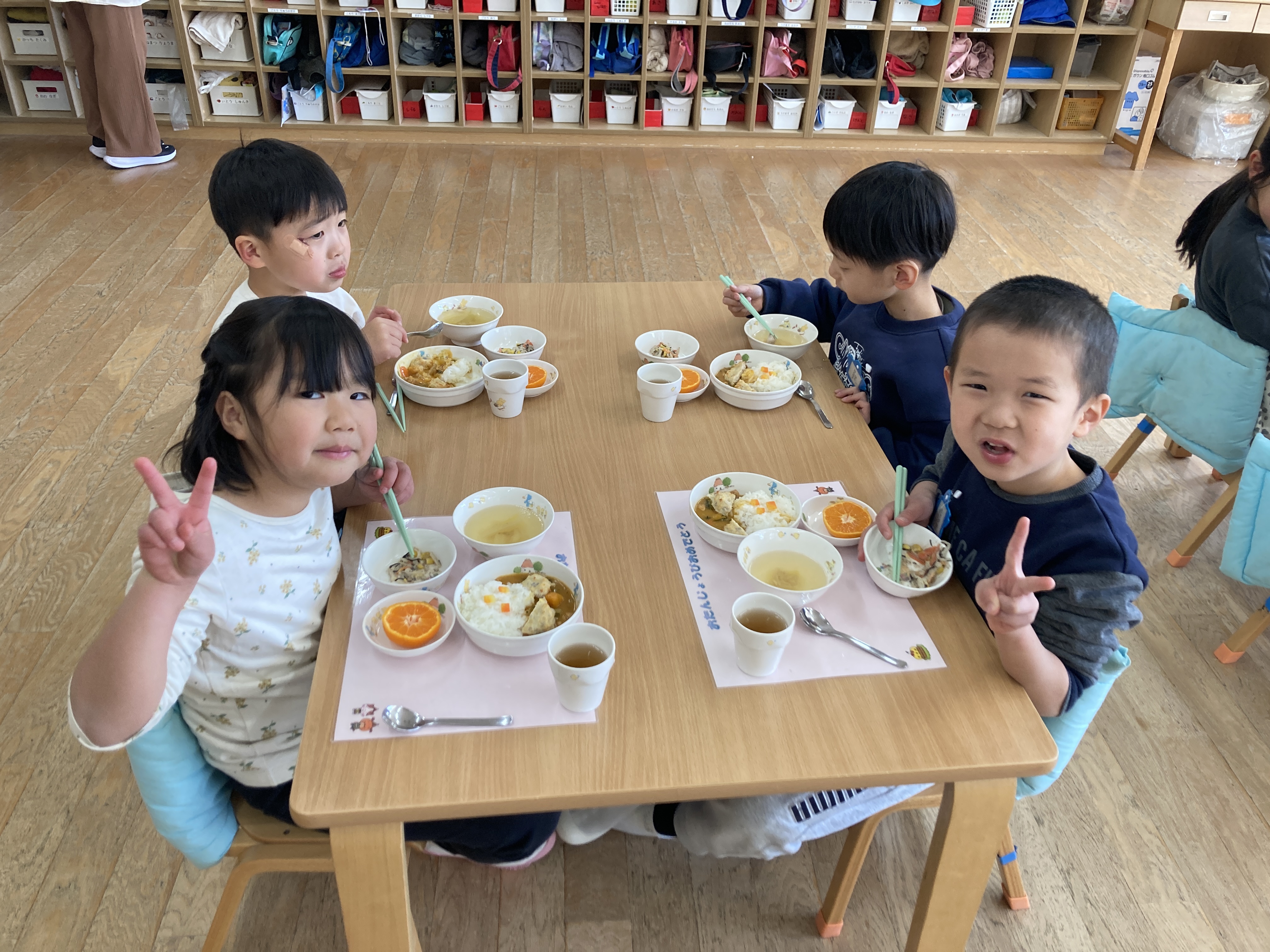 「くまさん、かわいいねー♪」とお話ししながら、おいしいカレーをパクパクと食べていた子どもたちです。