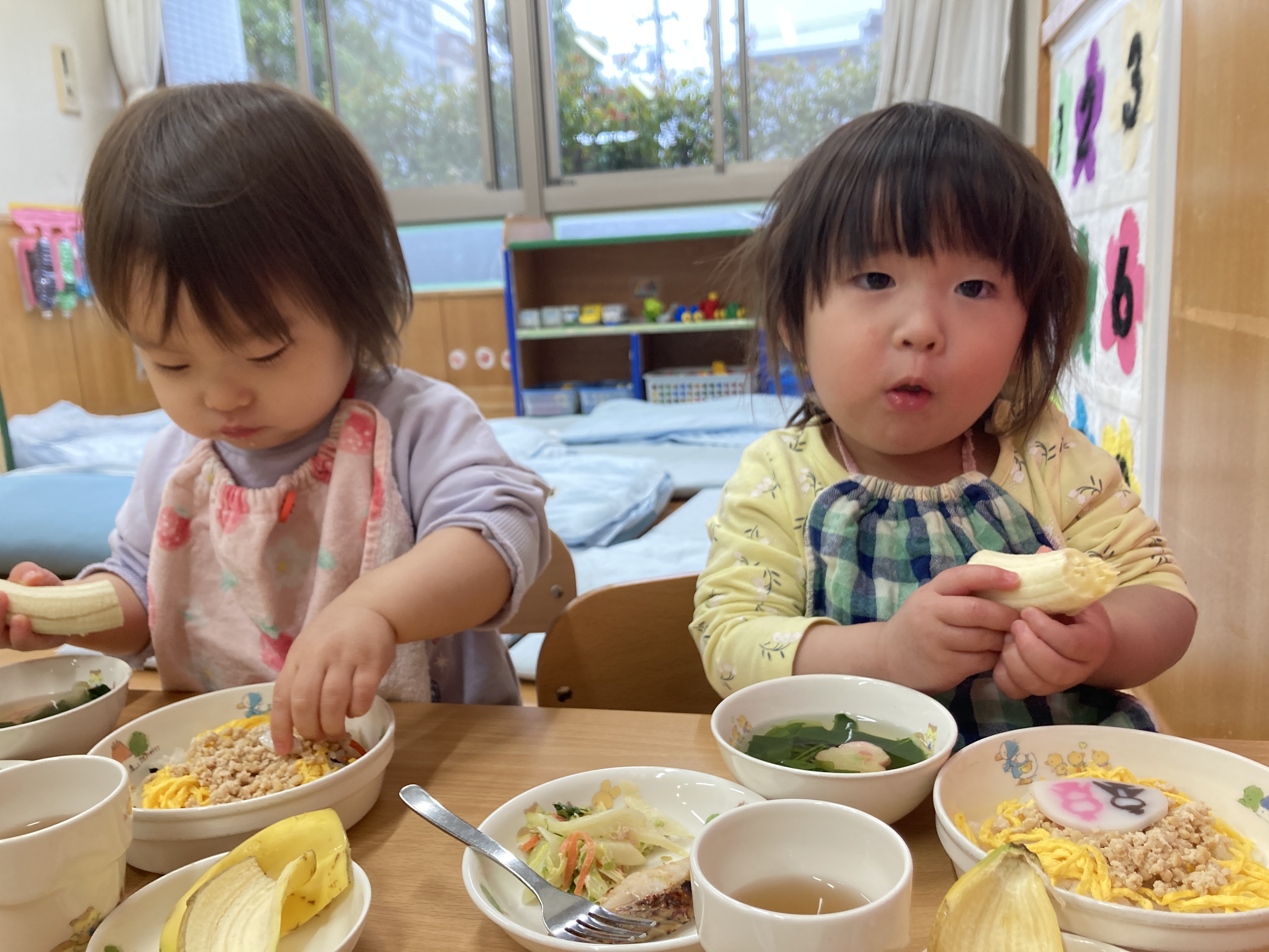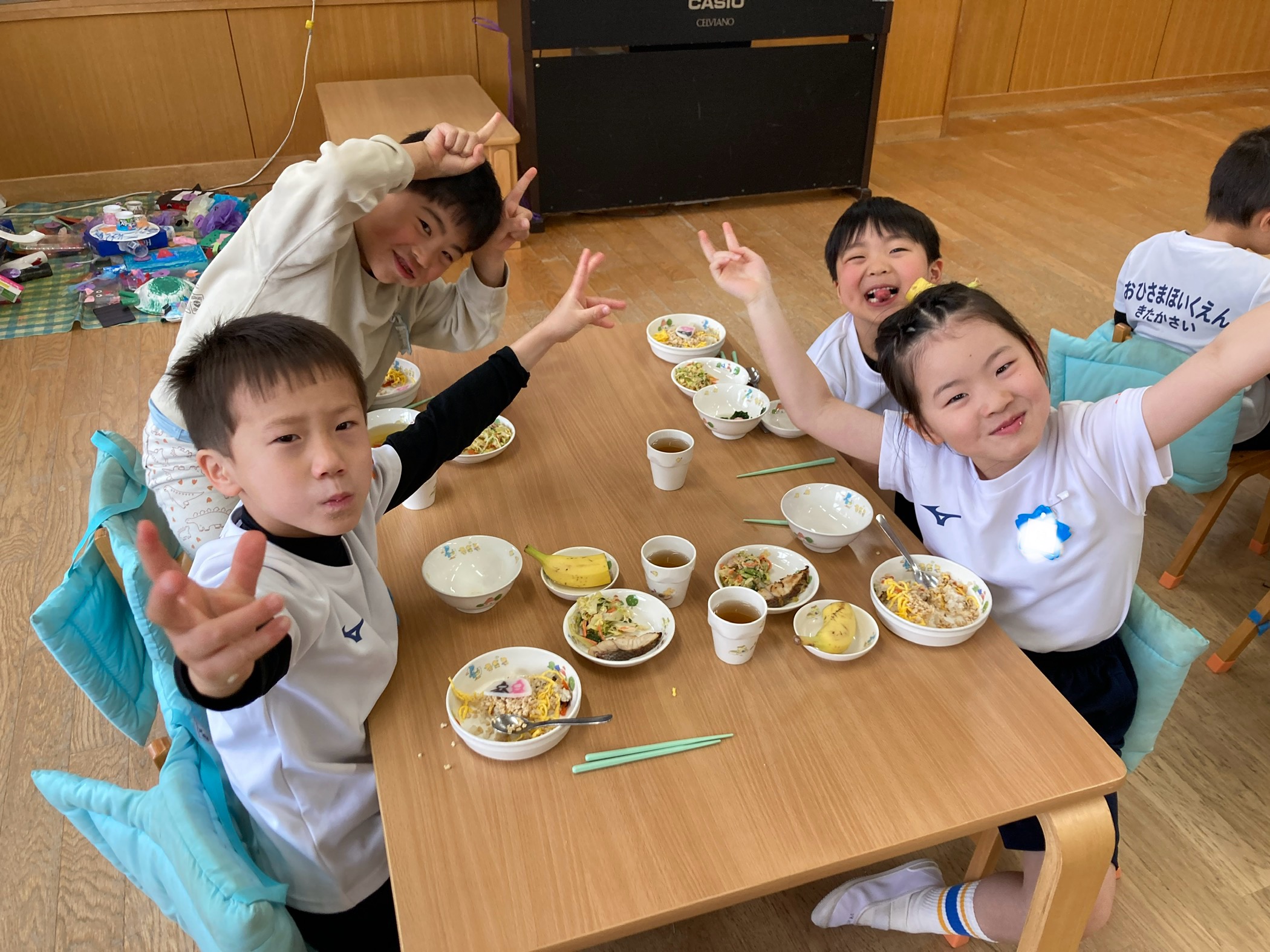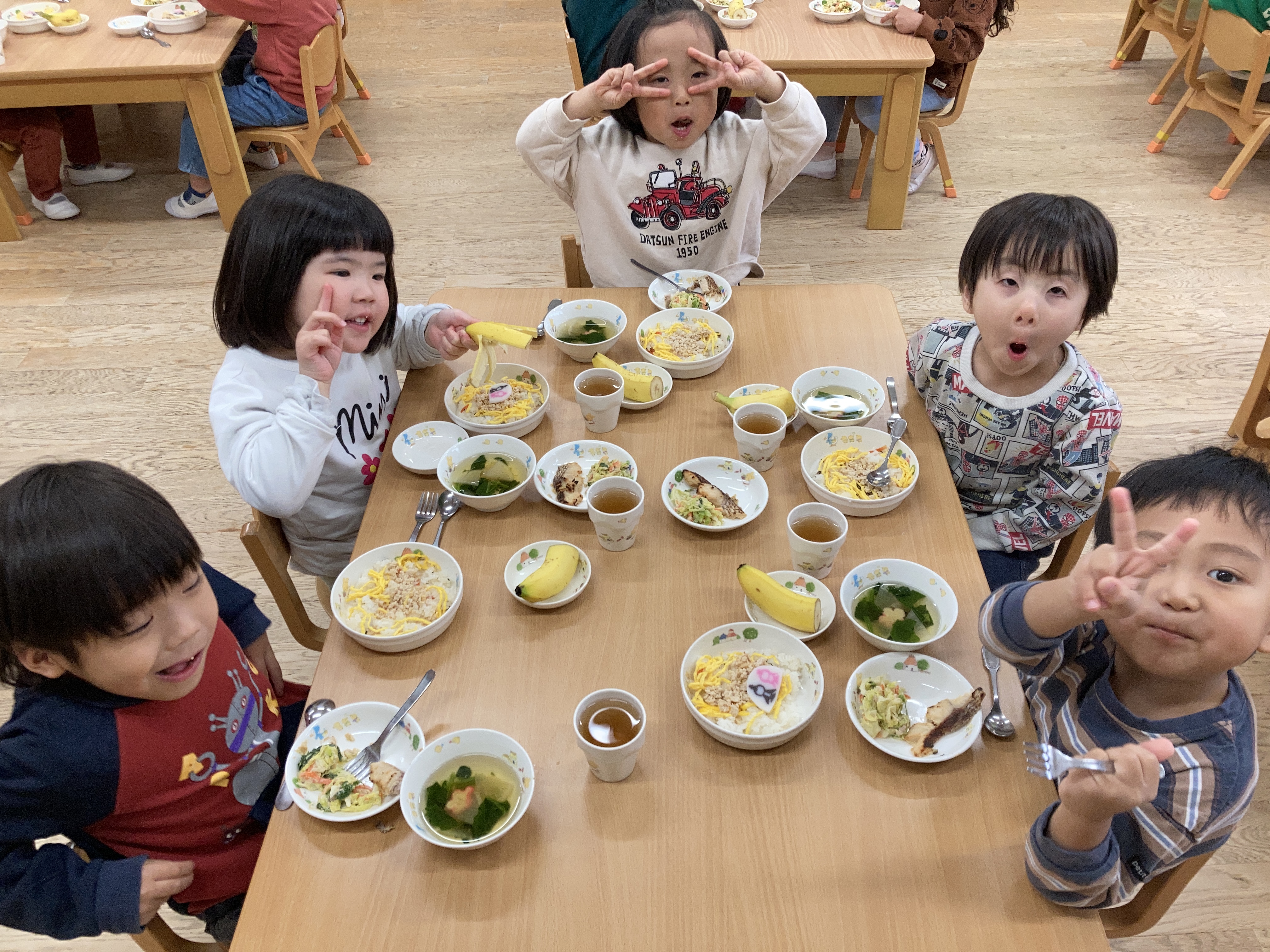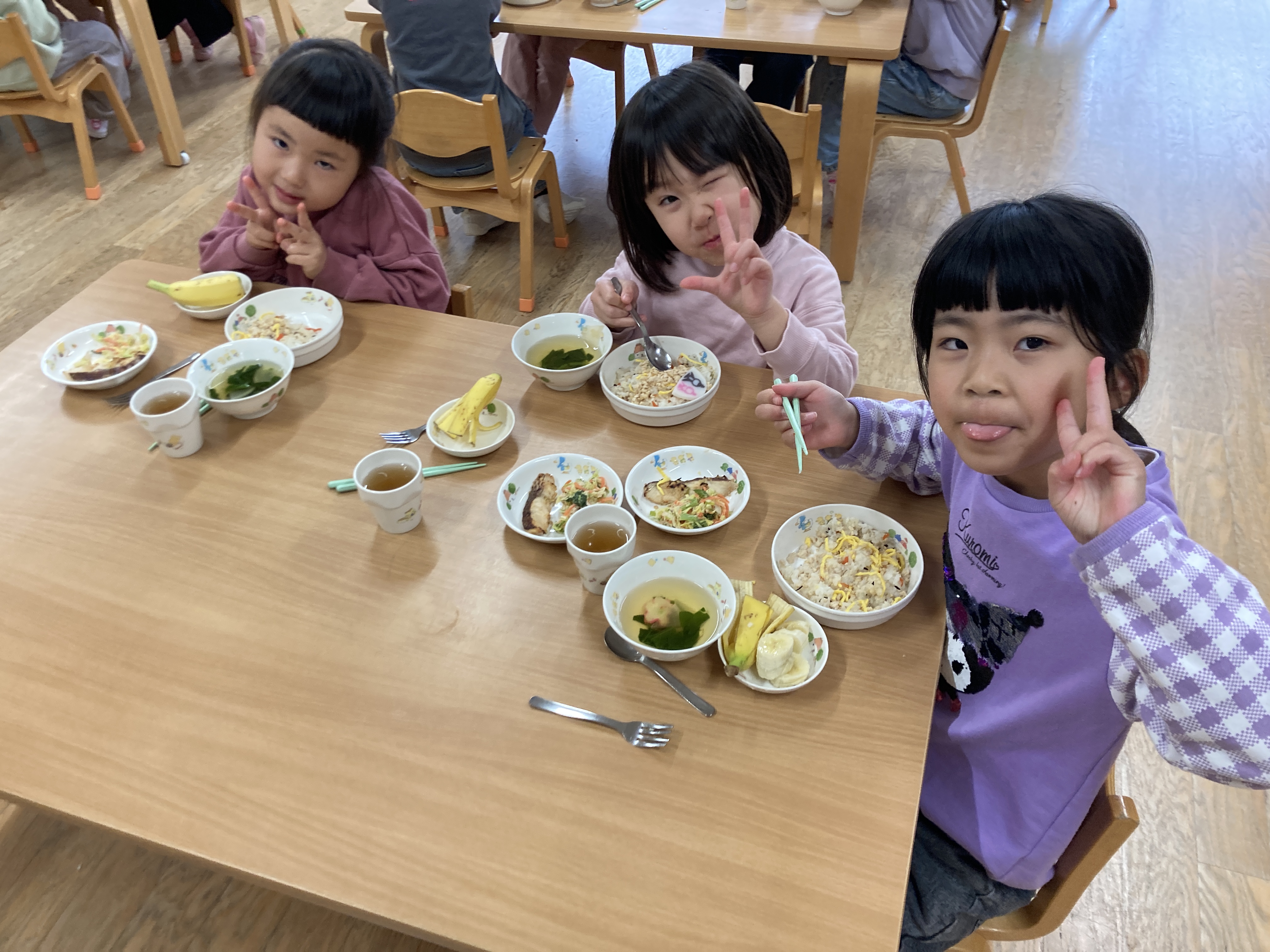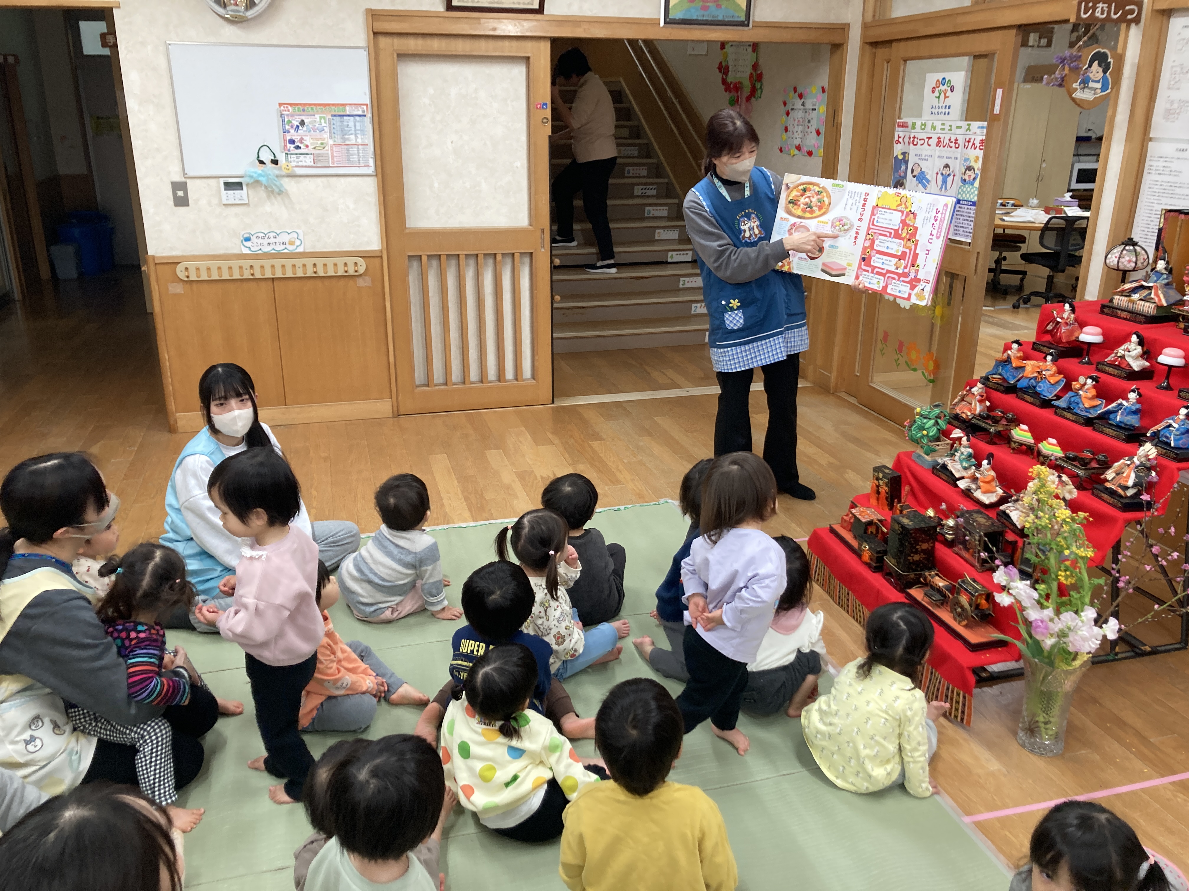 ひな祭りの曲が流れる中、ひな祭りの華やかな雰囲気を味わい、子どもたちの健やかな成長を願うあたたかいひとときとなりました。