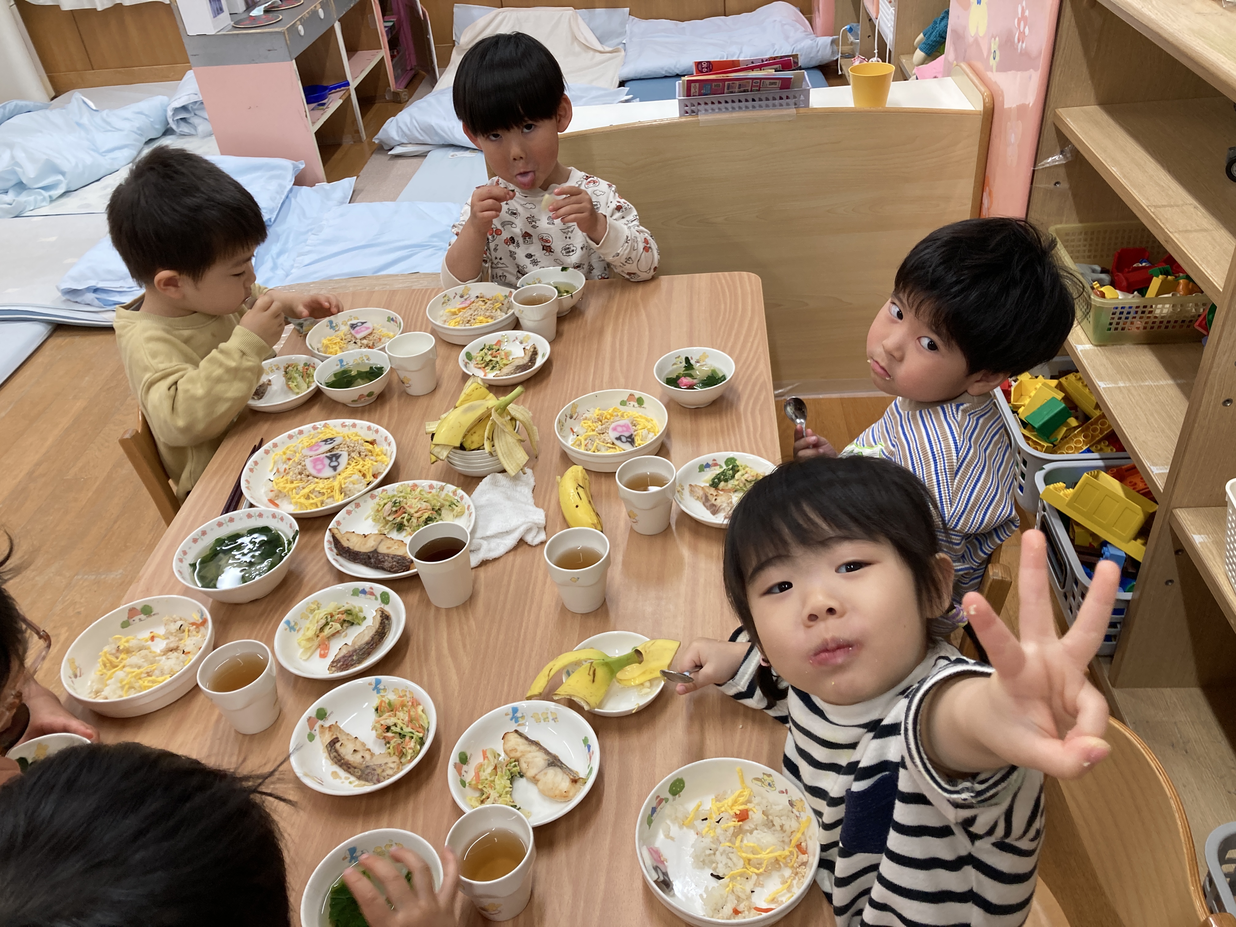おひなさまとおだいりさまのかまぼこを見つけると「かわいい!」と大喜びのこどもたちでした☆