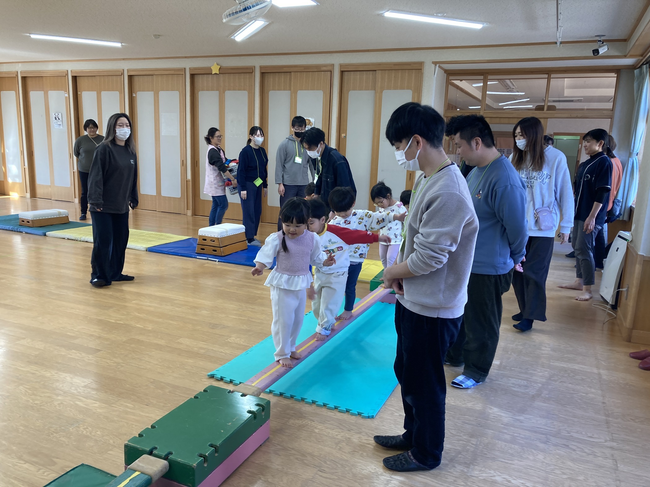 得意気に披露したり、手を繋いで一緒に取り組めて嬉しそうでした。