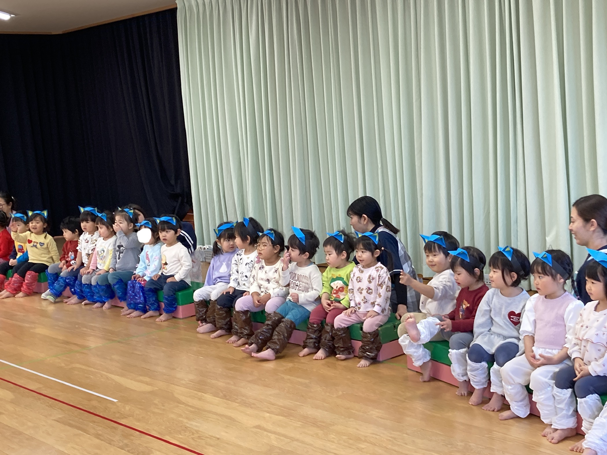こども達はピートになりきって、耳と各色の靴を身にまといホールへ!