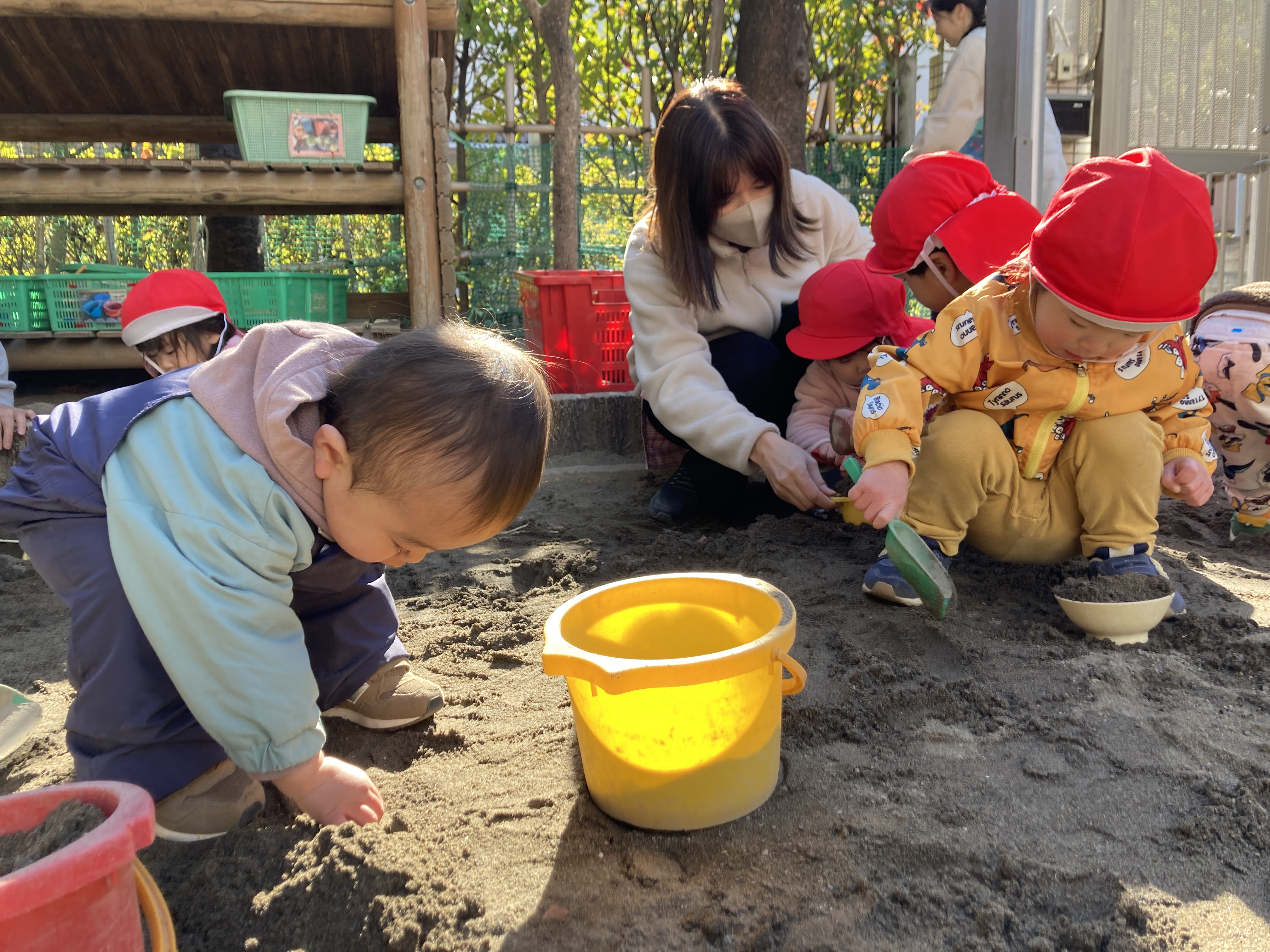 砂場やお部屋でもお互いに関わってみようとする姿があってとても微笑ましかったです。