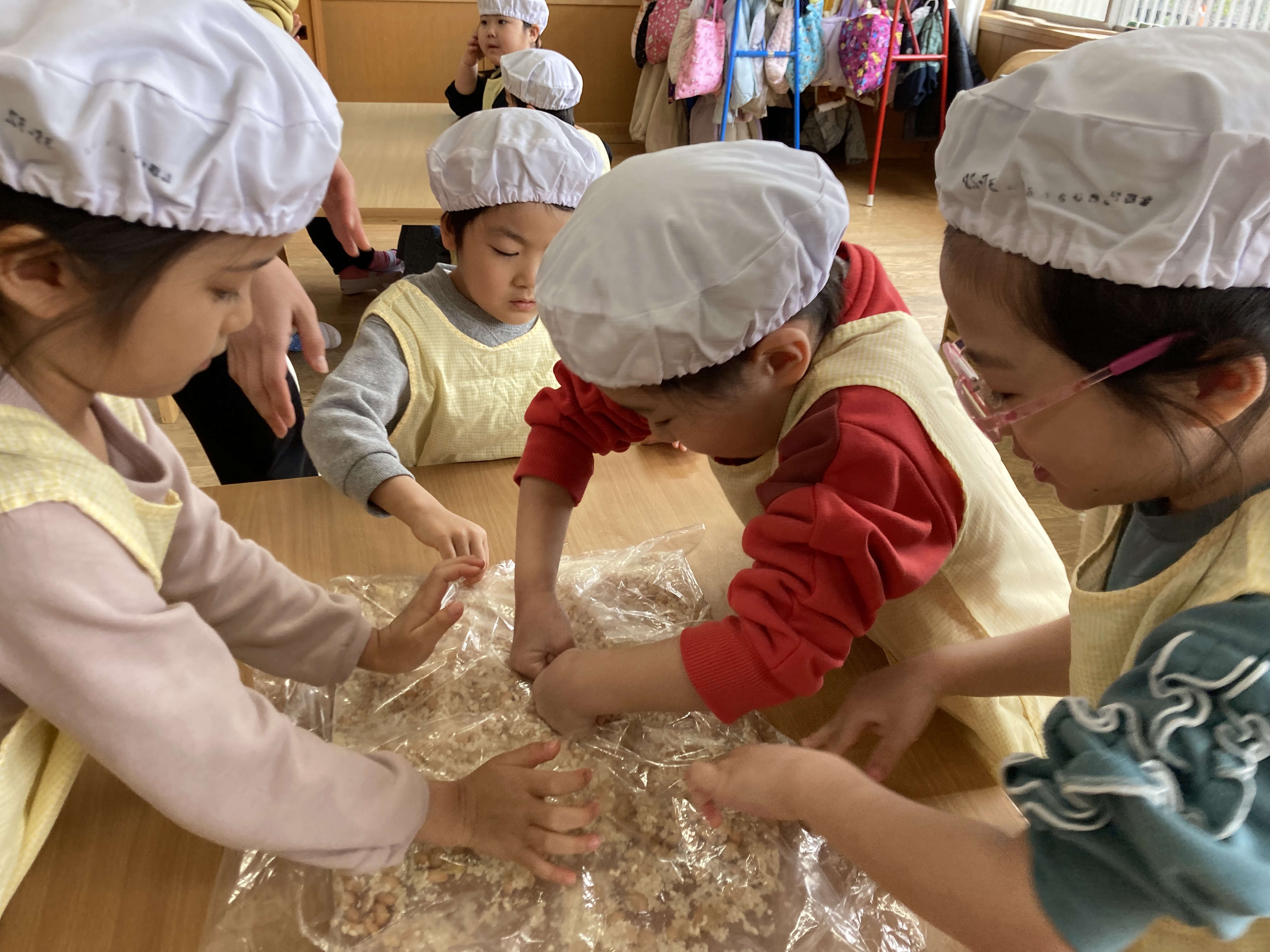 きりん組の味噌づくりの様子を紹介します。