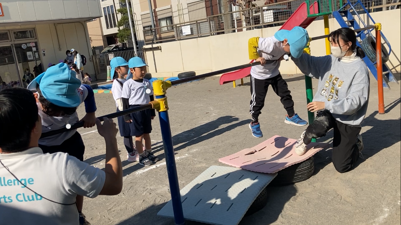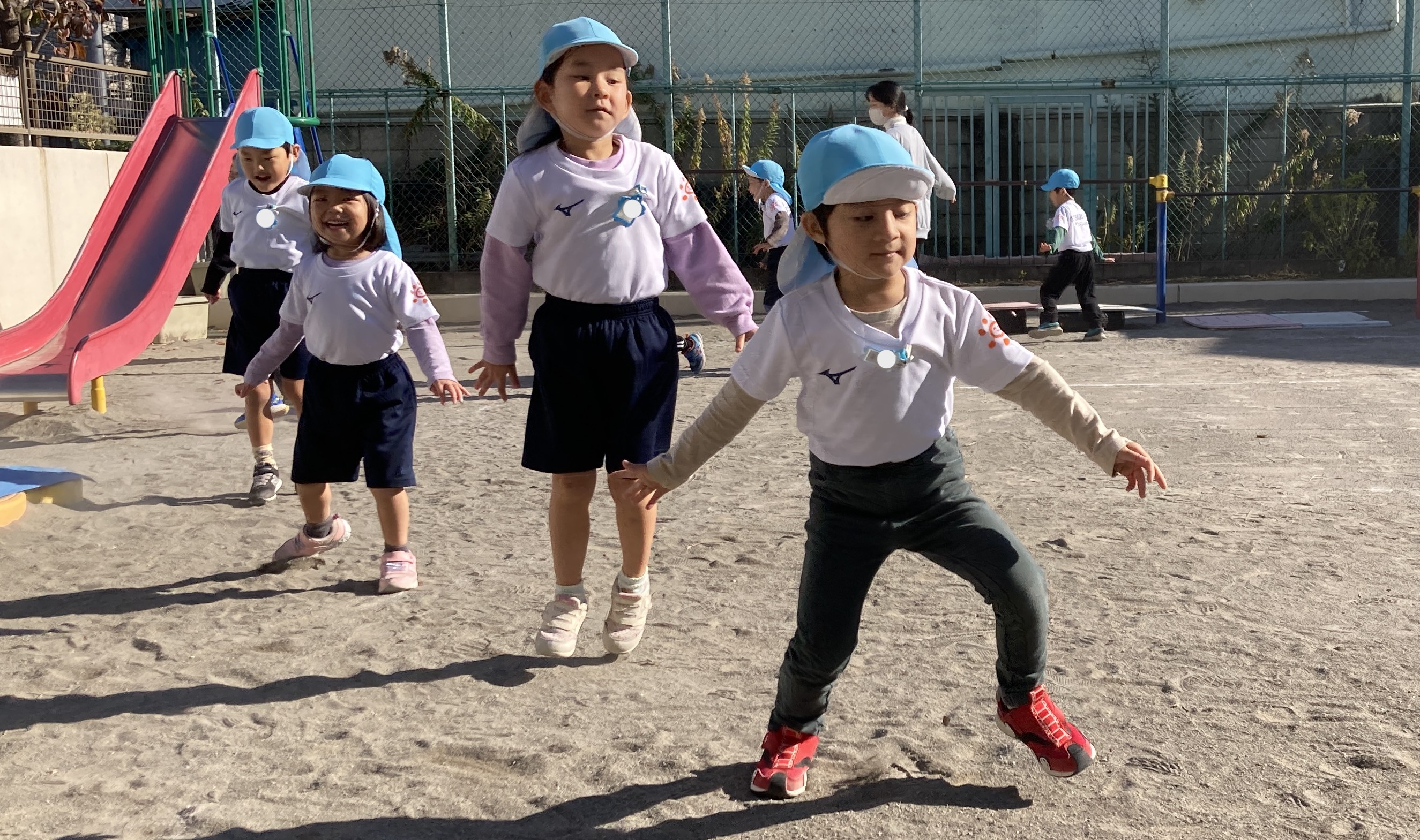 鉄棒の活動では、これまで「ちょっと苦手…」と感じていた子が多かったのですが、まずは”ぶらさがってみる””足を鉄棒にチョンとタッチしてみる”といった簡単なところからスタート。少しずつ「できた!」が増えていき、鉄棒への苦手意識も和らいできたように感じます。繰り返し挑戦していく中で、前回りや足抜き回りができるようになった子も!成功した瞬間の笑顔はとてもまぶしく、成長を感じられる素敵なひと時でした。次はどんな「できた!」が待っているのか、とても楽しみです。来年の体育あそびも、子どもたちが楽しく、自信を持って取り組める時間にしていきたいと思います。