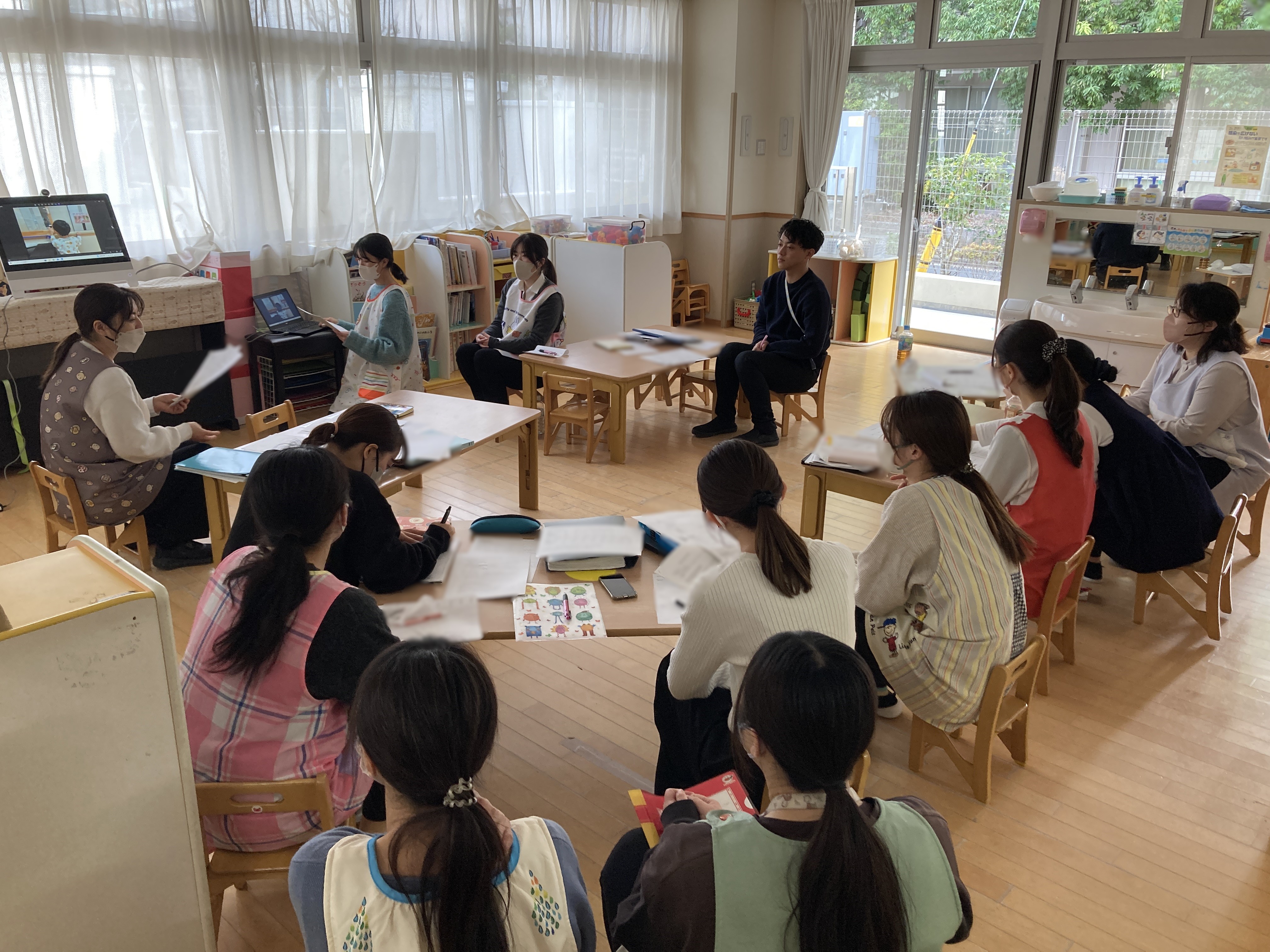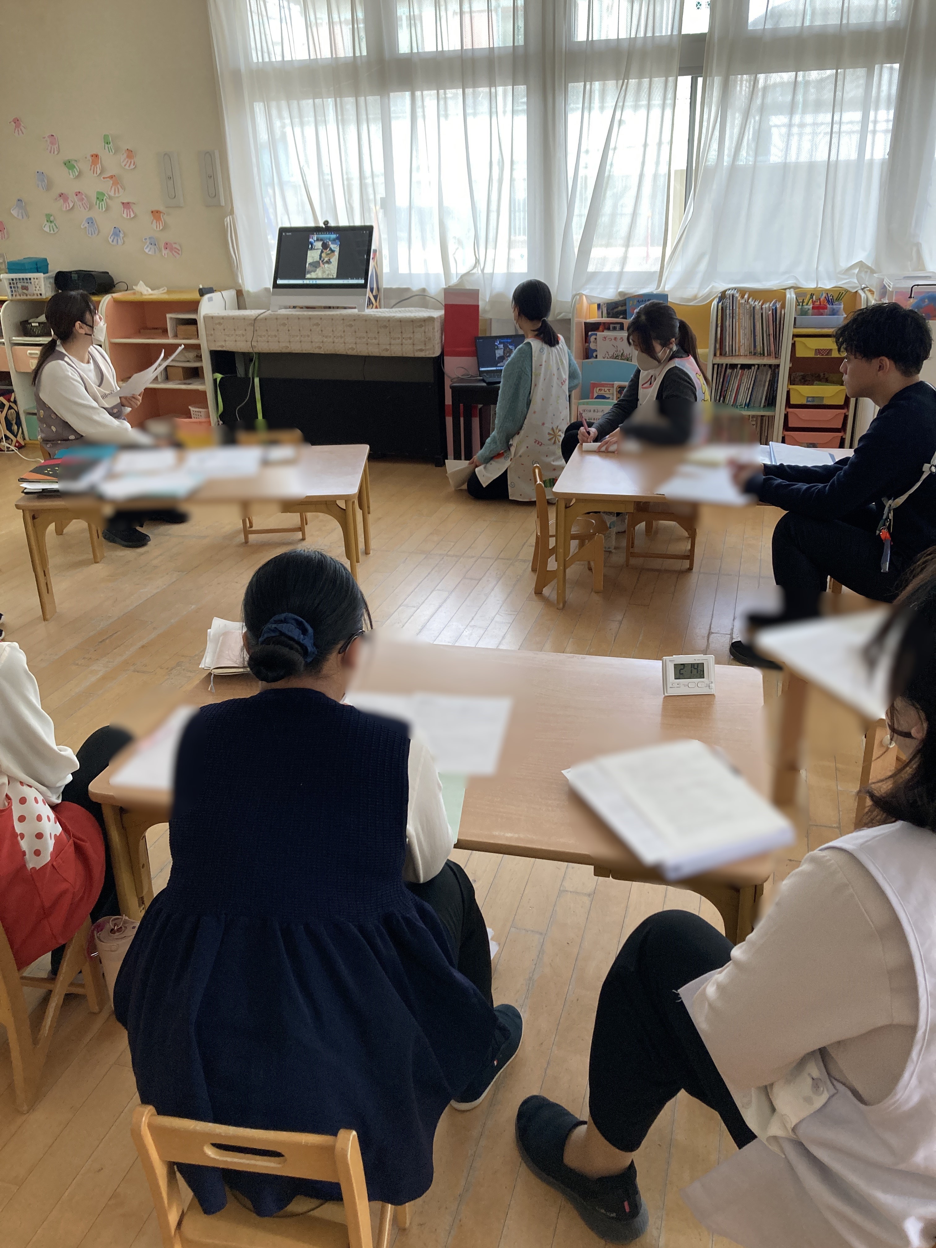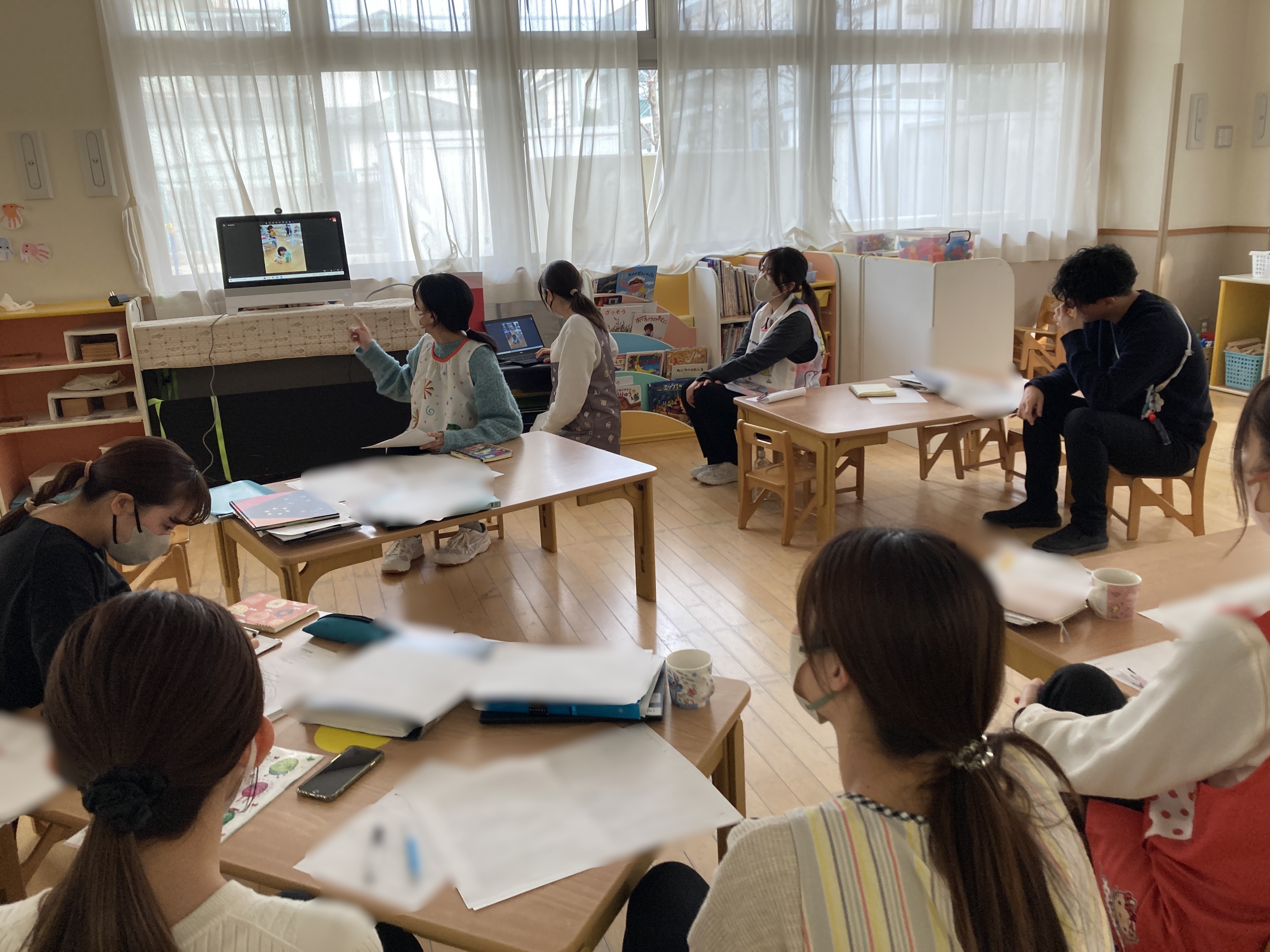 すくわくプログラムで取り組んできたことについて、保育士間で報告会を行いました。