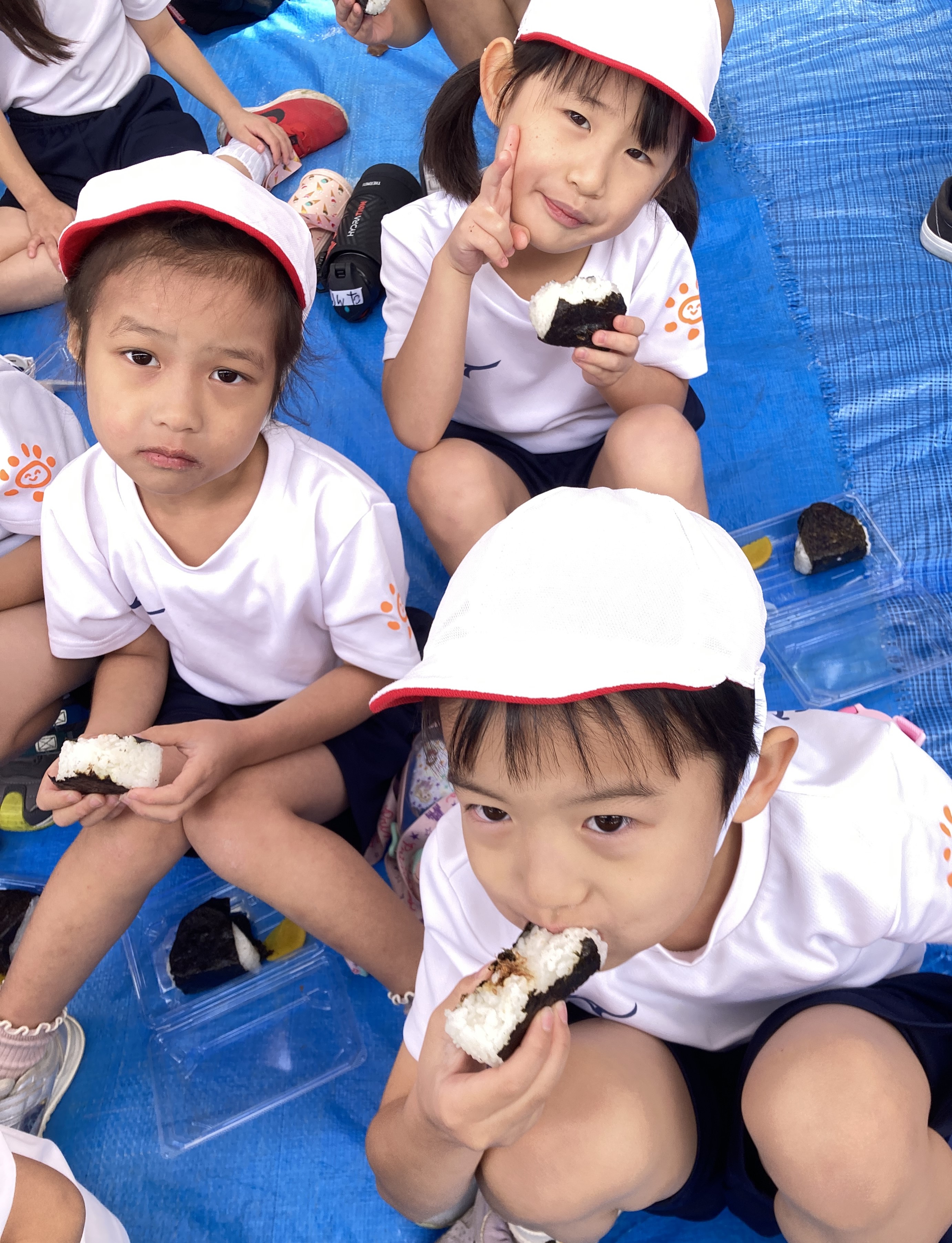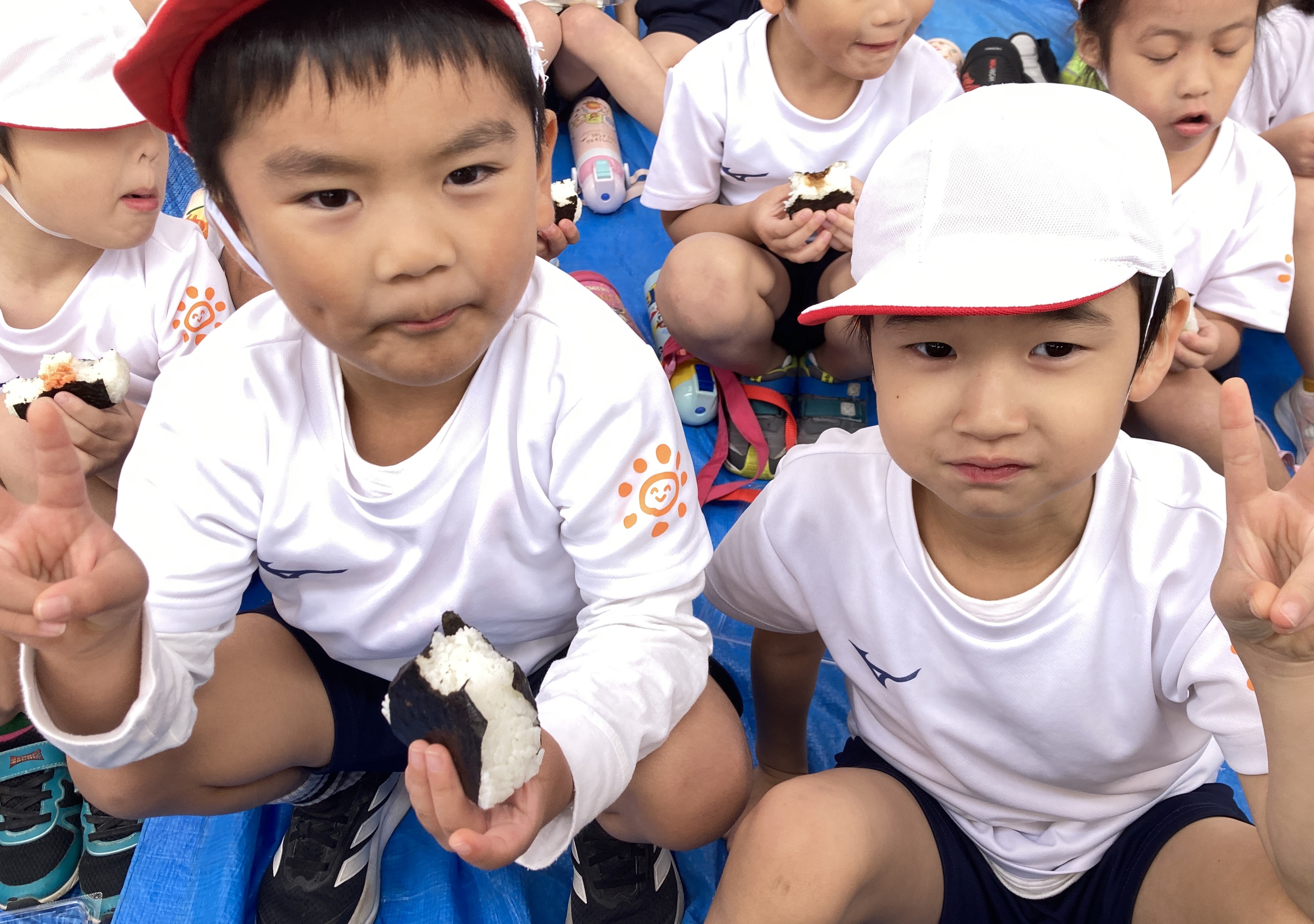 おにぎりを食べながら「何が入ってるかな」「おかかだった!」と楽しく食事が出来ました。