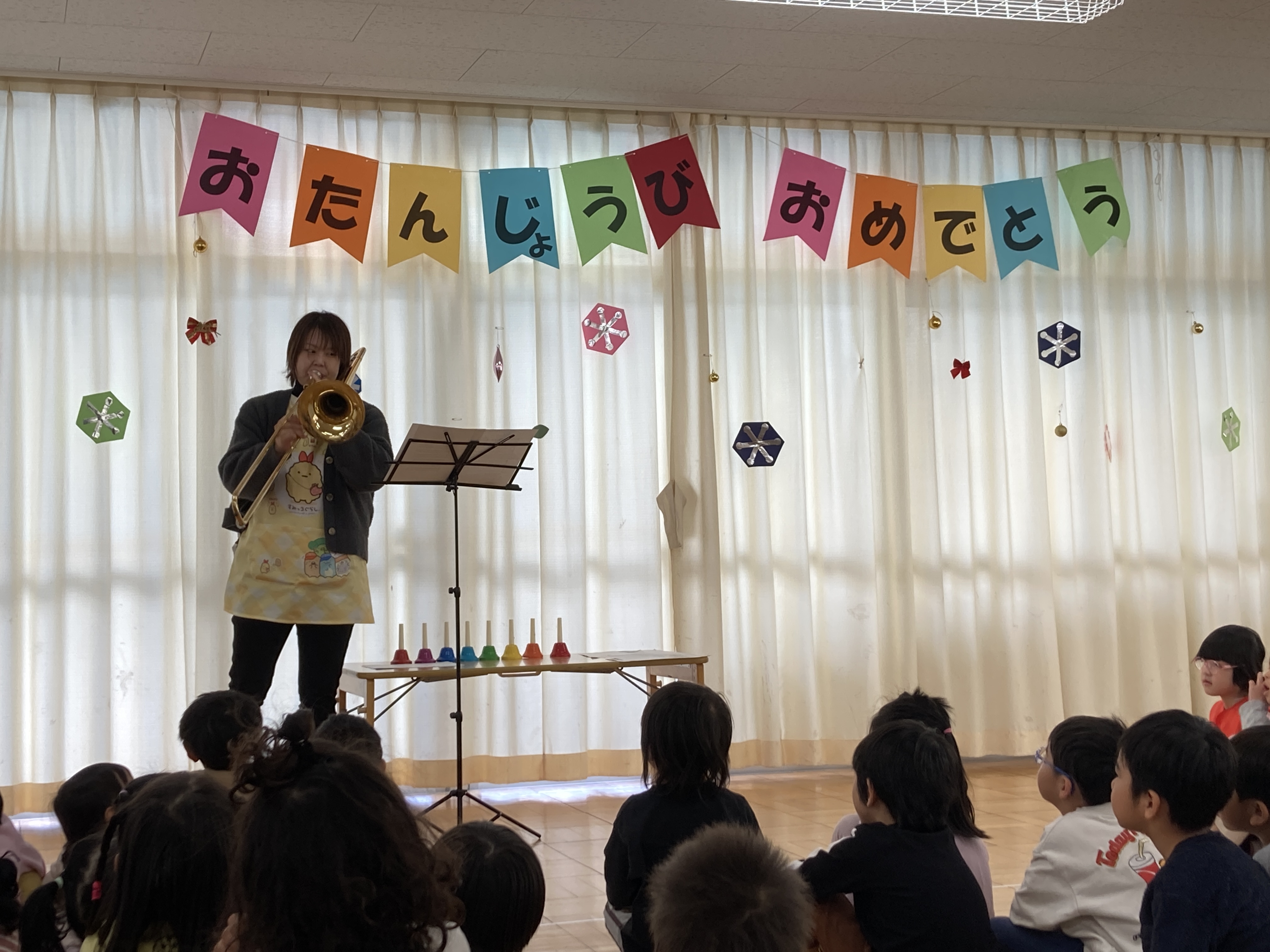 曲目は『ジングルベル』『きらきらぼし』『どんぐりころころ』『ハッピーバースデー』『ミッキーマウスマーチ』と盛りだくさんでした。