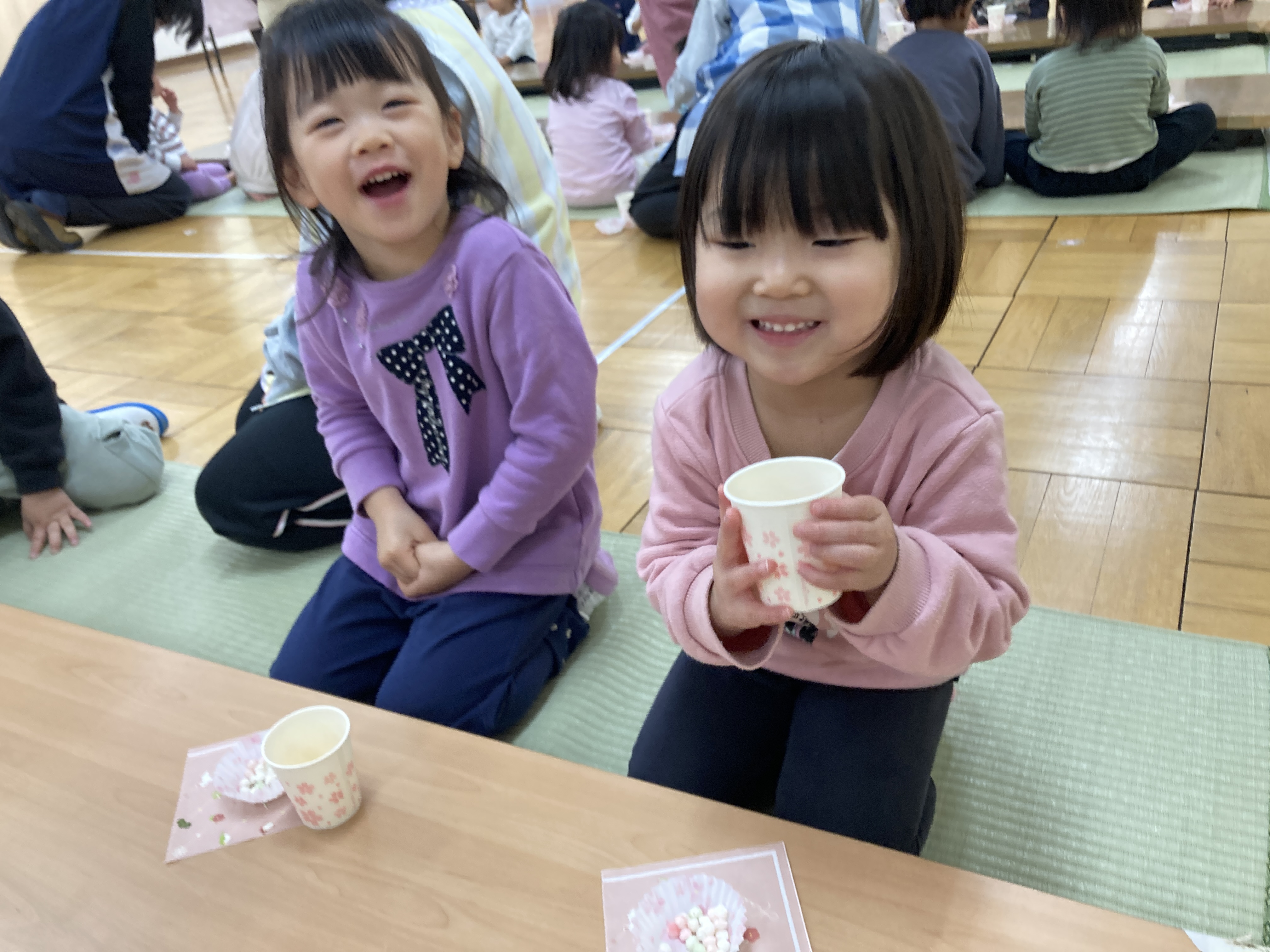 1.2.3.4歳はひなあられとリンゴジュースを頂きました。